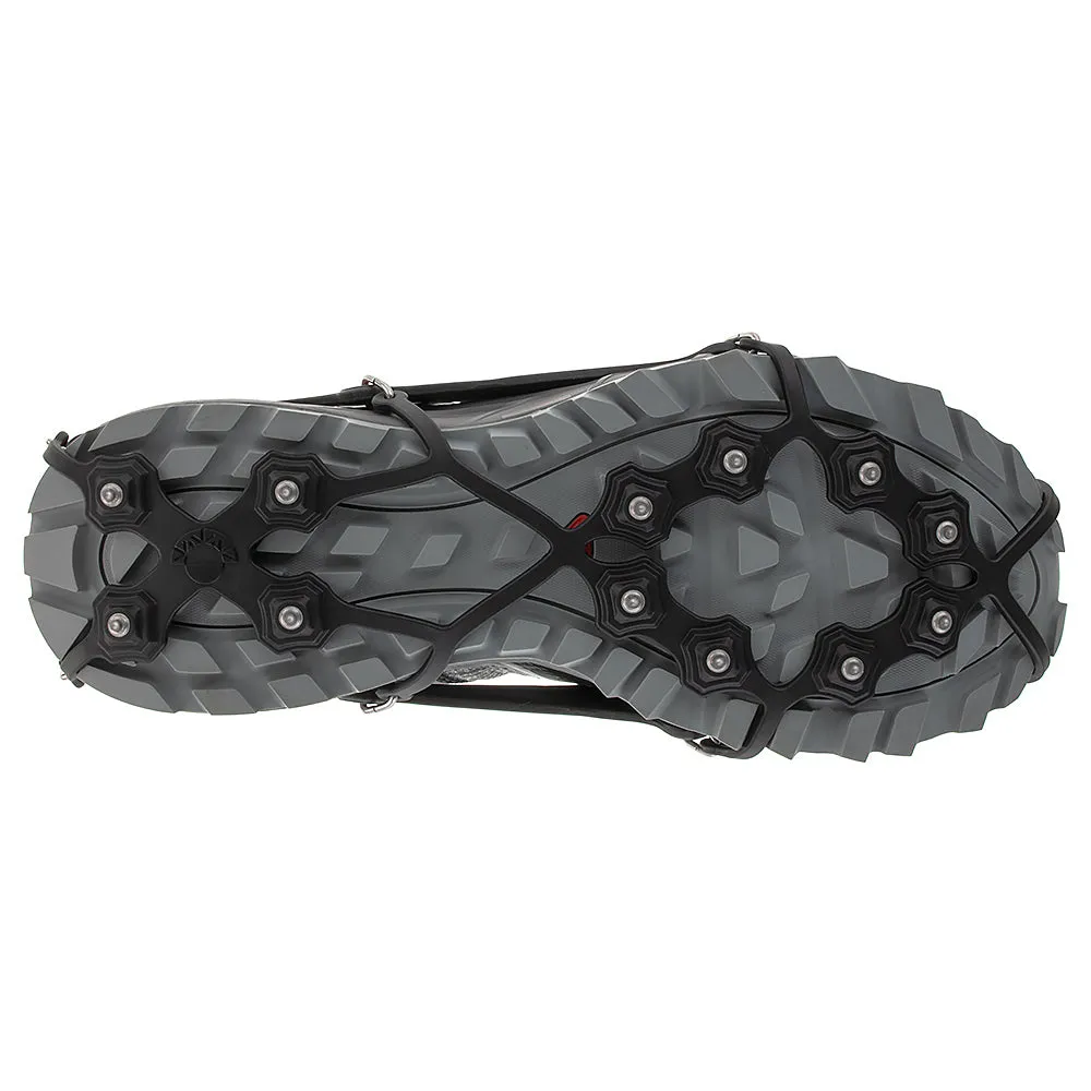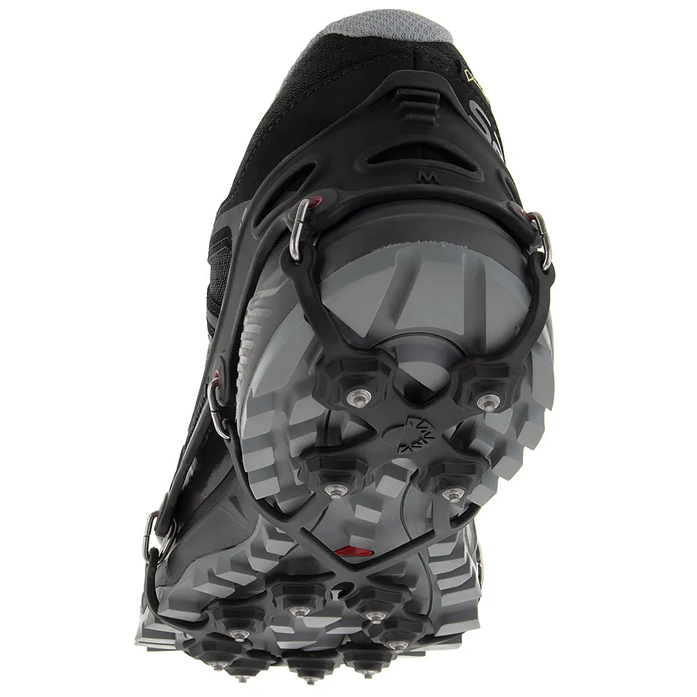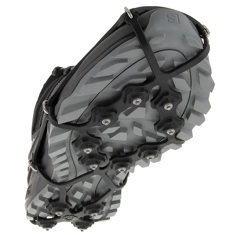 An industry-first TPU Traction Matrix is extremely durable and more abrasion resistant than steel. The open design quickly sheds snow and adapts to a wide range of flexible footwear.