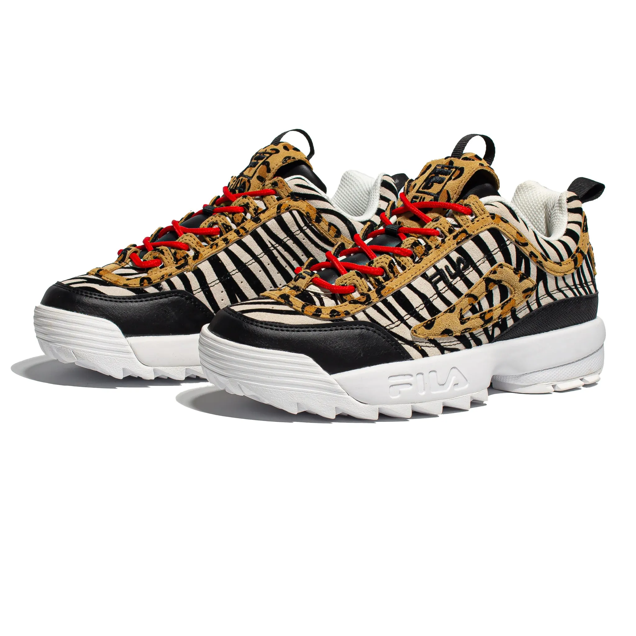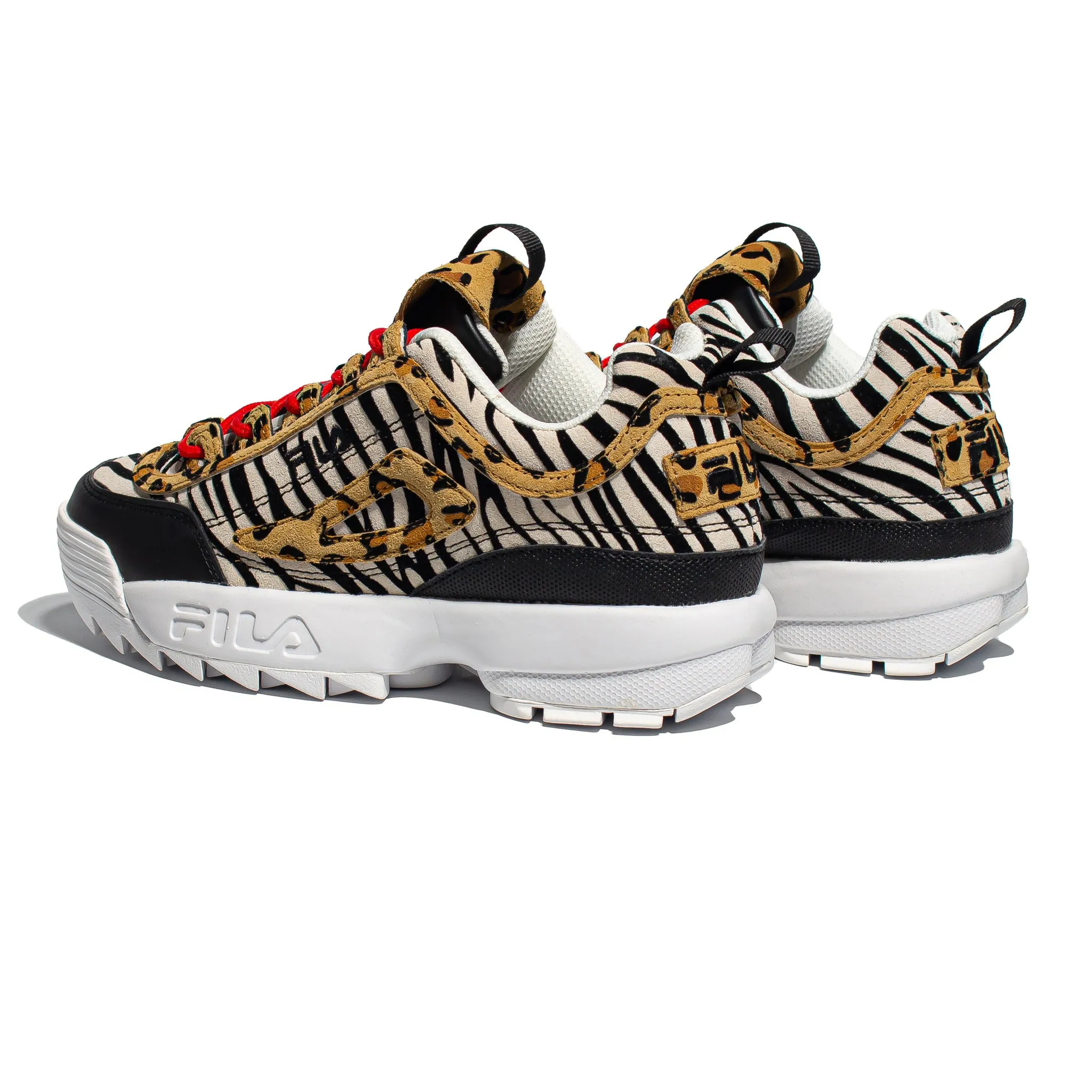 The latest in technology can be found on this 90s revival. The upper mixes zebra and leopard prints in a mix of leather and synthetic. Red laces add yet more dimension and interest.