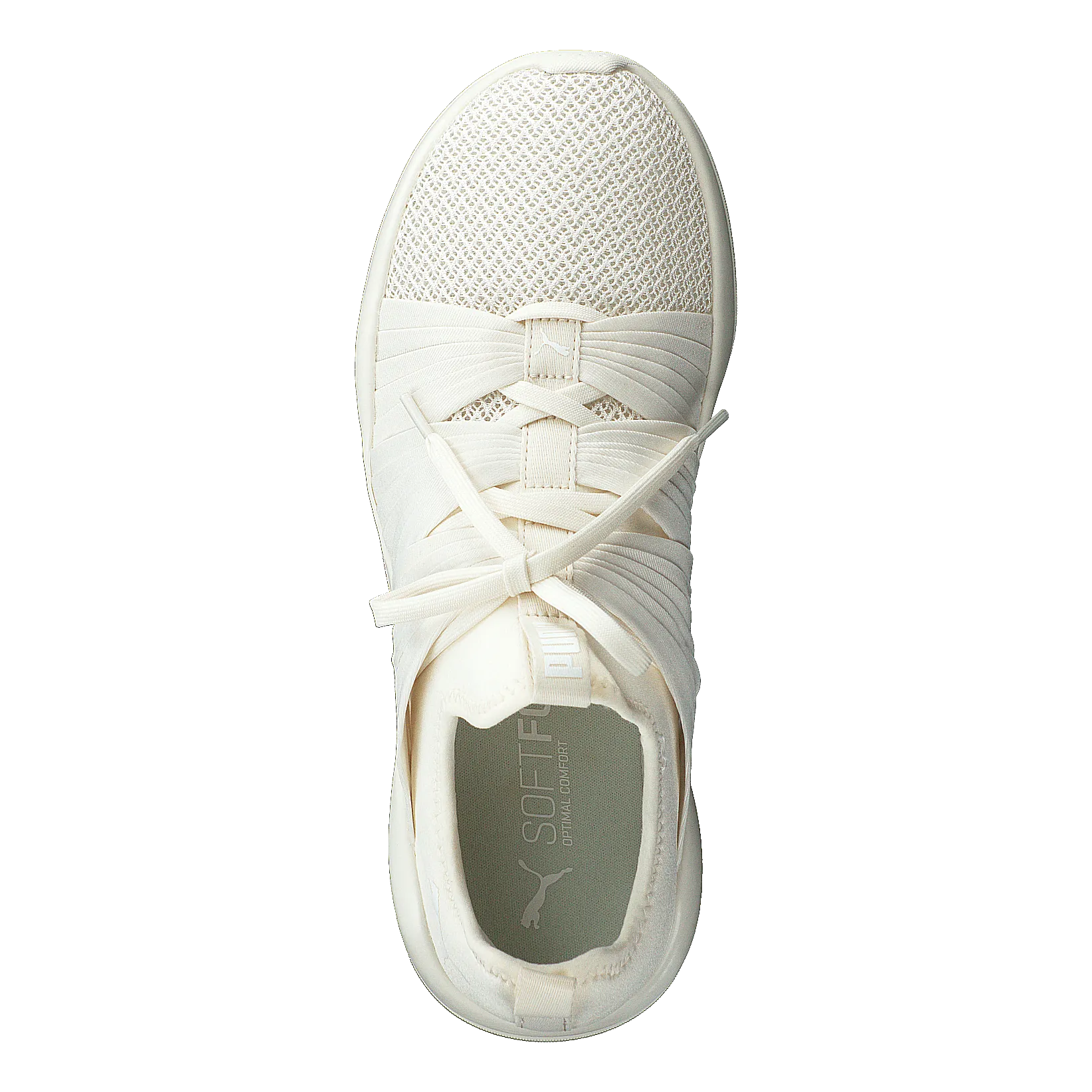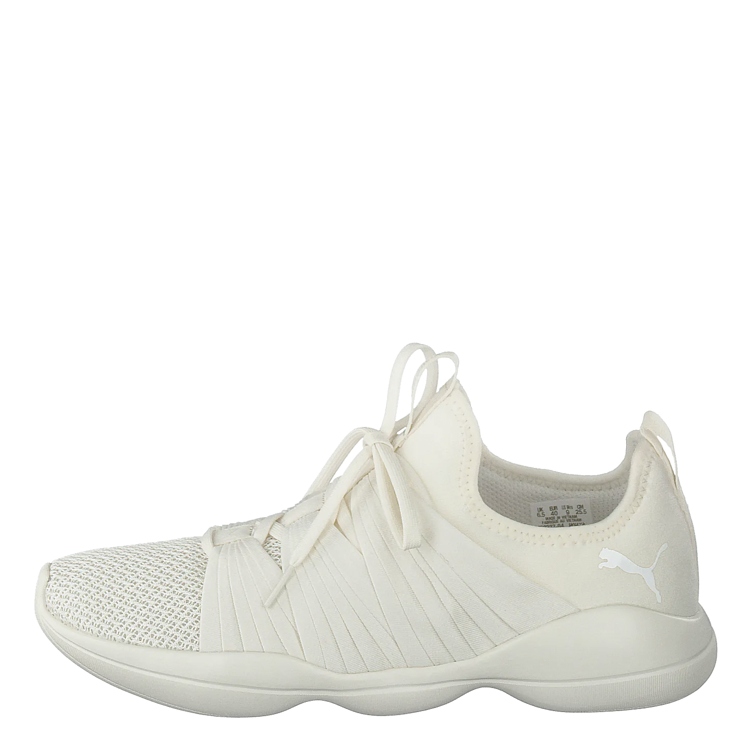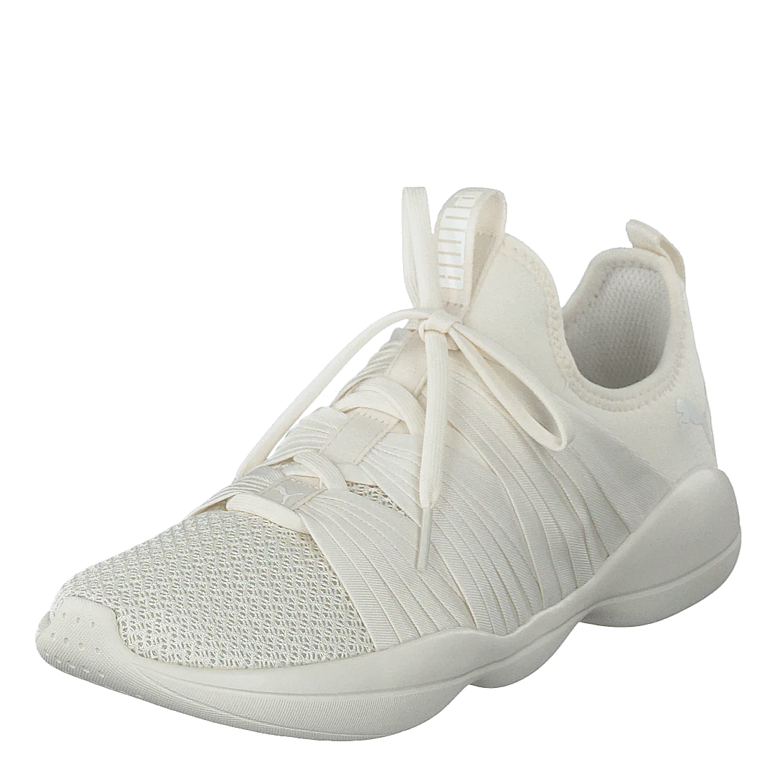 The newest in the Puma Women's Flourish sneaker collection, this shoe has a mesh upper and textured design. It is a White model that is completely made of mesh and textile. There are no other colors to choose from at this time.