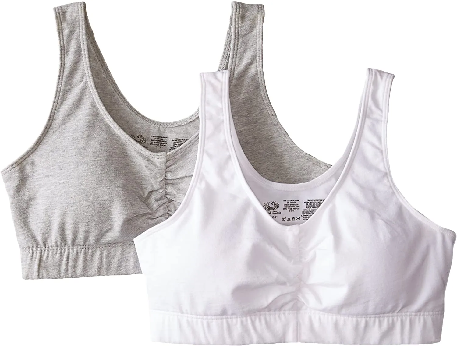 Fruit of the Loom Women's Shirred Front Sport Bra With Removable Pads, 2-Pack