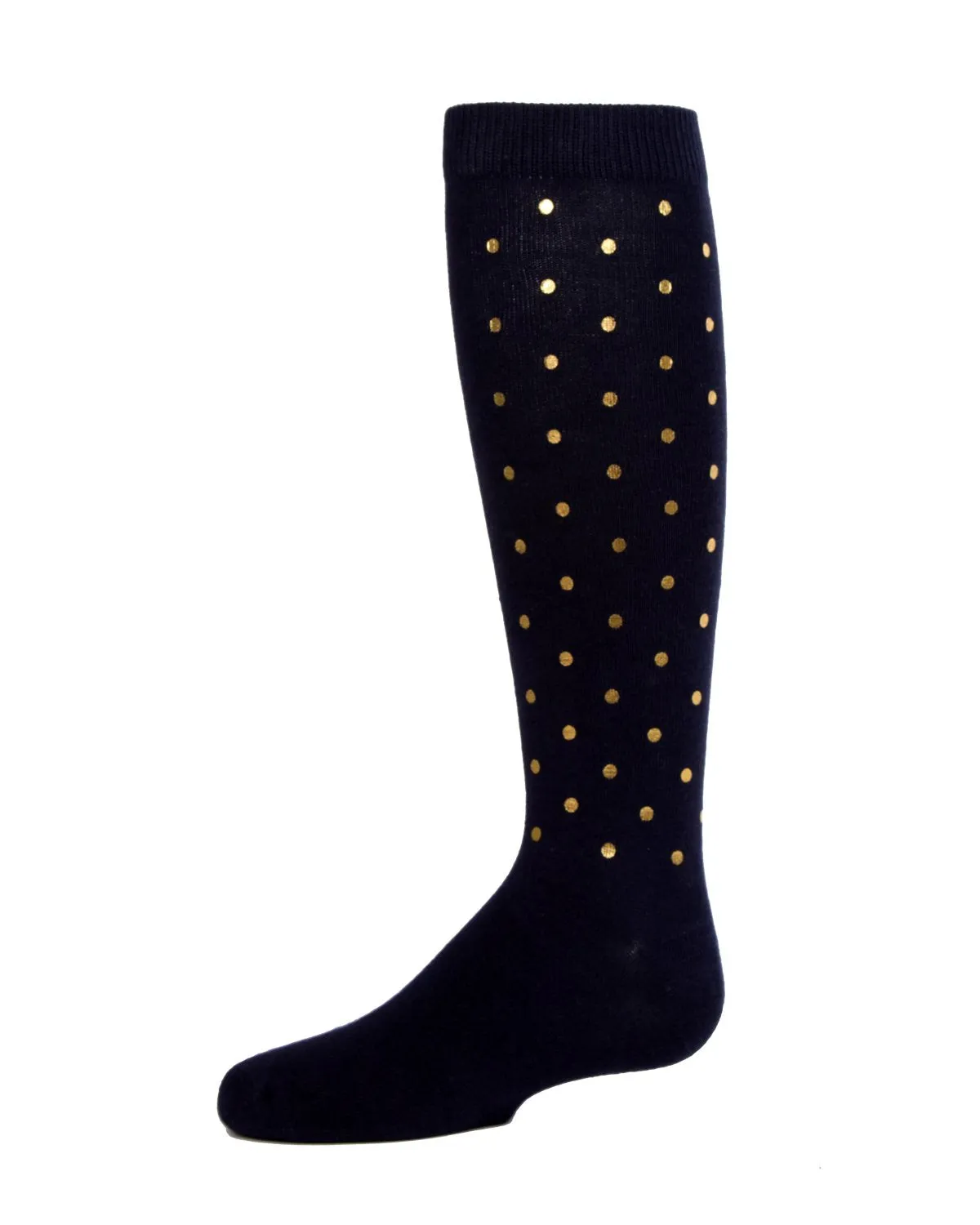 On point dot pattern jazzes up dresses, skirts and pants. Dozens of gold dots make their way from cuff to ankle on A Speck of Spots Girls Knee Socks, adding a layer of interest to a simple knee sock. Cotton-blend fabric brings breathable comfort to little feet, supporting all-day wear without a fuss.