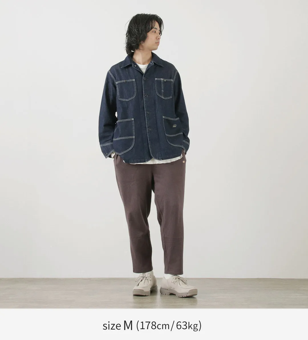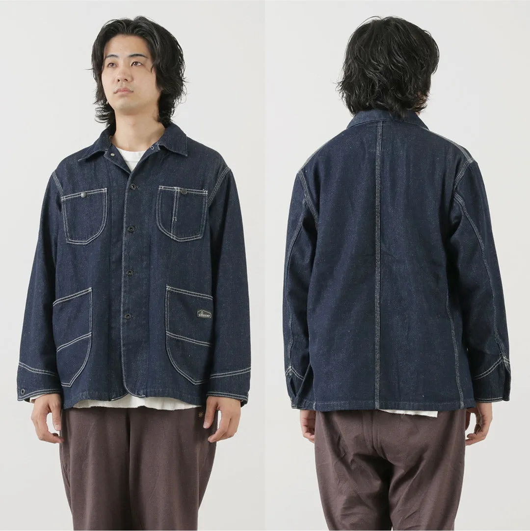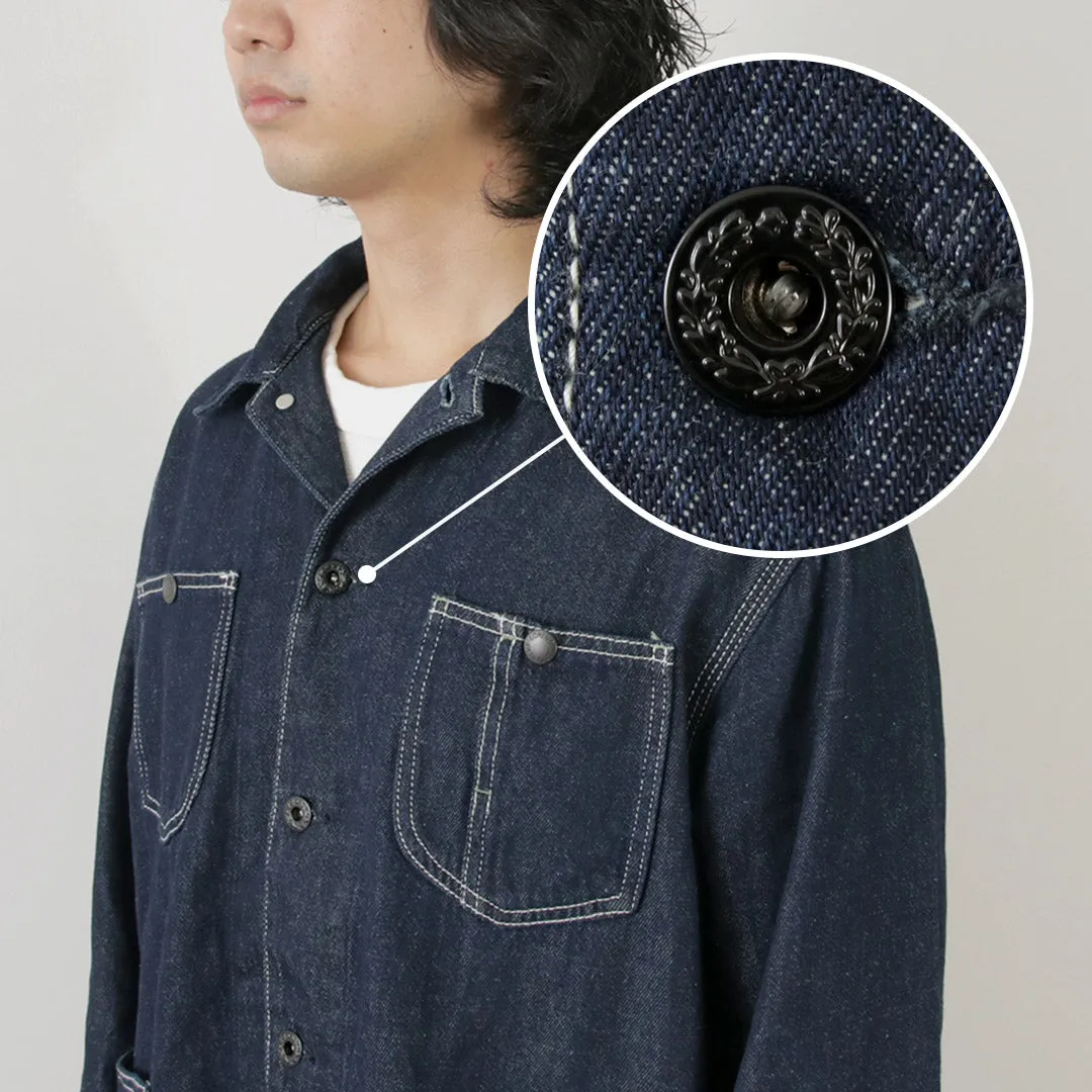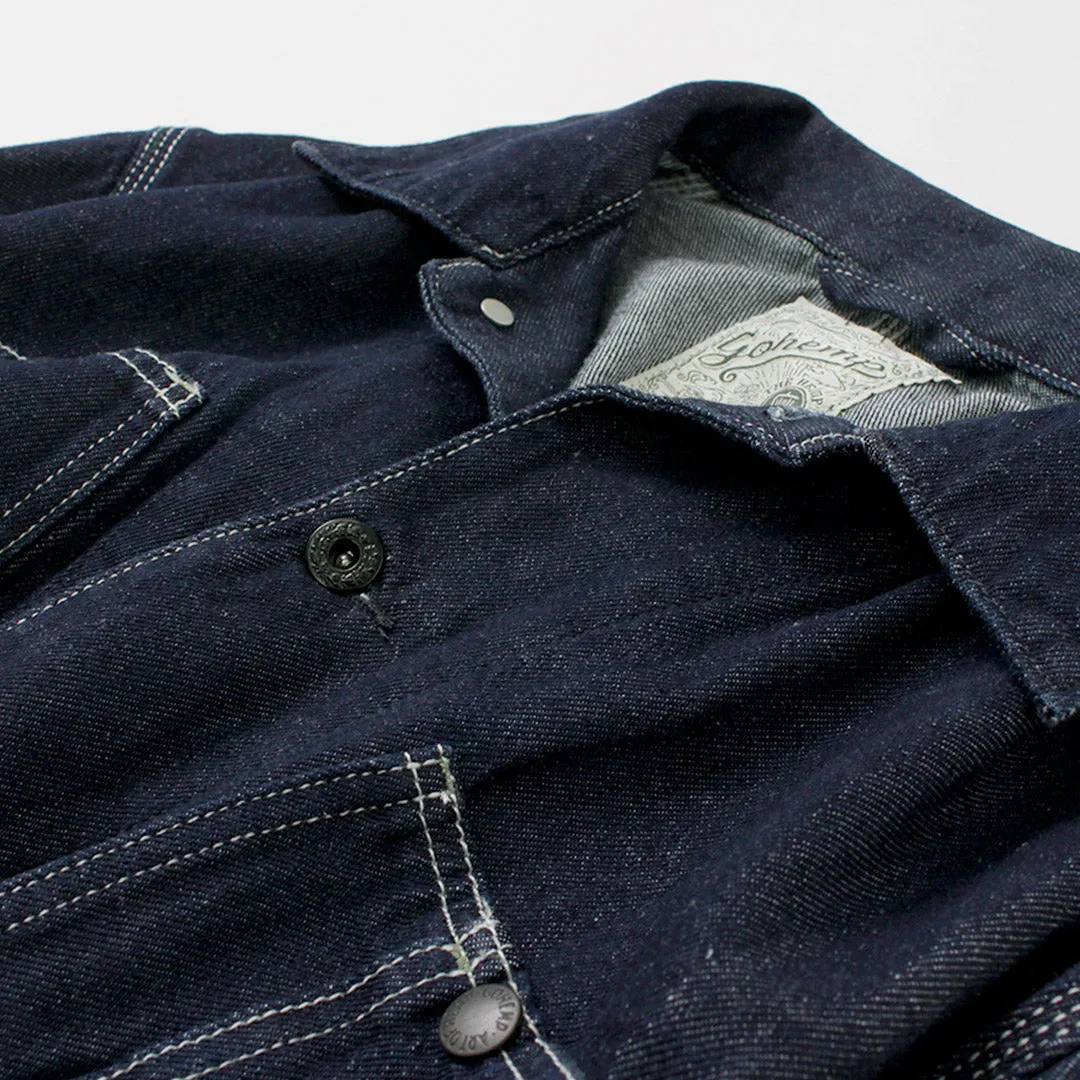 This coverall jacket is made from GOHEMP's classic hemp cotton denim. While maintaining the vintage details and traditional sewing that GOHEMP is known for, the jacket is finished with a trendy tailored pattern and a loose, roomy silhouette. The one-wash denim gives it a soft, comfortable fit and a bright blue look.