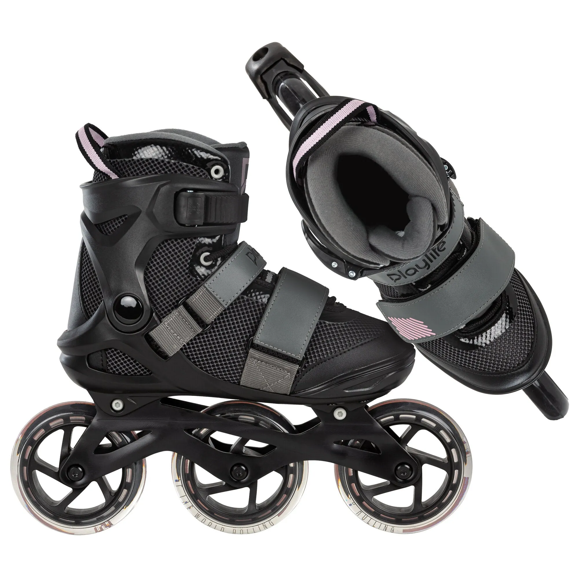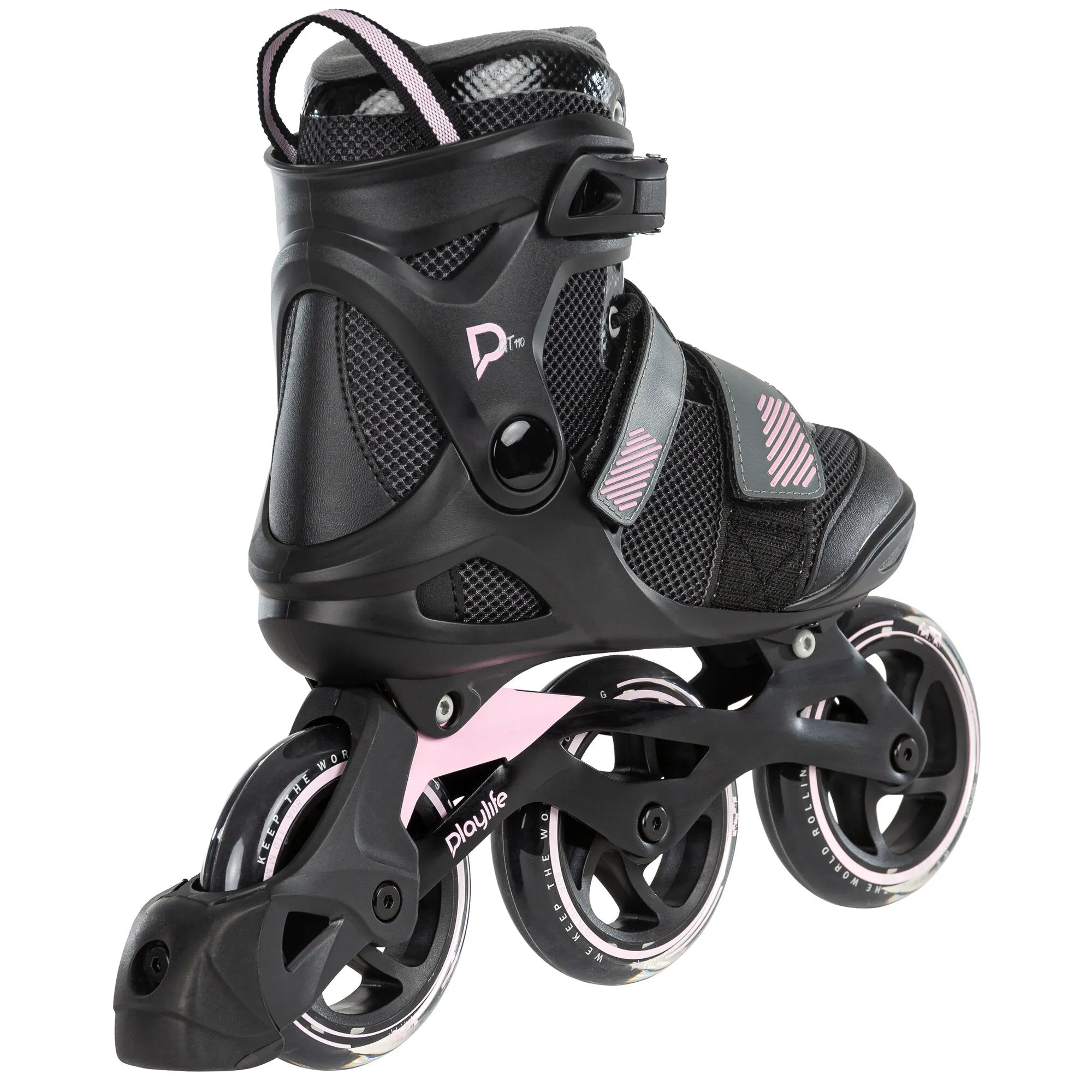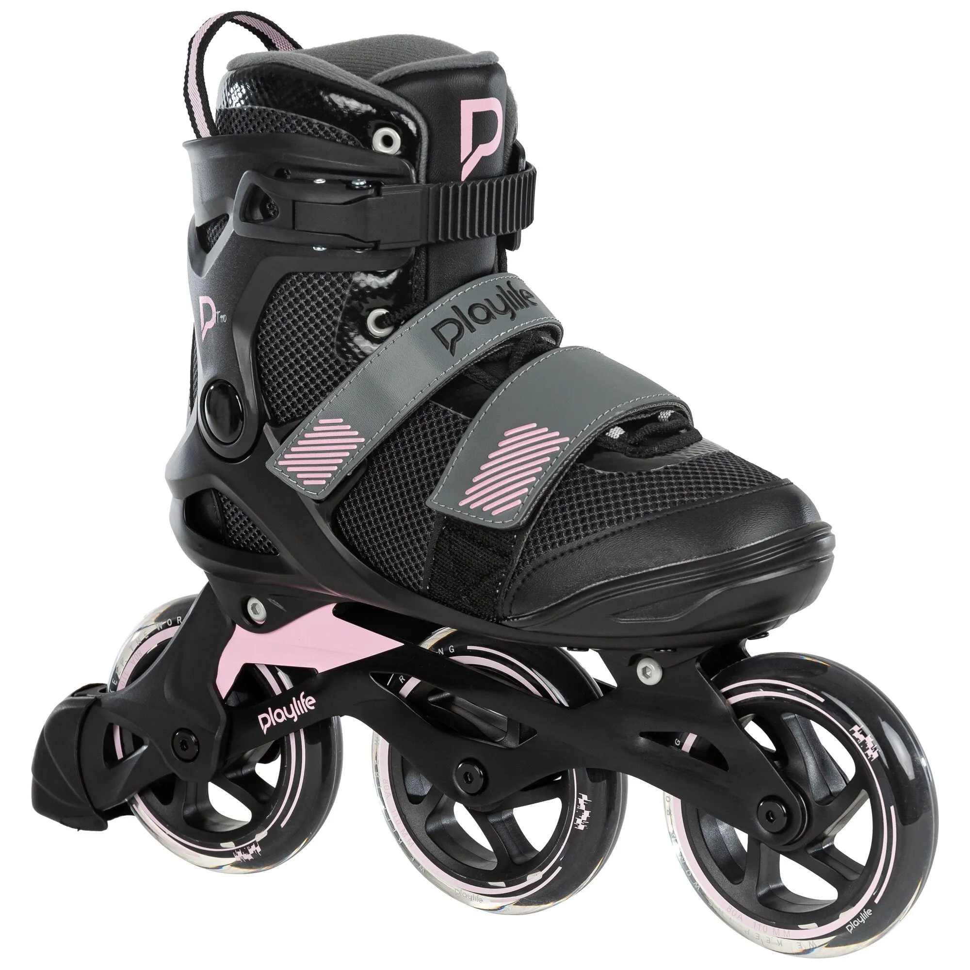 At PLAYLIFE, we believe everyone deserves to have high-quality inline skates for an affordable price. The GT Pink 110 is a 3-wheel inline fitness skate with all the features you need for a fun day of rolling. The PLAYLIFE GT 110 is made with strong, durable materials with technologies and features normally found on more advanced skates, making this skate a fantastic value and ideal for beginners and intermediate skaters. This impressive soft boot inline fitness skate is light and comfortable, while its strong cuff provides excellent support. The GT 110 soft boot skates come equipped with dual-density padding that provides plenty of comfort and a closure system that includes both lacing and velcro straps, and a strong cuff strap that keeps your foot snugly in place. The PLAYLIFE GT Pink 110 really is an excellent value, coming with a light and rigid 3D embossed aluminum frame that provides excellent power transfer and rides on fast 110mm wheels and smooth WICKED bearings. Complete with a heel brake for extra safety and control, the PLAYLIFE GT Pink 110 is a fast, fun, and capable inline fitness skate at an affordable price point.