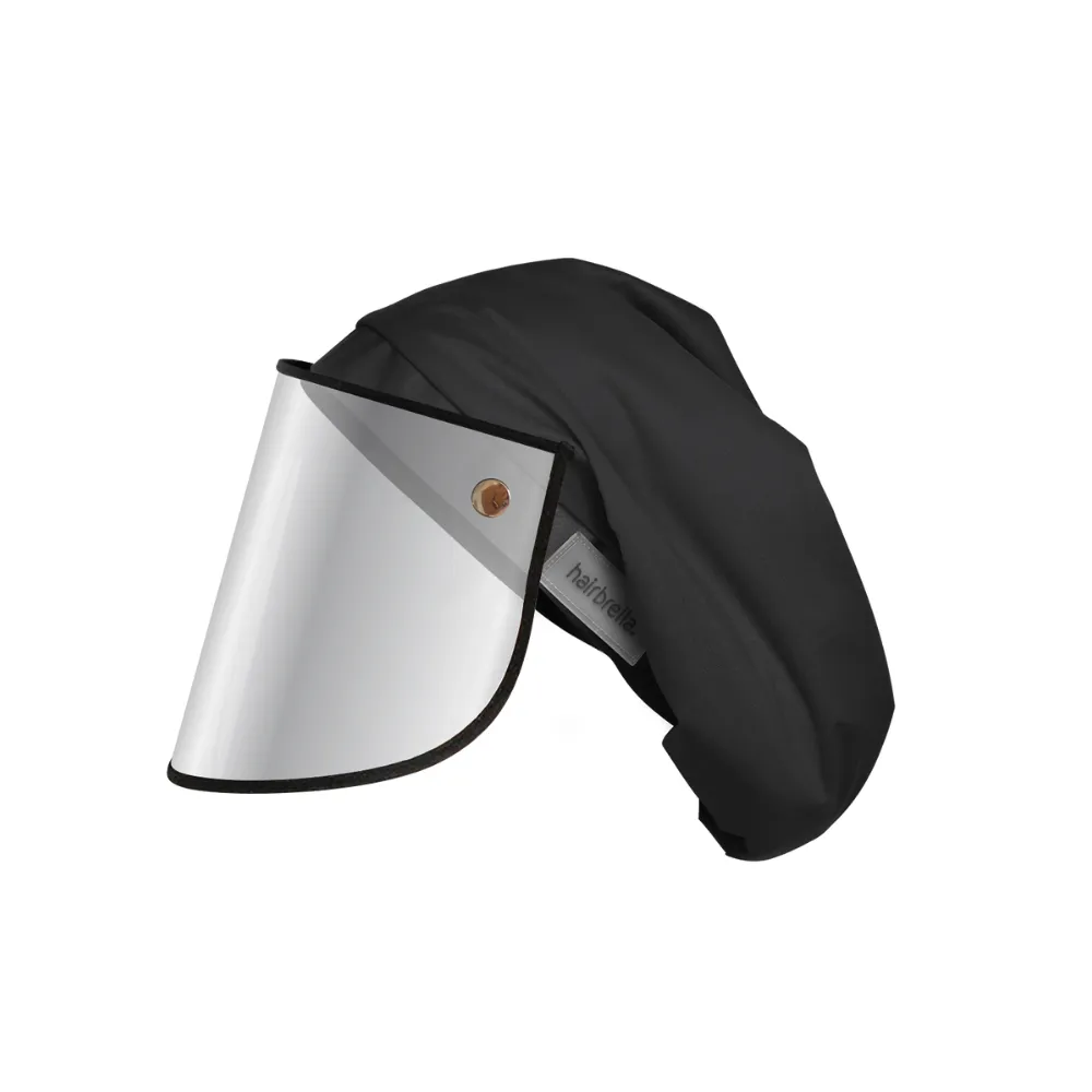 Introducing the Hairbrella Pro XL, a 100% waterproof solution for hair and face protection. Hairbrella Pro XL combines all of our signature features with the additional benefit of a portable, detachable, and adjustable face shield. The perfect companion for work and travel, Hairbrella Pro is our satin-lined solution to bulky face shields. Safety and style in one!