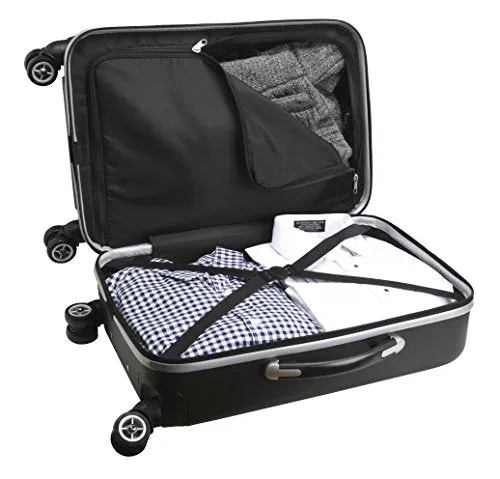Details: Show off your love for each other with the L204 "His & Hers" Collection Carry-On Hardcase Spinner by Denco. It has multi-directional spinner wheels that offers incredible 360-degree upright maneuverability and 100% ABS material designed to absorb impact by flexing when under pressure then popping back to its original shape which eliminates dents and dings. It also boasts a micro diamond texture for extreme scratch resistance. It has a fully lined interior with elastic garment straps, interior zipper pocket for delicate items and top and side handles that make it easy to lift in any situation. It is decorated with a “His” or “Hers” decorative design, and would make a wonderful and special gift for newlyweds or anniversaries. It includes a 1 Year manufacturer limited warranty.