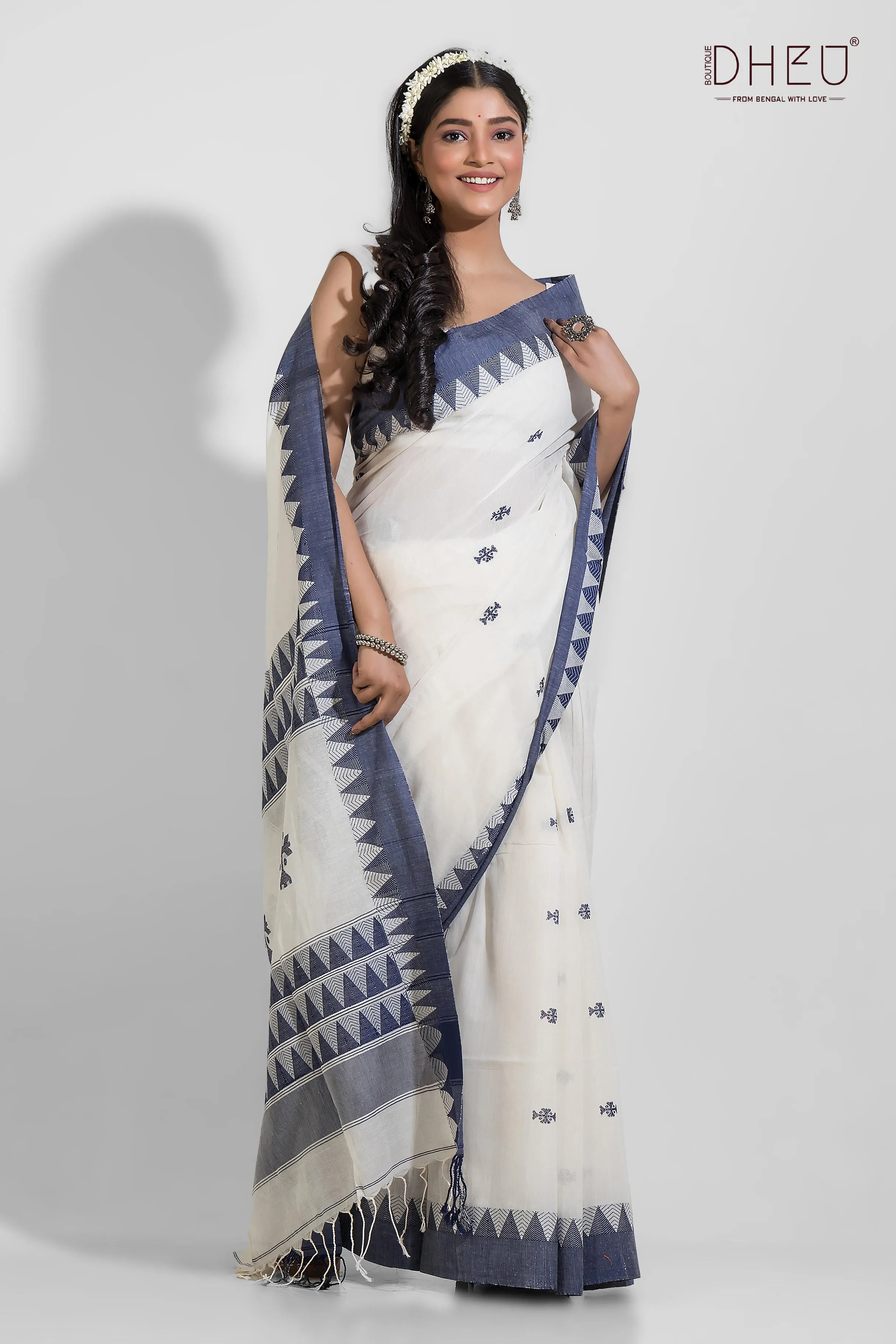 Indulge in the ultimate luxury of our Pure Khadi Cotton Saree. Impeccably handcrafted and bearing the esteemed Handloom Mark, experience the essence of Indian heritage and elegance. Unleash your adventurous spirit as you explore our exclusive collection at Dheu Boutique.