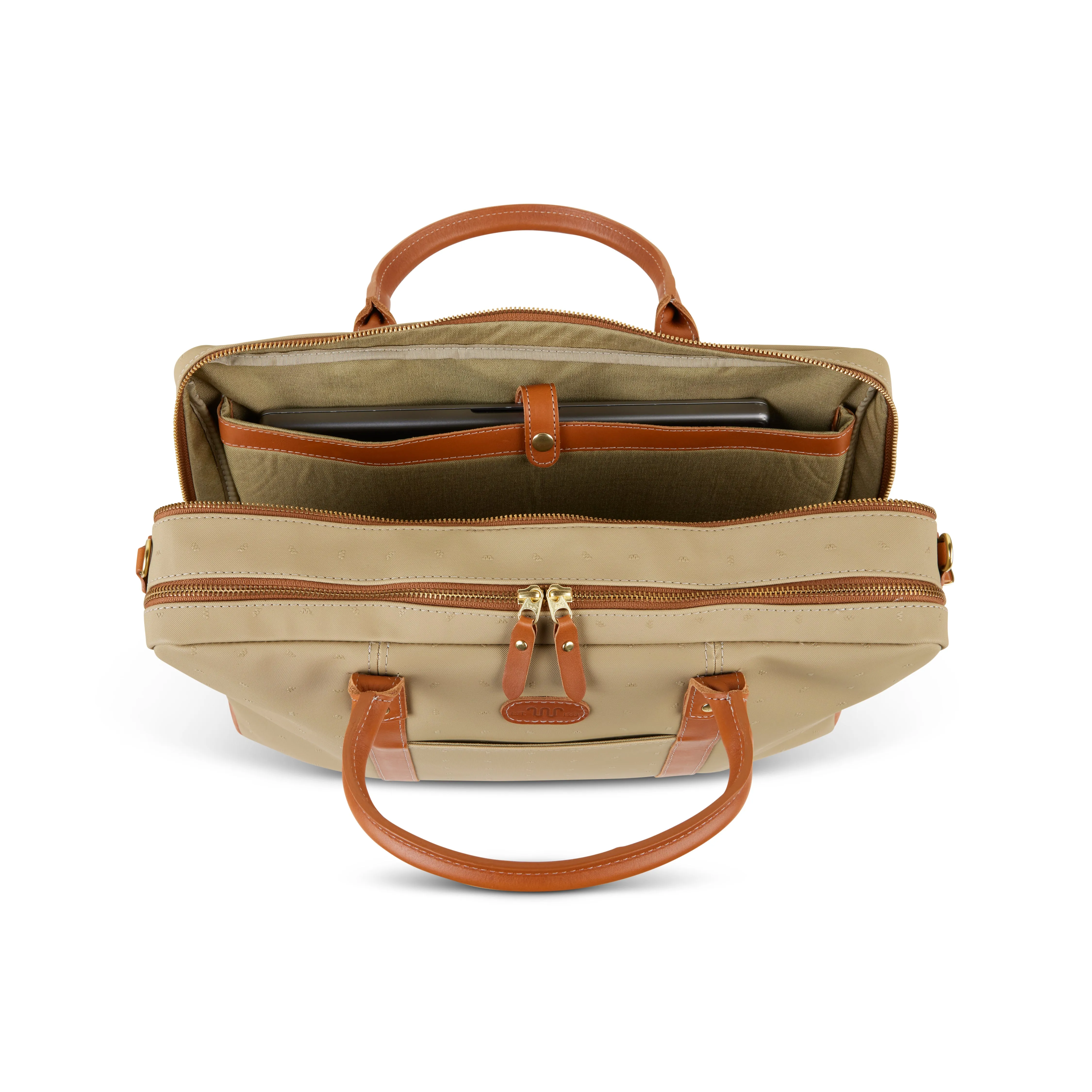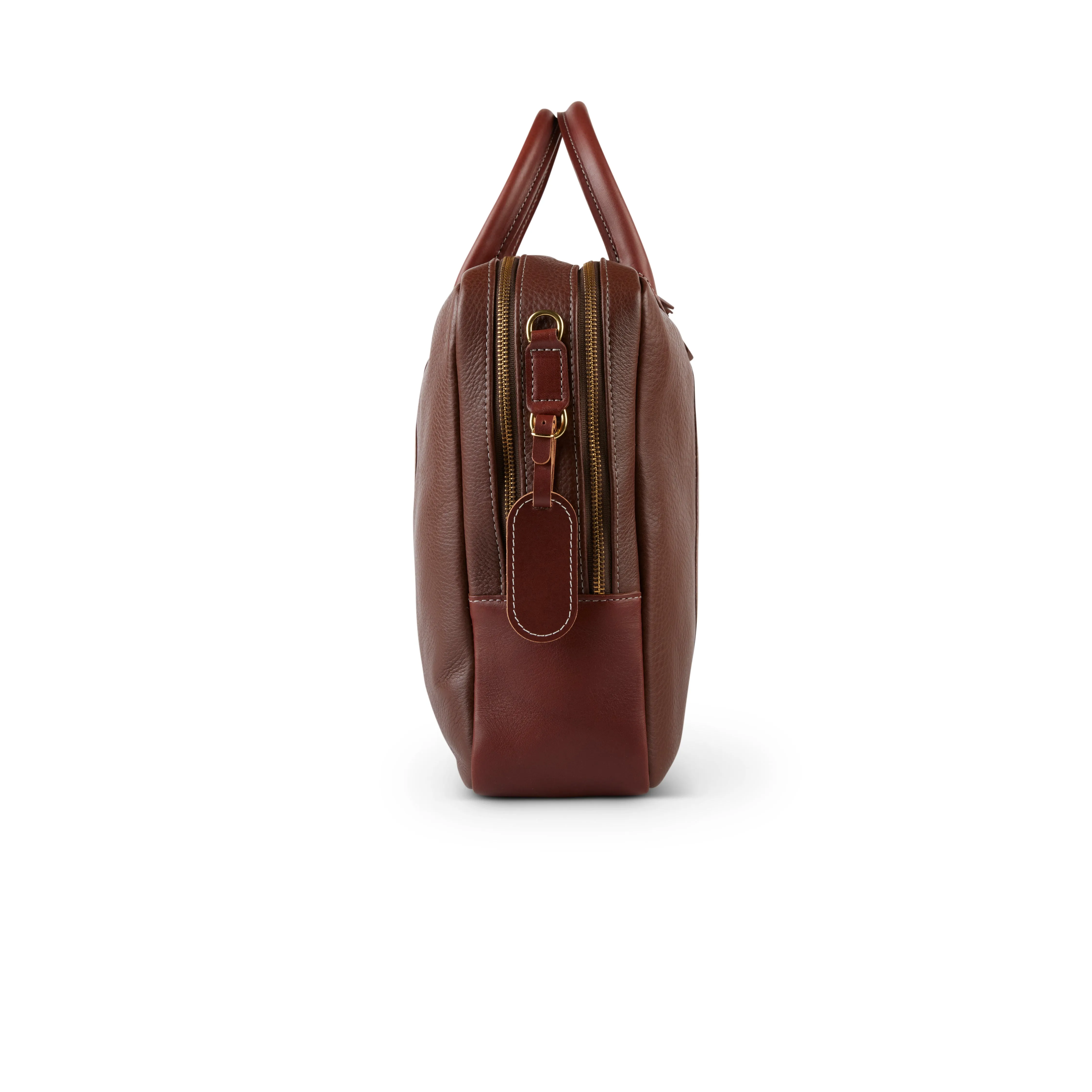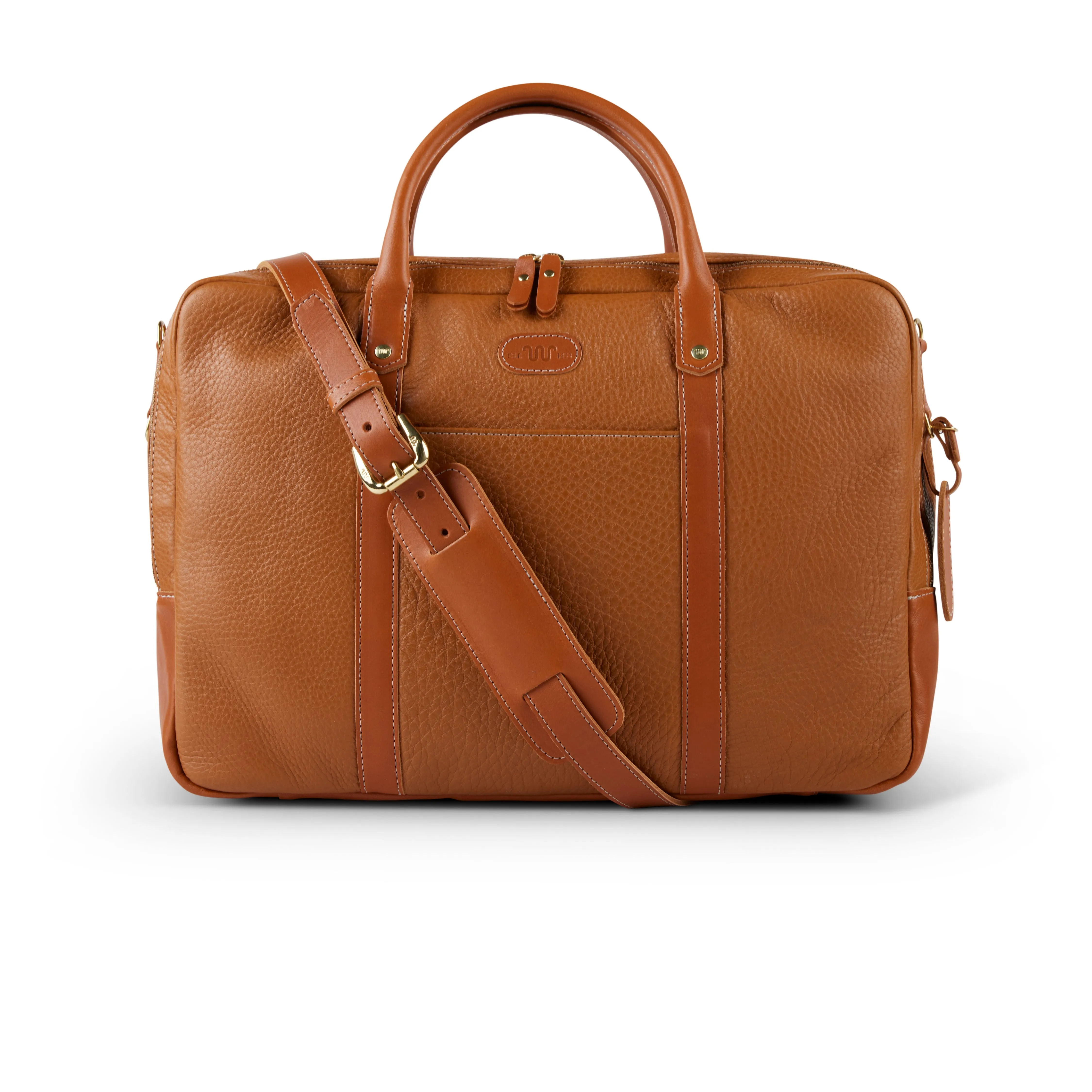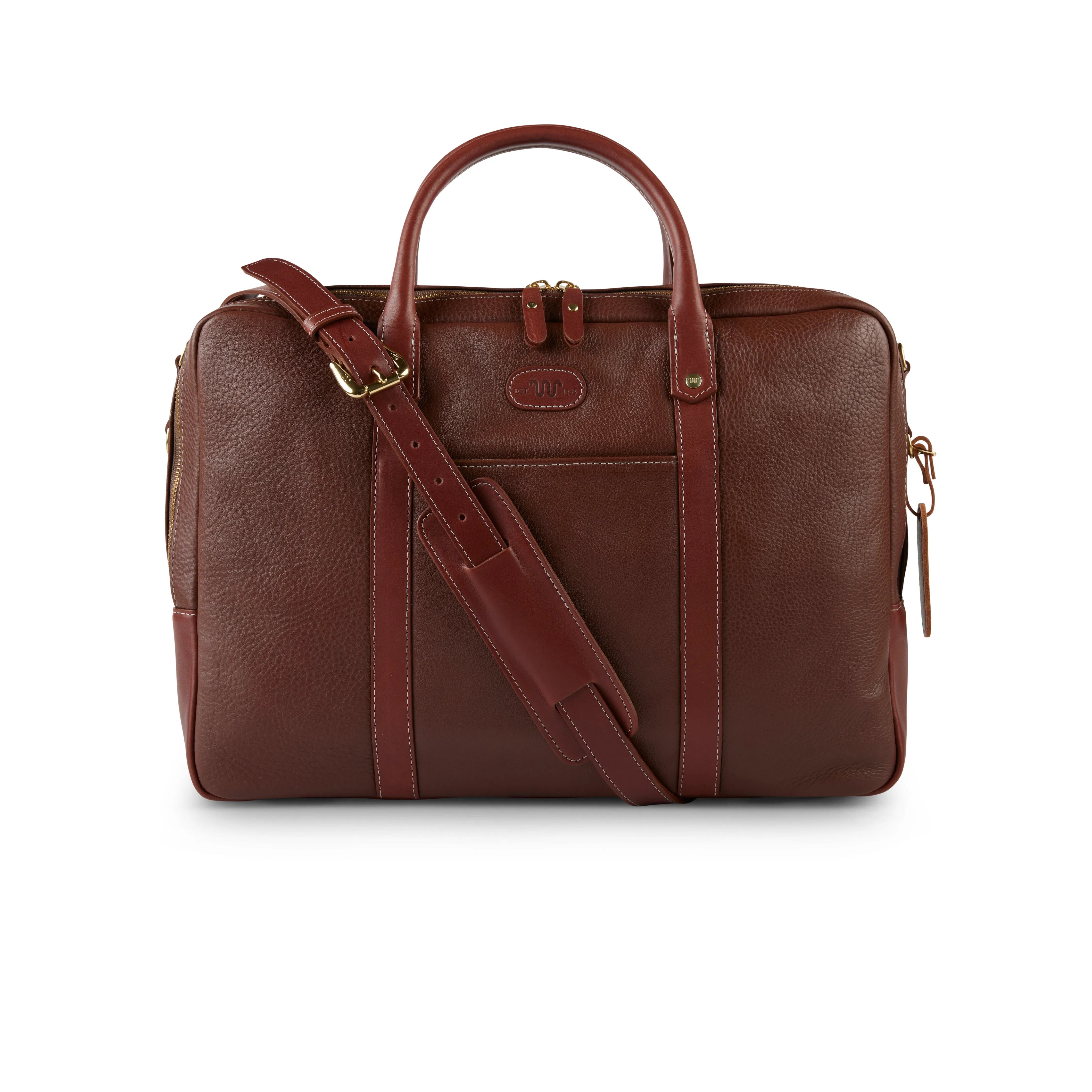 Our Justus Collection would not be complete without our discerning take on the everyday essential briefcase. Crafted from the finest Docil leather, it boasts two large zip compartments with double-way zippers for ultimate convenience. Carefully considered for the businessman or woman’s needs, it also features a padded laptop sleeve in one compartment and leather organization details on the opposite compartment. As well as an outer sleeve pocket for quick access. It is a great gift for the hard worker on the go and includes a removable fob you can personalize.