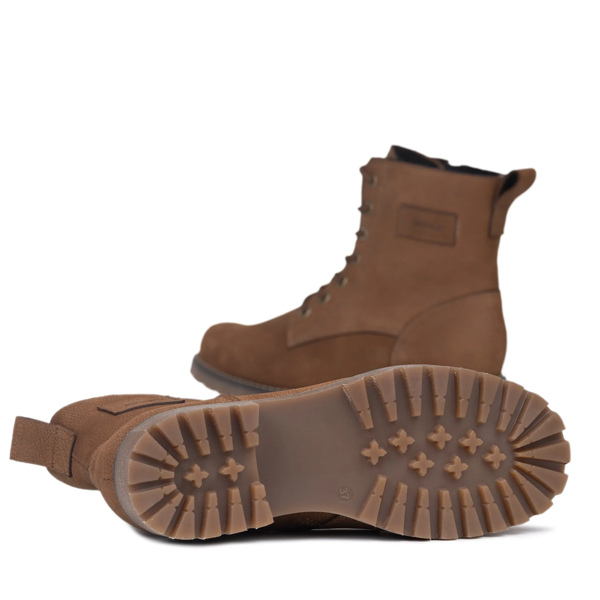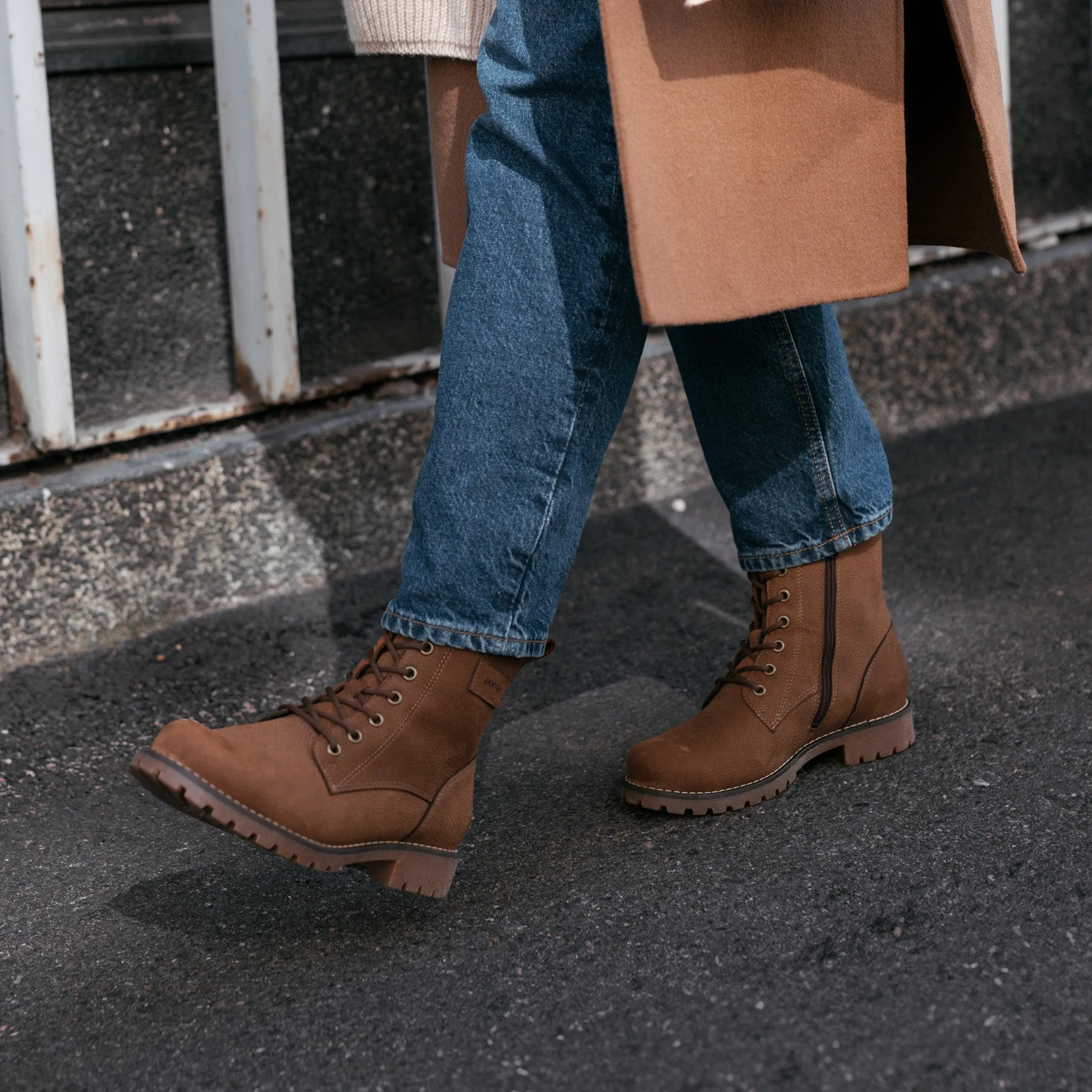 A classic lace-up ankle boot, KARA seamlessly blends style, functionality, and sustainability. Wrapped in upcycled Heinen nubuck leather with an embossed grainy texture adding depth and character, to your boots.