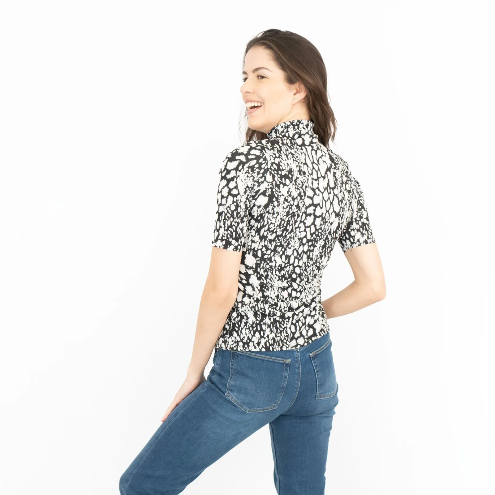 Karen Millen Womens T-Shirt Black White Summer Holiday Workwear Short Sleeve