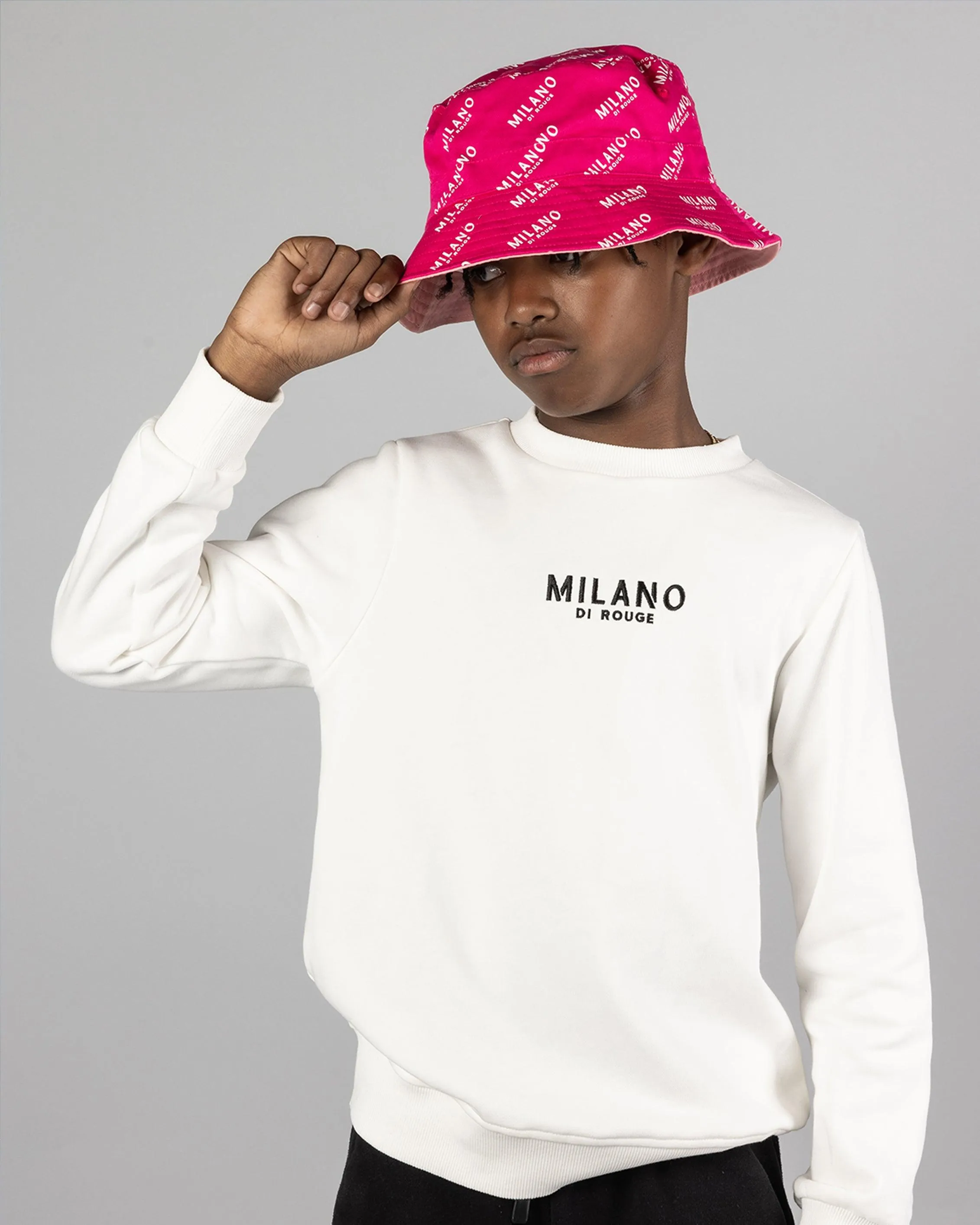 Carefully crafted using breathable and hypoallergenic cotton, our Baby Bucky Bucket Hat is unisex, lightweight and easy on your mini's skin. Fitting snug and just right, this piece was intentionally designed to be super comfy, while simultaneously withstanding baby's pulls and tugs. Also available in adult sizes for a Milano family look. This hat is reversible and has a removable string.