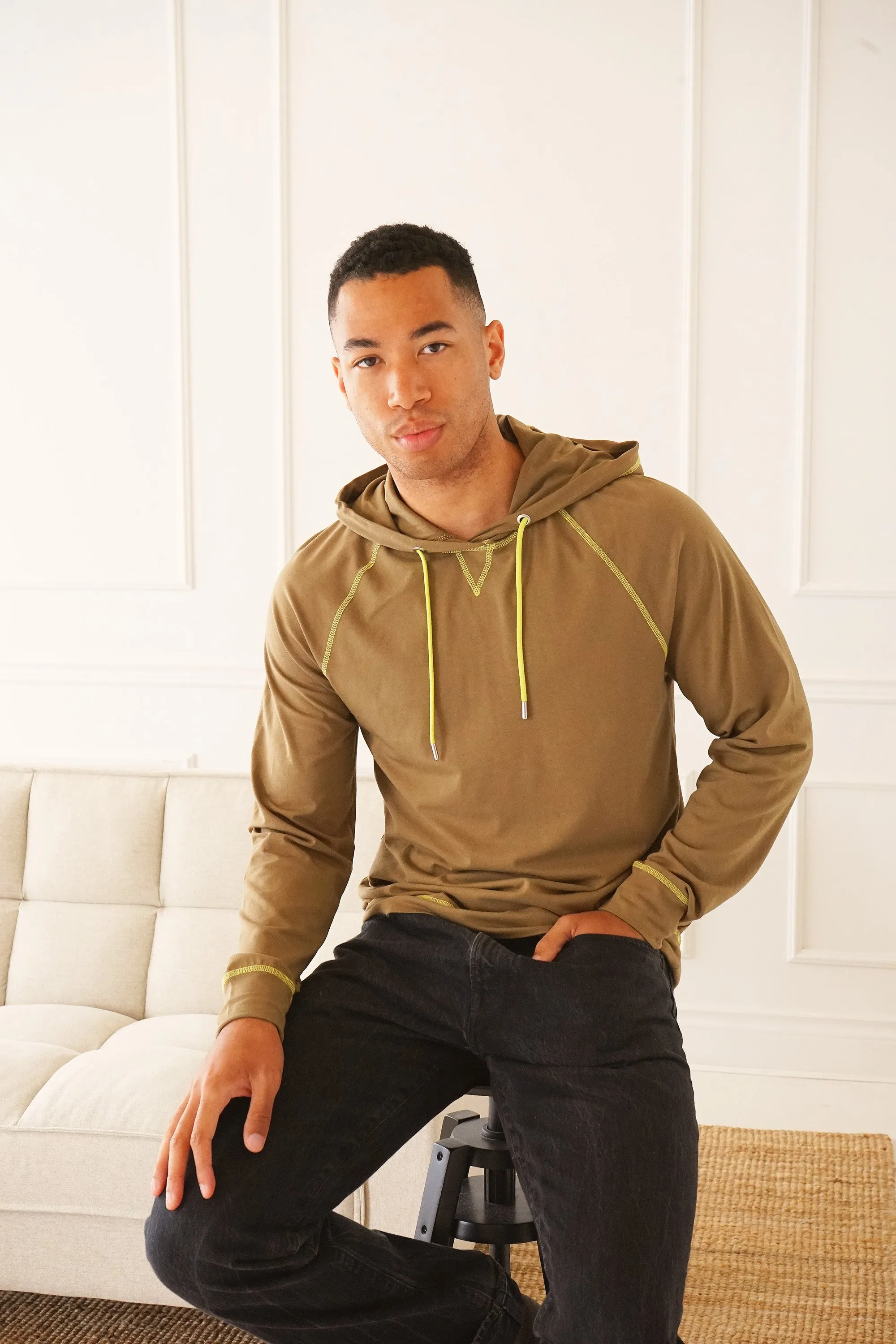 Embody the Benson 'lax spirit in this comfortable supima cotton hoodie. Made with stretch for easy comfort. Lightweight and ideal for layering, it's a great pick in any weather. Slip yours on over the Long Beach or under Bolton on weekends. Laguna-C tops the original Laguna with contrasting, top stitching and drawstring.