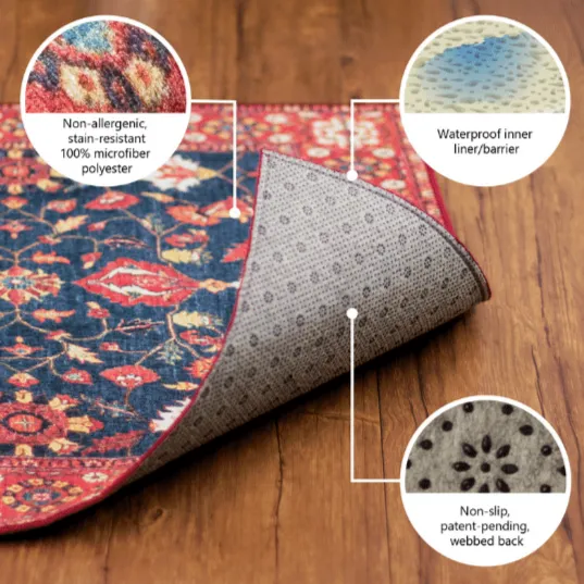 Our exclusive patent-pending rug comes with a nonslip backing included. Plus, it is machine washable, stain-resistant, and waterproof, making it the perfect, hassle-free all in one rug.