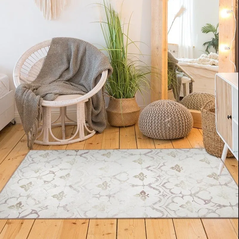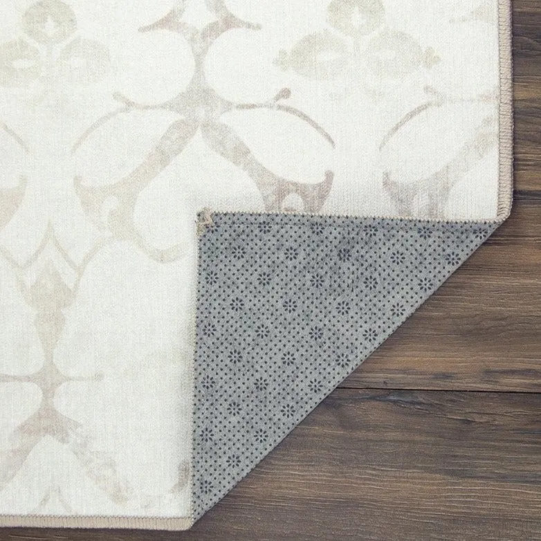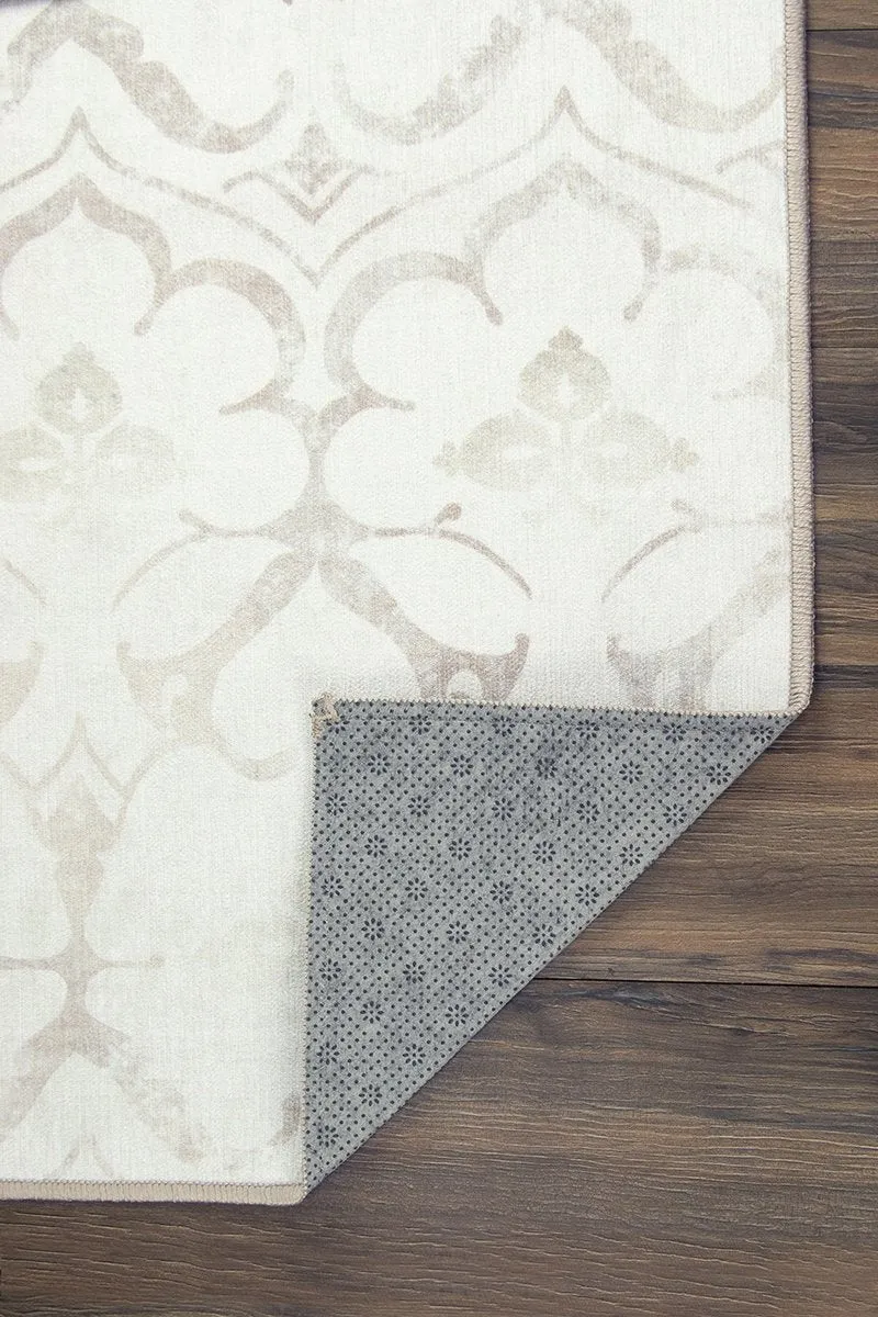 Bring old-world class and charm to your home with traditional and beautiful patterns, distressed for an amazing timeworn look with light grey shades. Outfitted in a conventional Damask pattern in muted ivory, our antique-inspired and traditional rug will set an understated as well as an approachable foundation for any room. Its near-neutral tones give the piece the versatility to coordinate with almost any color palette.
