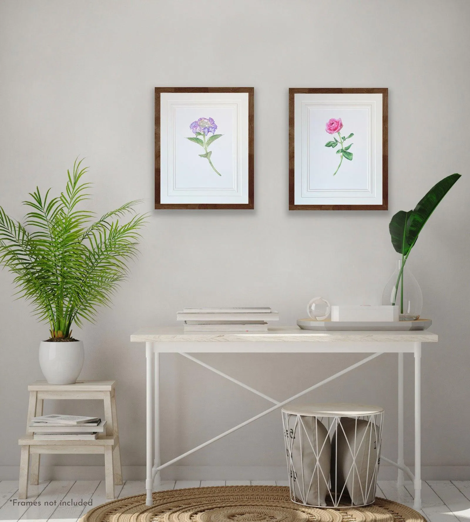 Our botanical prints are limited edition giclee prints with an edition size of 50 prints per painting, printed on archival standard Somerset Enhanced Velvet paper by our Master printer. Each print has been hand-numbered and embossed by the publisher and signed by the artist. They are mounted in bespoke hand-made textured white double reverse cut mounts.