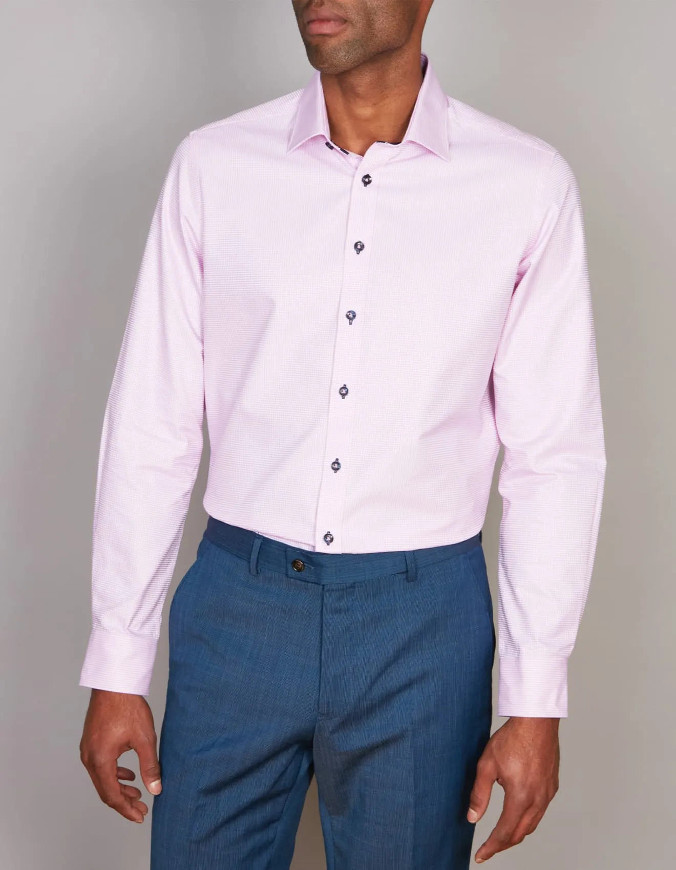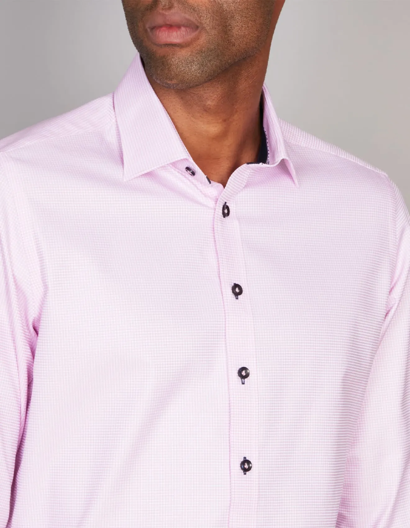 Introducing the Abelard Long Sleeve Business Shirt in a refined Super Fine Micro Check pattern, presented in a soft pink hue. This shirt is the epitome of subtle elegance, designed for the modern professional who appreciates a touch of colour in their business attire. The fine micro check design adds a sophisticated texture to the fabric, ensuring you stand out with an understated yet distinctive style.