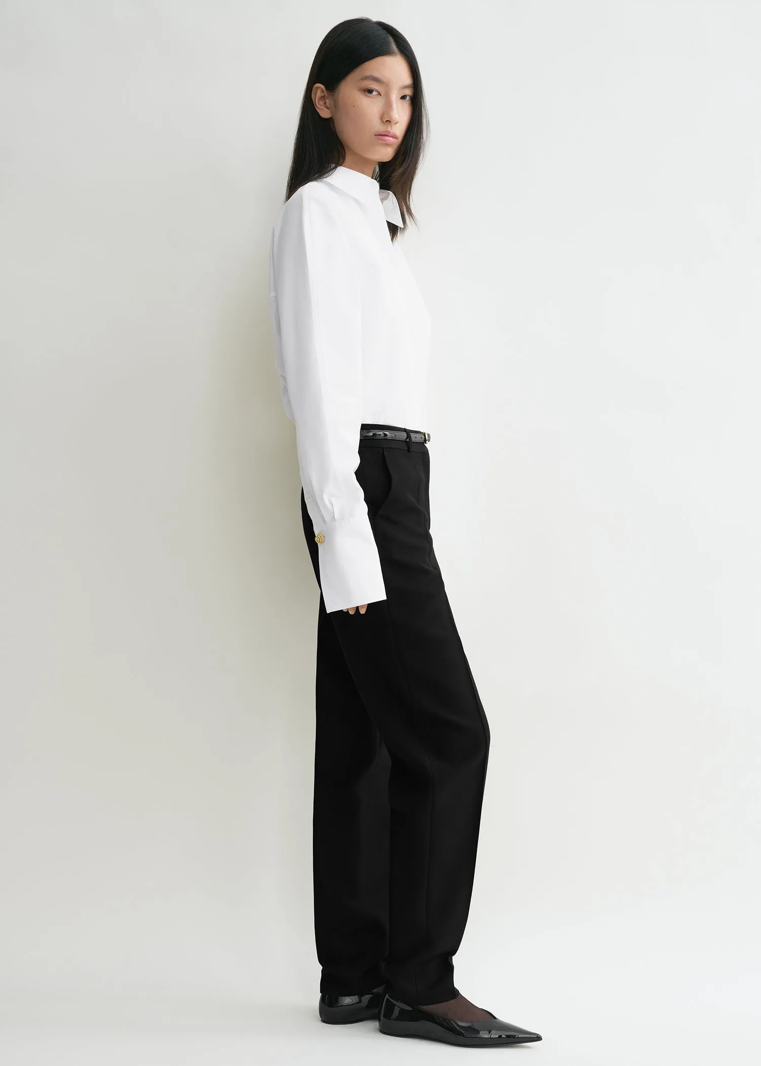 These suit trousers are an expression of TOTEME's distinctive tailoring codes. They are made from a grained fabric with a low, hip-hugging waistband and straight legs that are subtly tapered toward the ankles for a relaxed feel. Team them with a white shirt for a day at work.