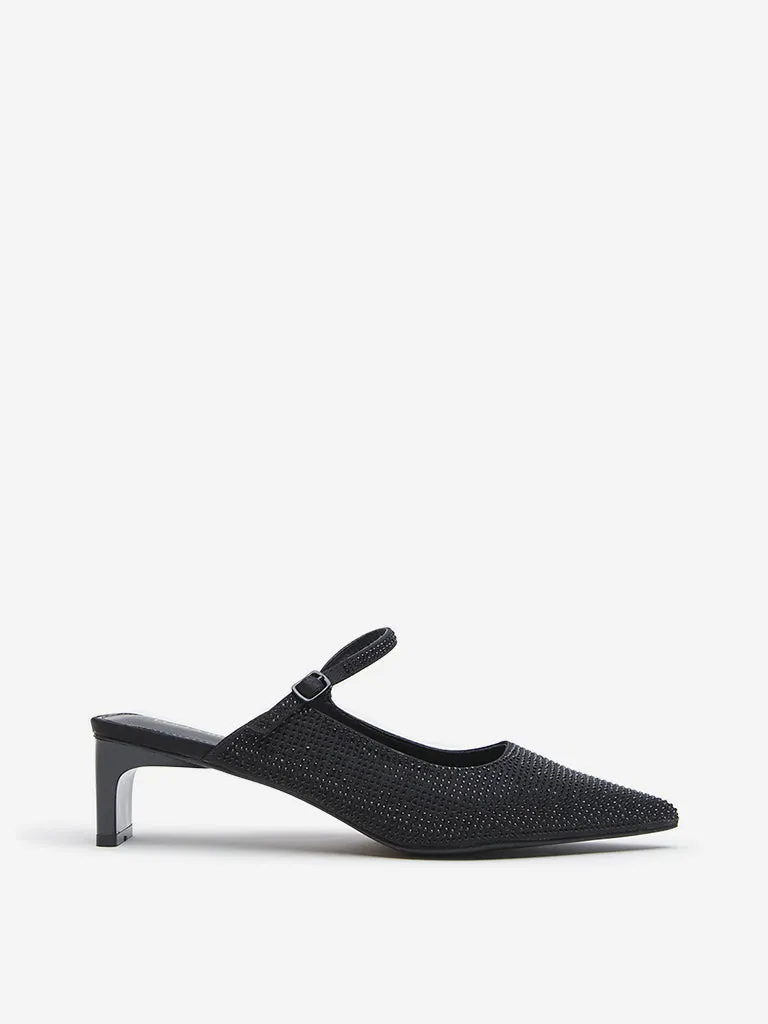 These black shoes from Luna Blu are designed with embellished detailing on the multi-straps. Built from durable materials, it comes fitted with a cushioned insole and heels for a comfortable walking experience.