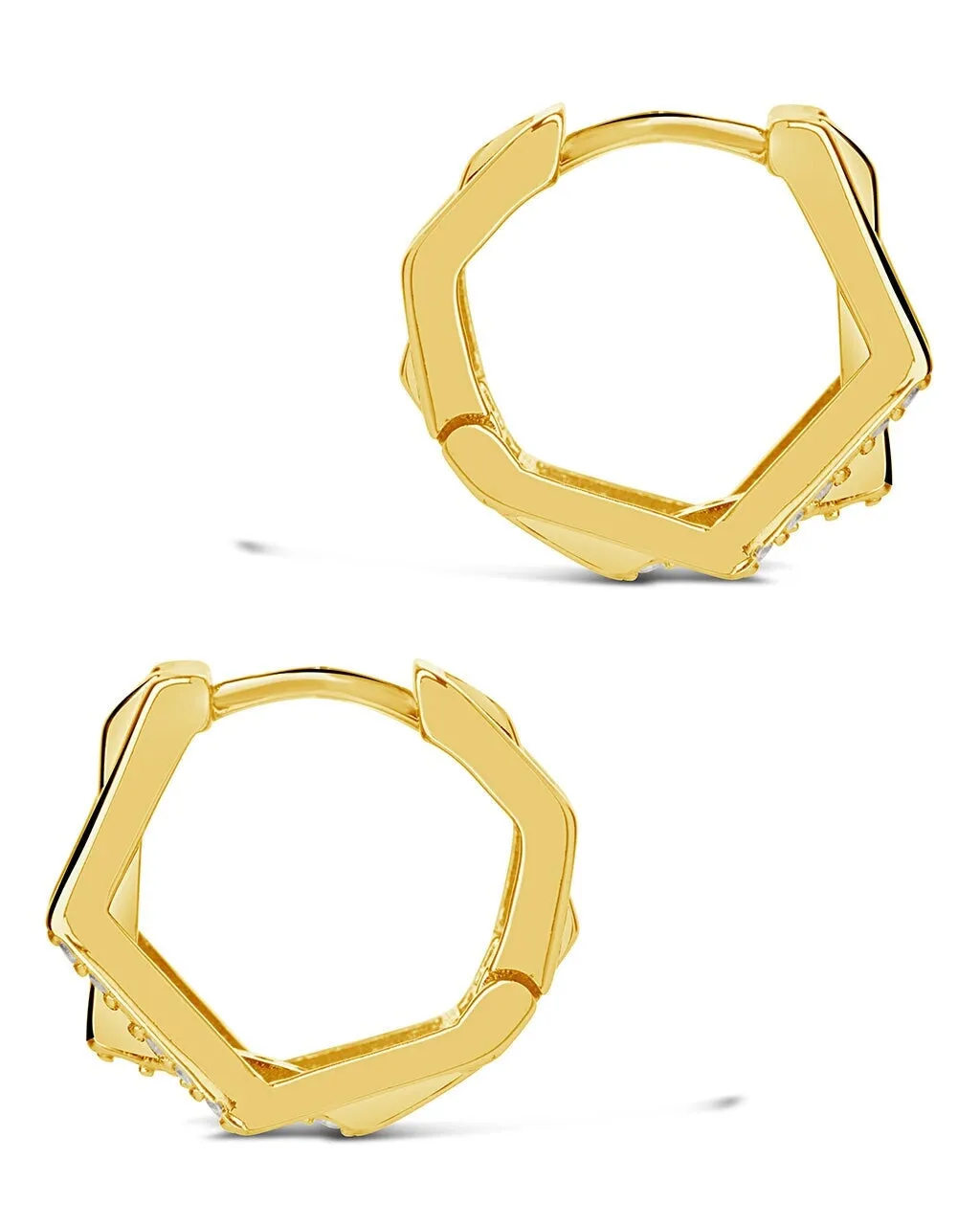Elevate your style with our Men's Geometric CZ Micro Hoop Earrings. Featuring sparkling CZ stones, these micro hoops are perfect for the stylish man. With a male point of view, these earrings add a touch of luxury to any outfit. Upgrade your look with these exclusive pieces.