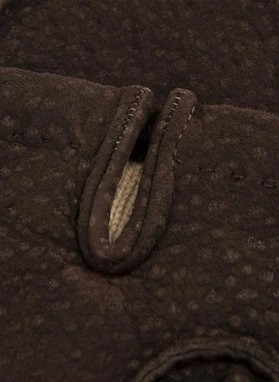 This unique leather has been compared to the finest leathers in the world and shares a similar pattern as peccary leather. It is soft, supple and delicate to the touch.