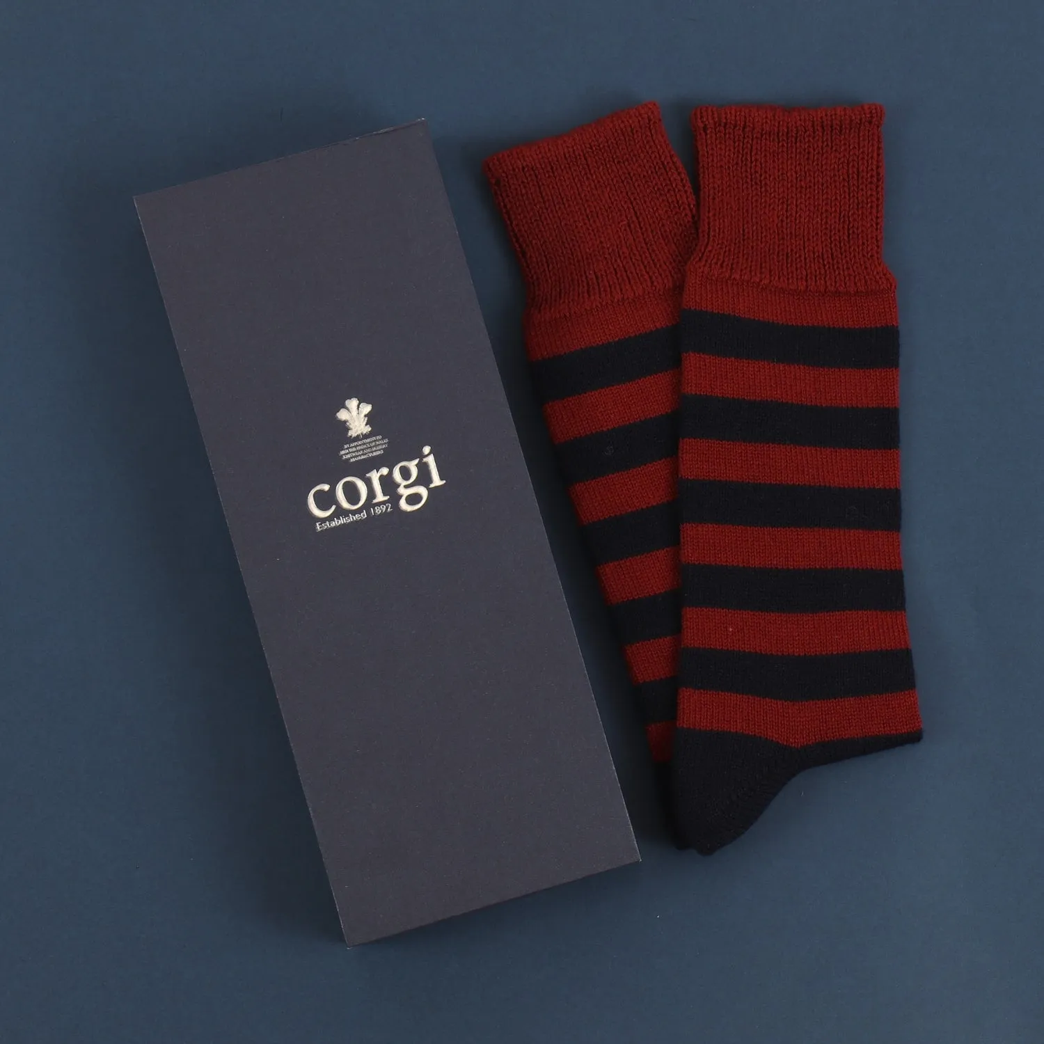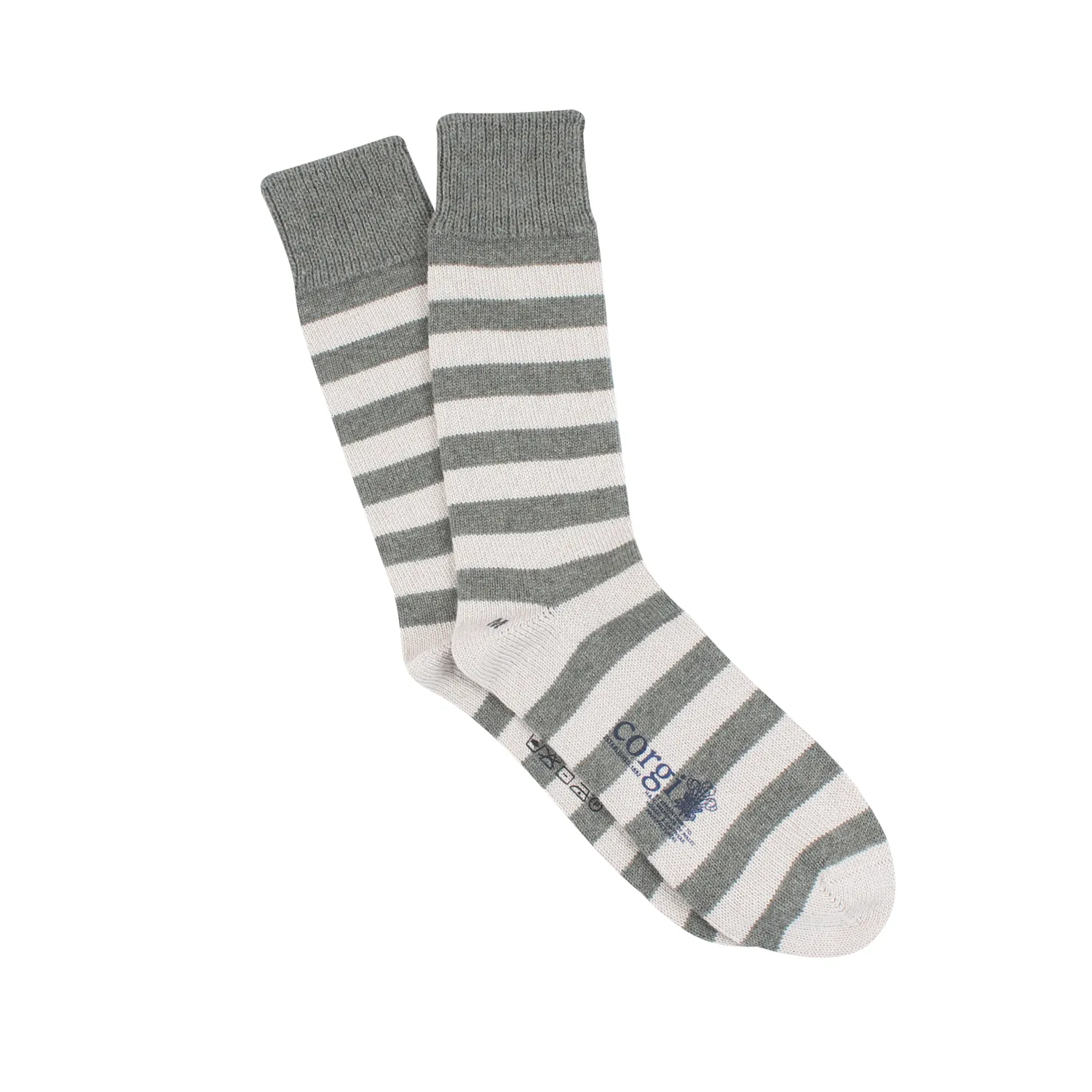 An unbeatable striped sock crafted with a fine blend of cashmere and cotton to create a luxuriously soft and comfortable lounge sock. Presented in a Corgi gift box.