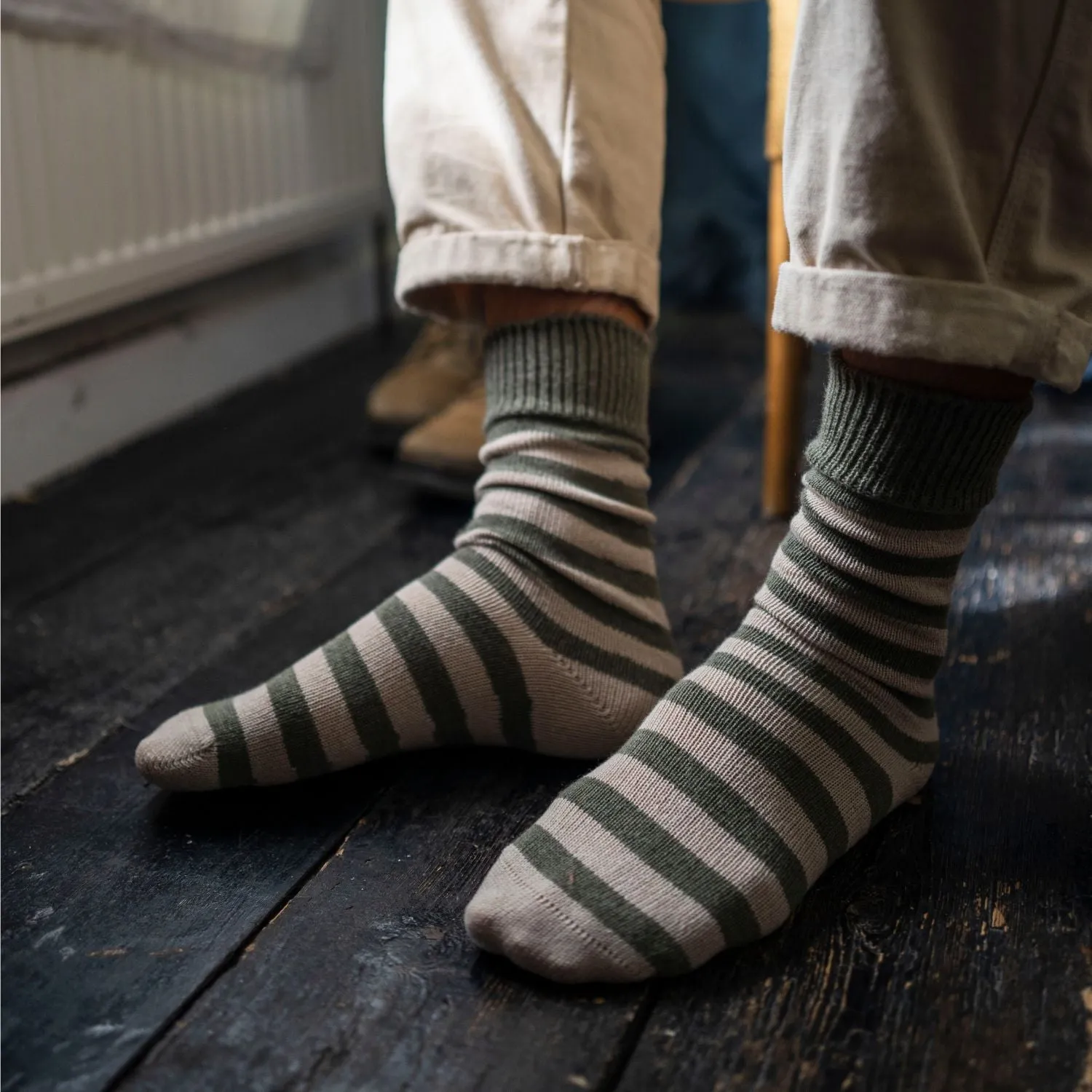 A luxurious blend of cashmere and cotton creates a beautiful yarn, ideal for some of our most beloved lounge socks.