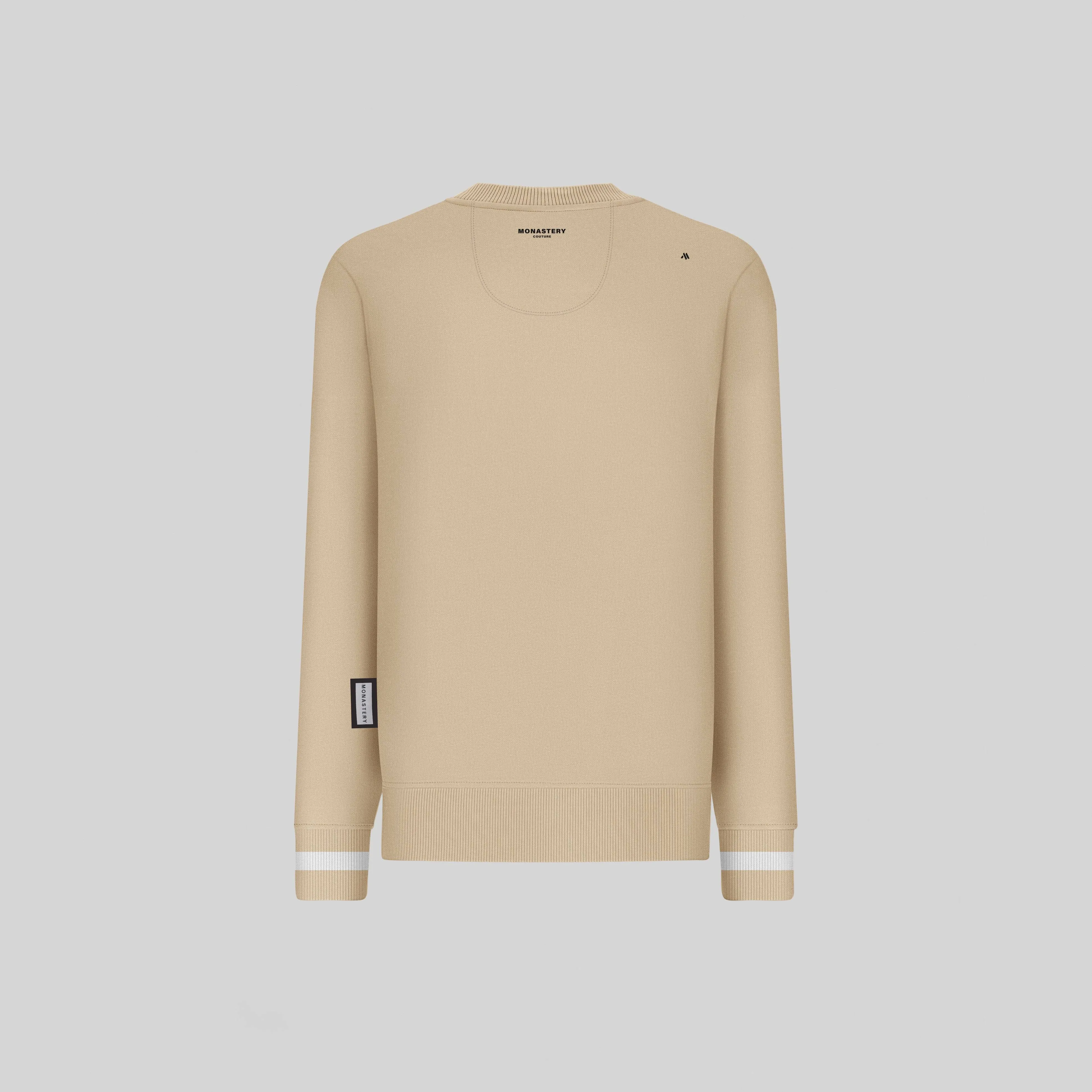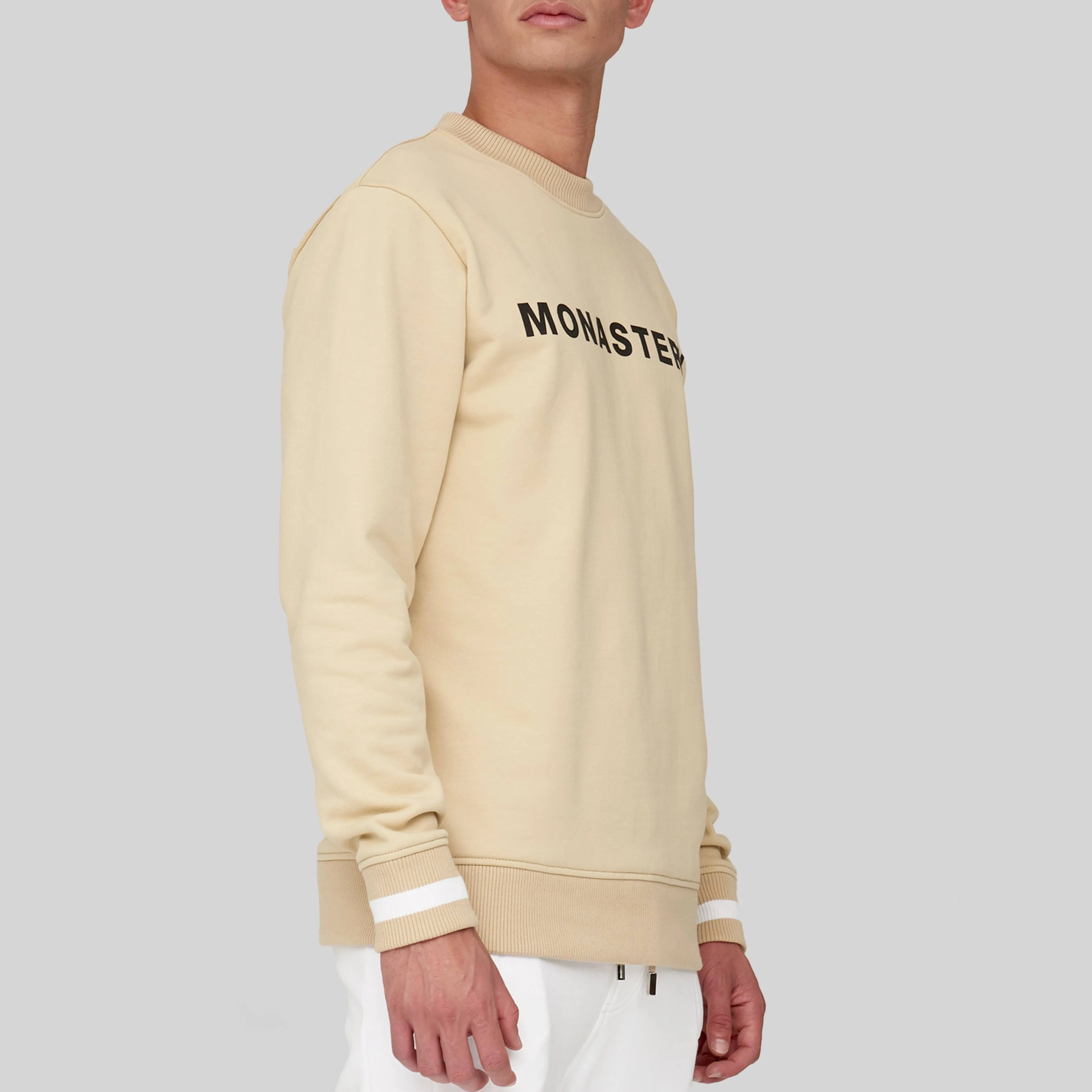 Our Sweatshirt Mileto, features the text Monastery embossed plastisol to the center of the chest in contrast to game with cuffs. Textile base is a 100% Peruvian cotton fabric, this knit fabric is soft and comfortable texture, in addition, it is made in a regular silhouette that enhances the male figure.