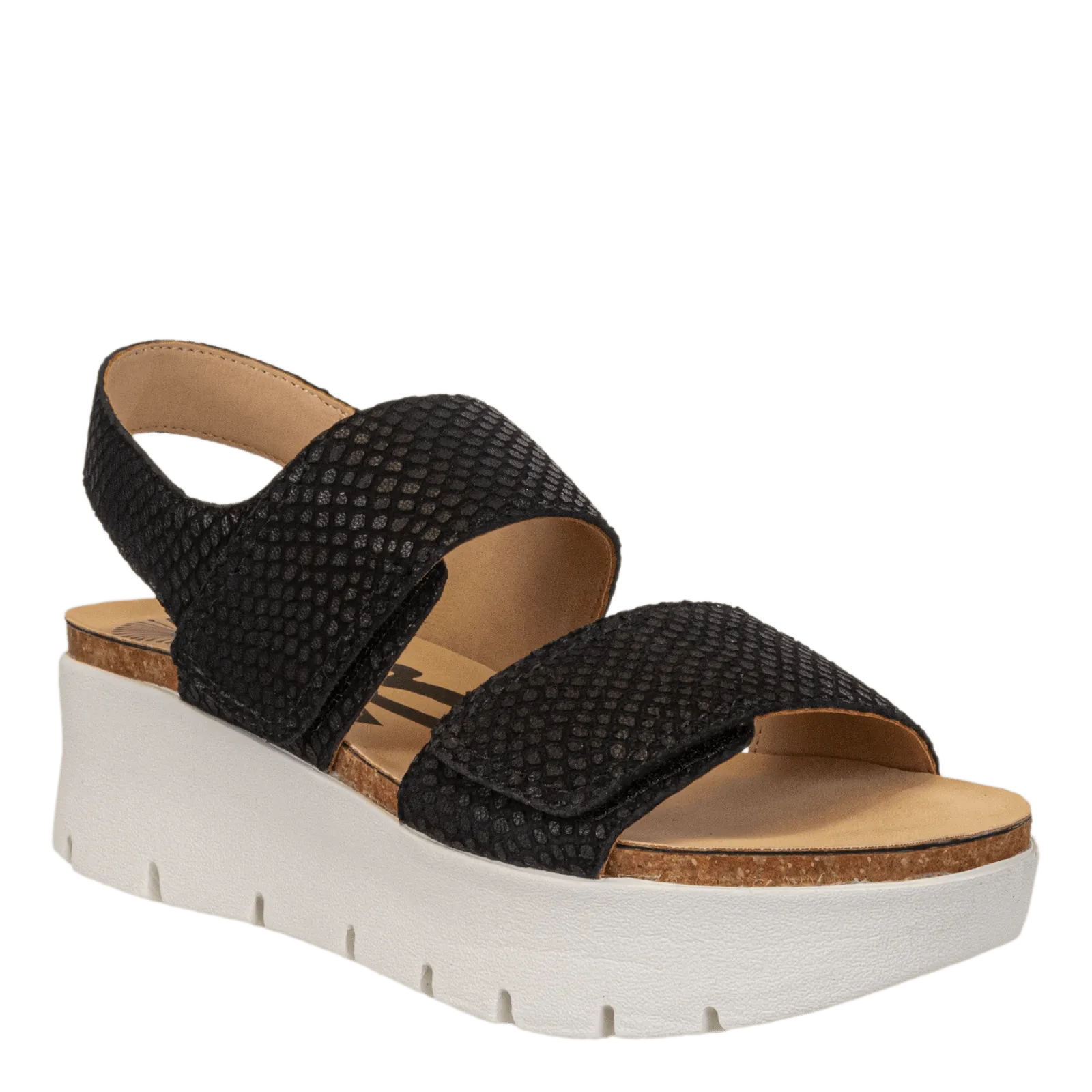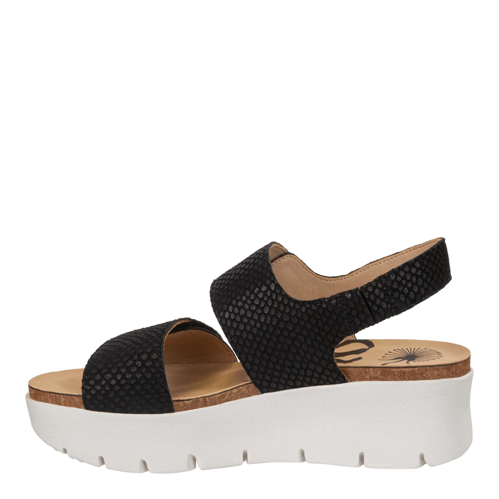 Introducing a style with a completely personalized fit. Montane in black is designed with embossed leather, and features double velcro straps, so you can customize the perfect fit for you. Part of OTBT's Travel Lite® collection, this platform sandal also ups the cool factor with a lightweight sport bottom. These comfortable walking shoes are made for women who can't be weighed down.