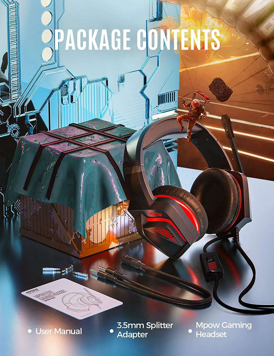 - Full Platform Compatibility: Equipped with a 3.5mm jack, Mpow gaming headset is widely compatible with PS4, PS5, Xbox One, Switch, PC, Laptop, Cellphone, etc. Note: The old version Xbox One needs an adapter