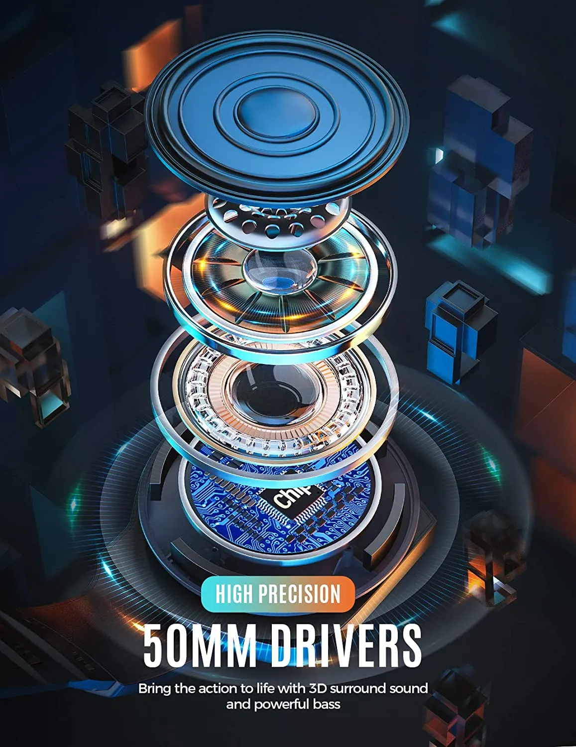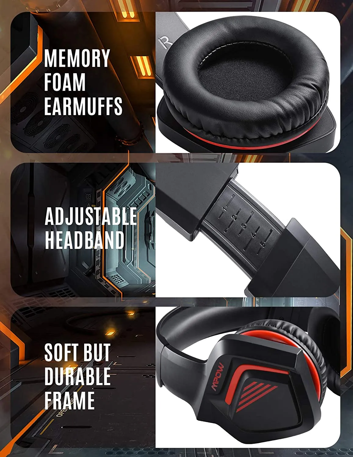 - Ergonomic Design & Comfortable: Comfort-driven design removes pressure on your head while you play; Equipped with memory foam, breathable leather, and self-adjusting earmuffs makes the earpads automatically surround your ears for the best comfort and noise isolation.