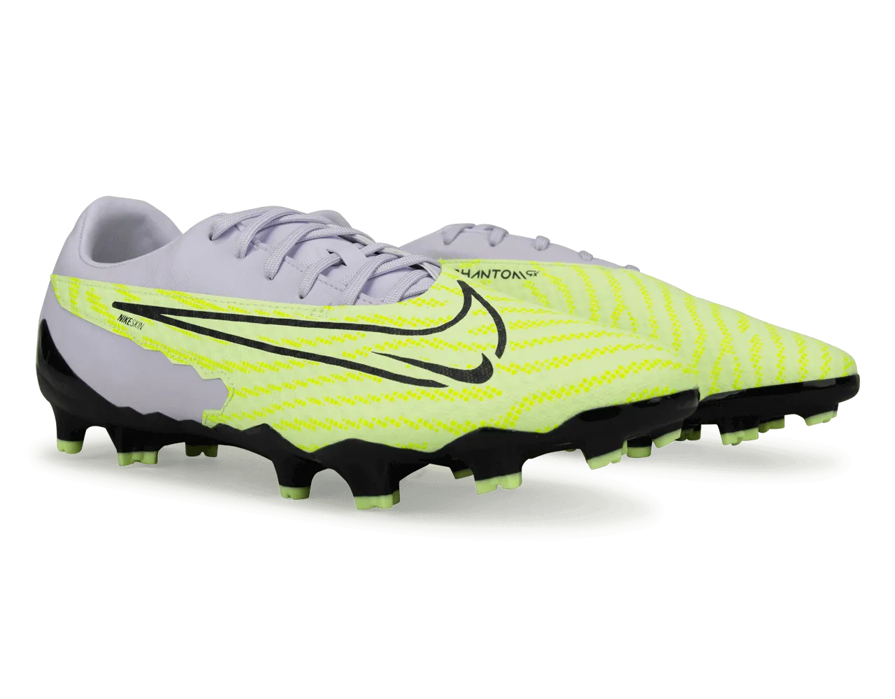 Nike Men's Phantom GX Academy FG/MG Volt/Grape: where electrifying style meets elite performance. These soccer cleats are crafted for precision and power, ensuring you stand out with every kick. Elevate your game with the Volt/Grape combination that sparks energy and confidence on the field.