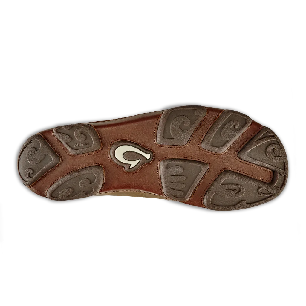 The OluKai™ Moloa will have you steppin' with the carefree island style for those lazy days under the sun. Full-grain leather upper with hand-sewn stitching. Features embossed 'crest' detailing on vamp. Collapsible-back shoe features a fold-down heel counter that allows it to be worn as a slip-on or a slide. Microfiber suede lining. Rigid cellulose fiber insert for stability. Microfiber suede footbed covering with a soft polyurethane base GEL insert in the midsole for all-day comfort. Full-grain leather outsole with non-marking, molded rubber traction pads for added grip. Advanced construction technique wraps premium materials around the anatomical footbed for an elevated fit. Imported. Product measurements were taken using size 8, width D - Medium. Please note that measurements may vary by size. Weight of footwear is based on a single item, not a pair. Measurements: