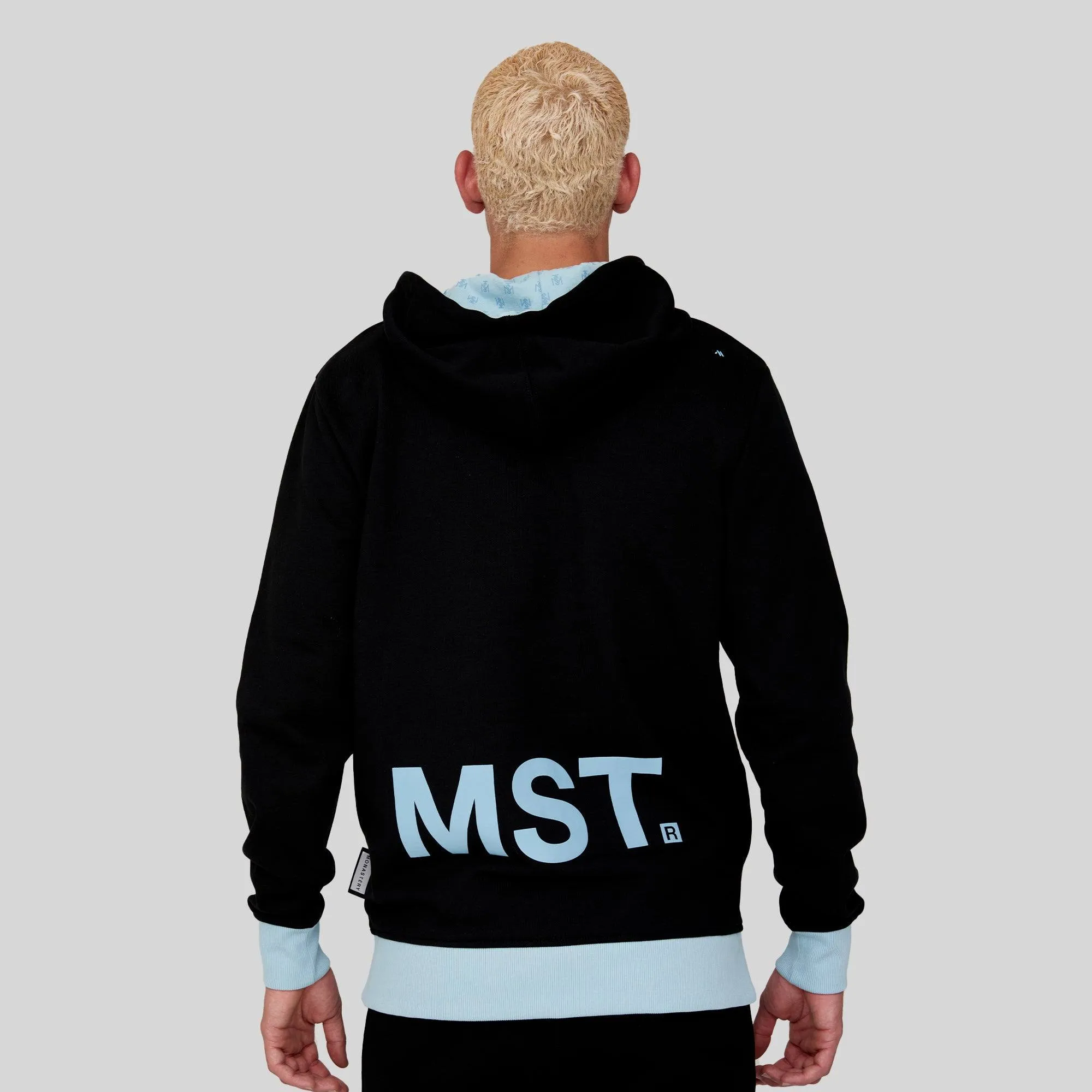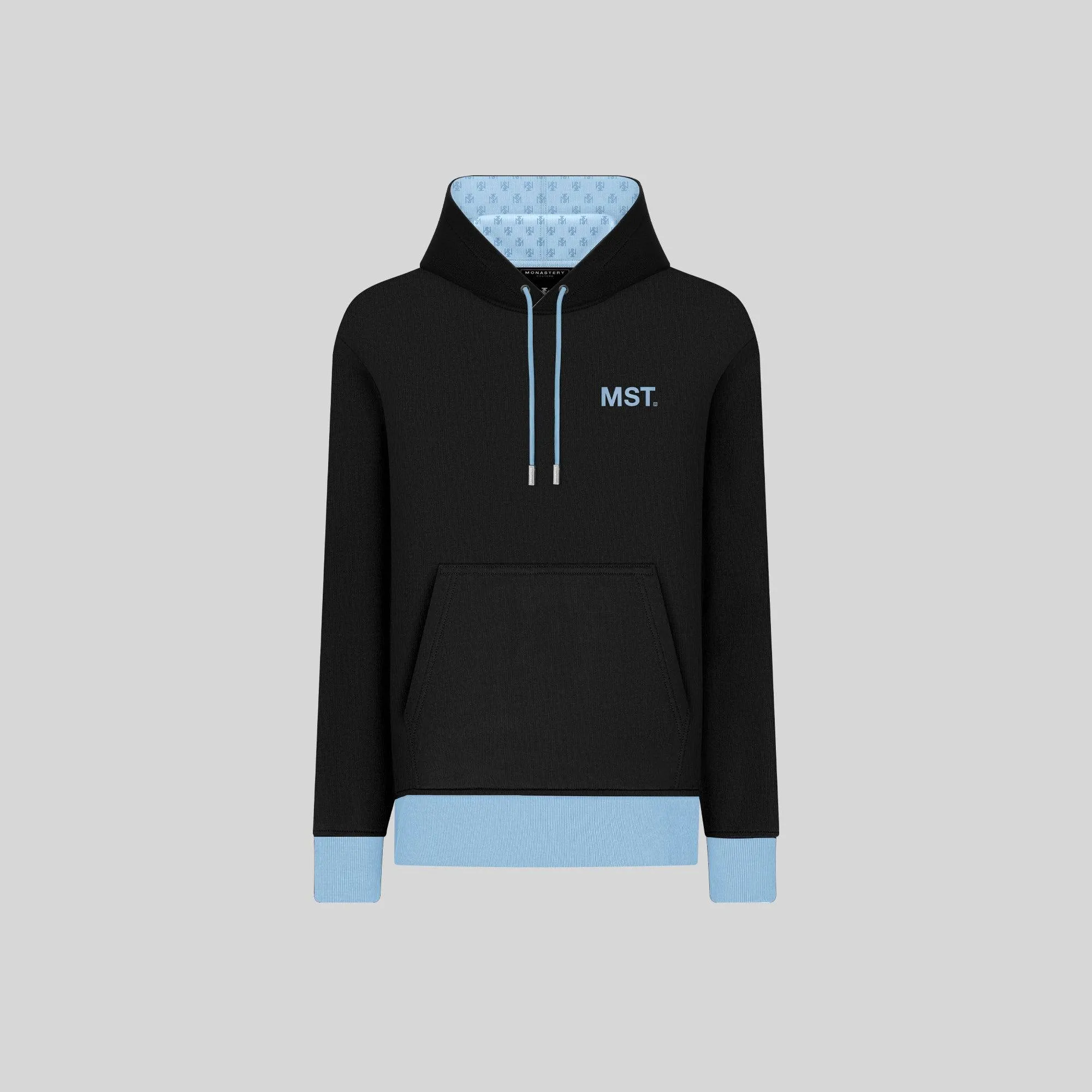 Hoodie Onquesto with kangaroo pocket, MST heart point stamped on the front and back at the bottom in contrast. In the inner part of the capote we can see a lining with the logo emblematic MST. The cuffs of the sleeves and the ruedo are in contrast. The textile base is made up of 100% of Peruvian cotton and is made in a regular silhouette that enhances the male figure.