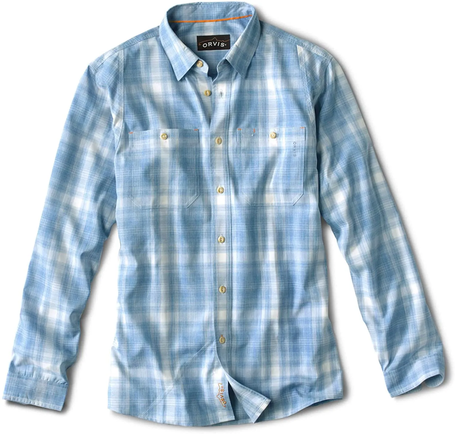 ||Technical performance with casual style—this Tech Chambray Work Shirt features mechanical stretch, quick-dry fabric styled like an authentic chambray work shirt. Lightweight and wicking, it boasts cream-colored triple-needle stitching, angled front button-through chest patch pockets, and a pencil hole in the left pocket to hold sunglasses. ||