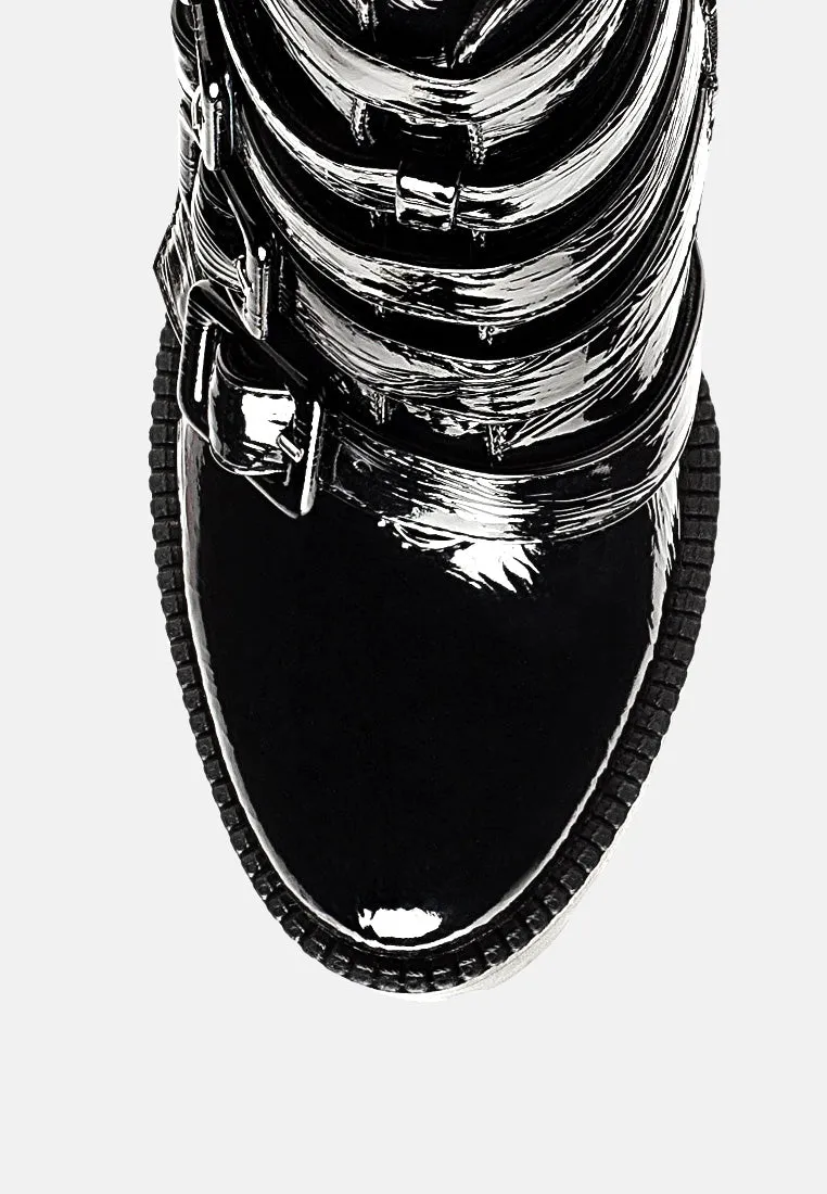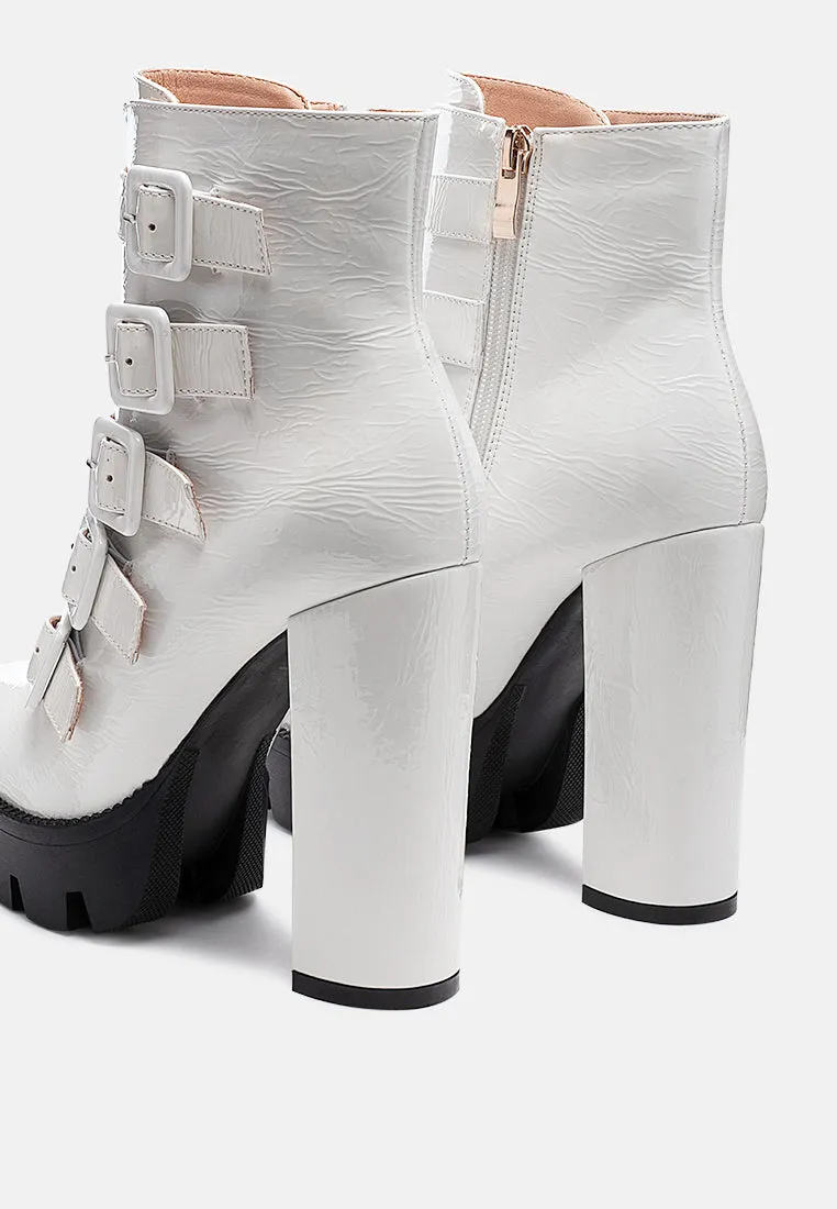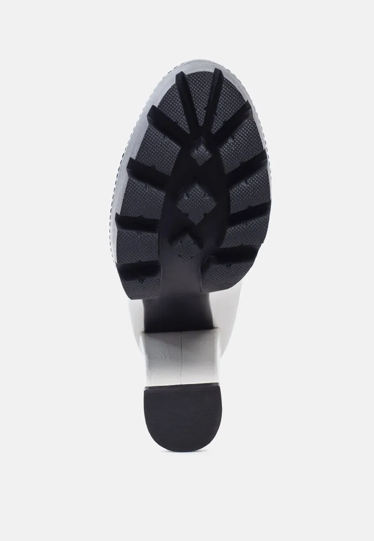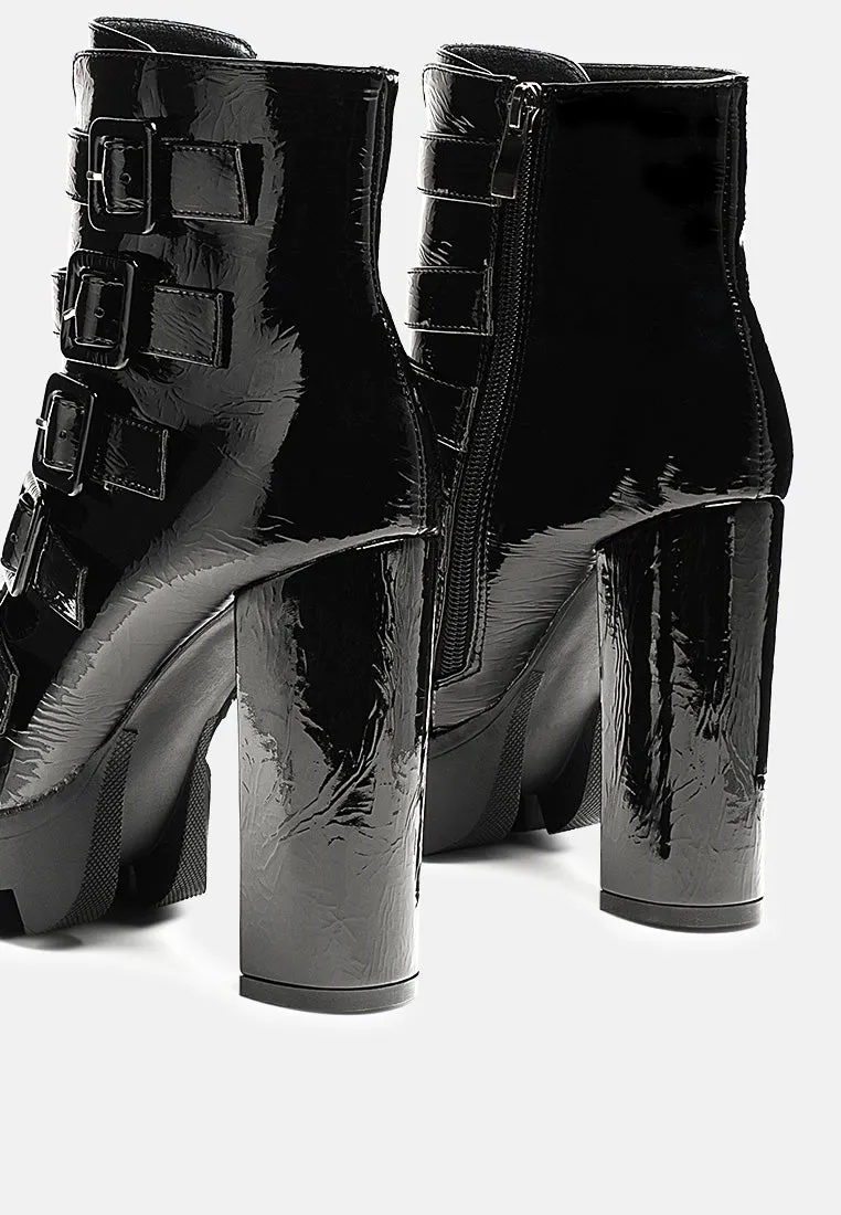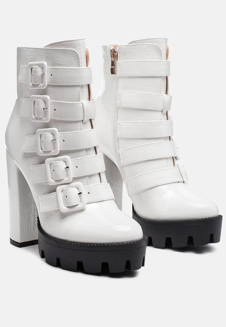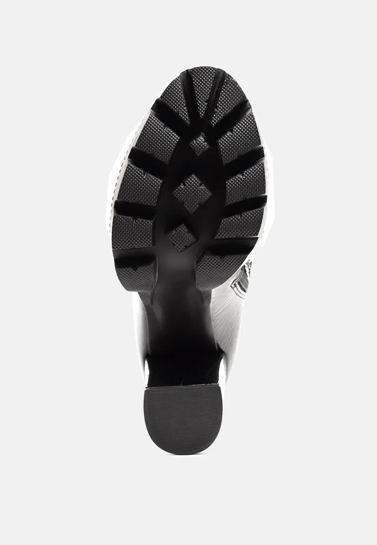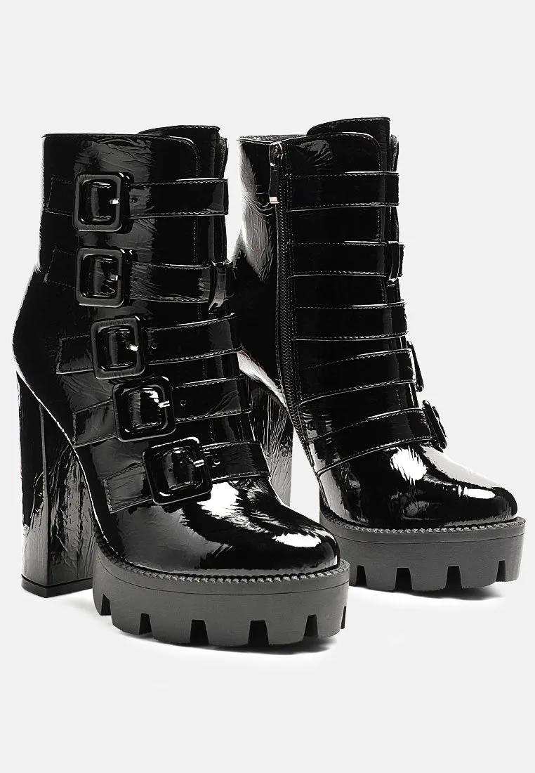 In the mood to look spunky? Our Ouzaki High Block Heeled Boots are just the answer to your question. With Buckle embellishments on the side and a sturdy lug sole, these women boots are the epitome of style. These block heeled boots come with a side zipper and a lightly padded insole for optimum comfort. Pair with skinny jeans or track pants, and you are bound to make heads turn.