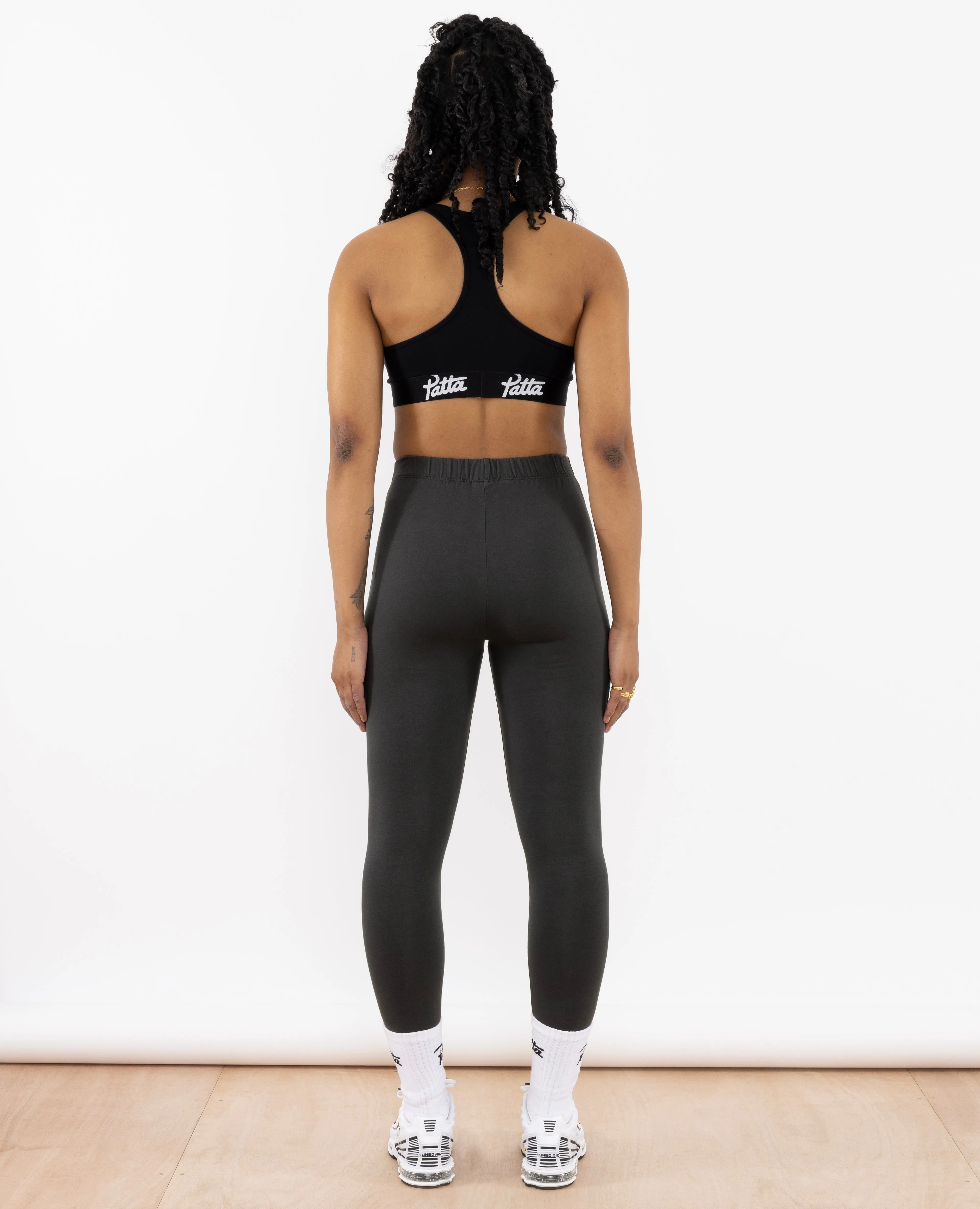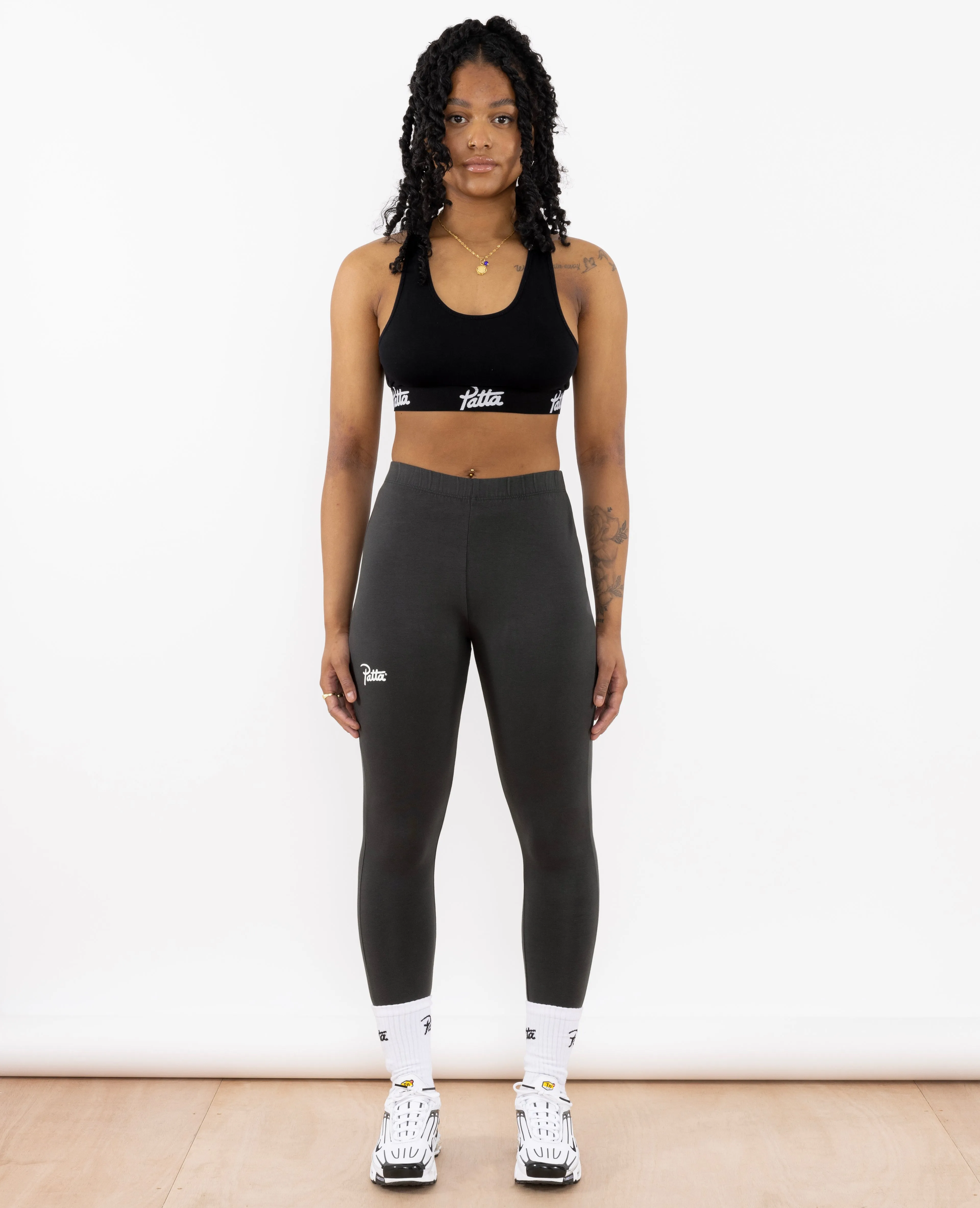 The Patta Femme basic legging comes in firm cotton elastane blend jersey and is treated with an enzyme finish. The leggings have a medium rise and the length is on the ankle. Patta screen script logo on the right leg.