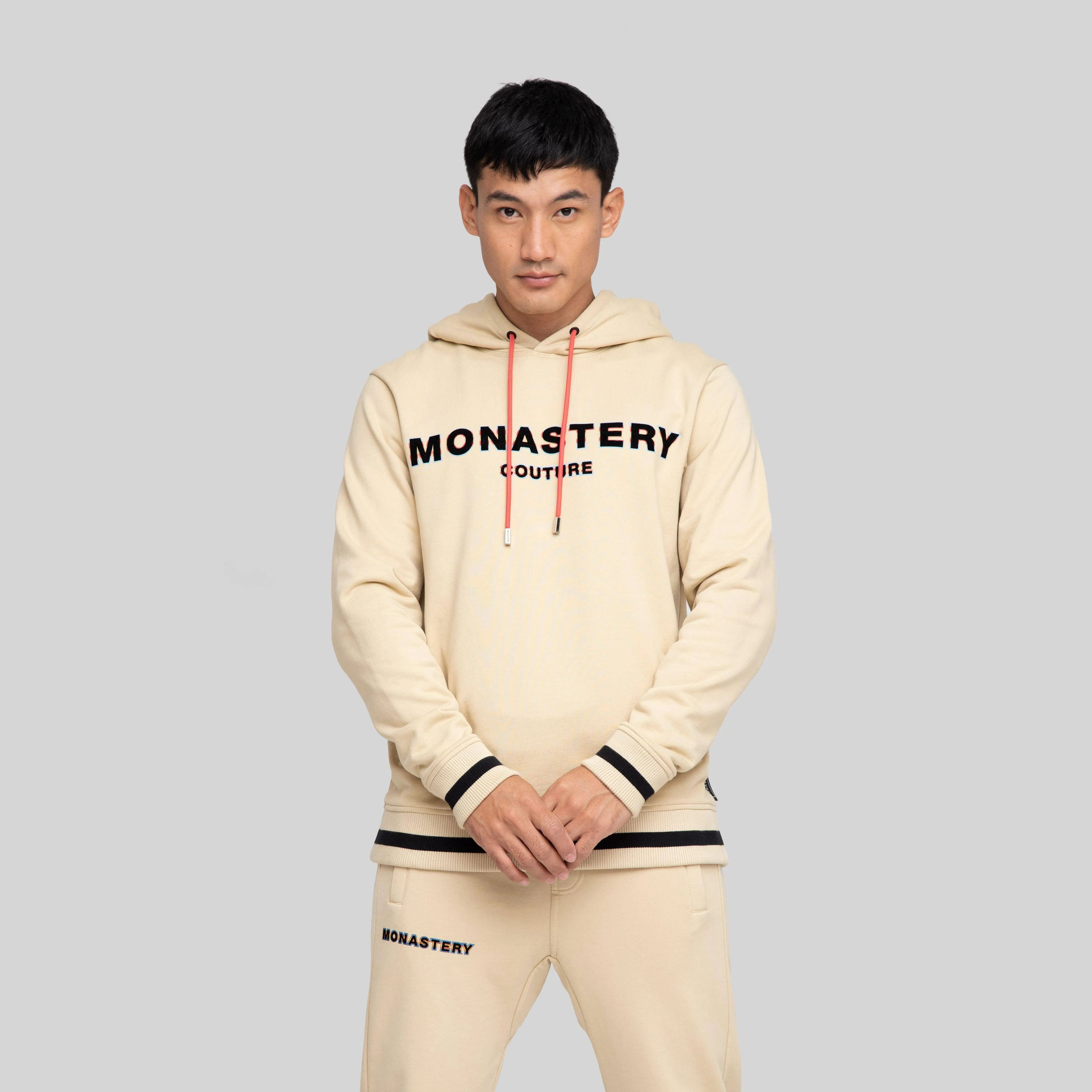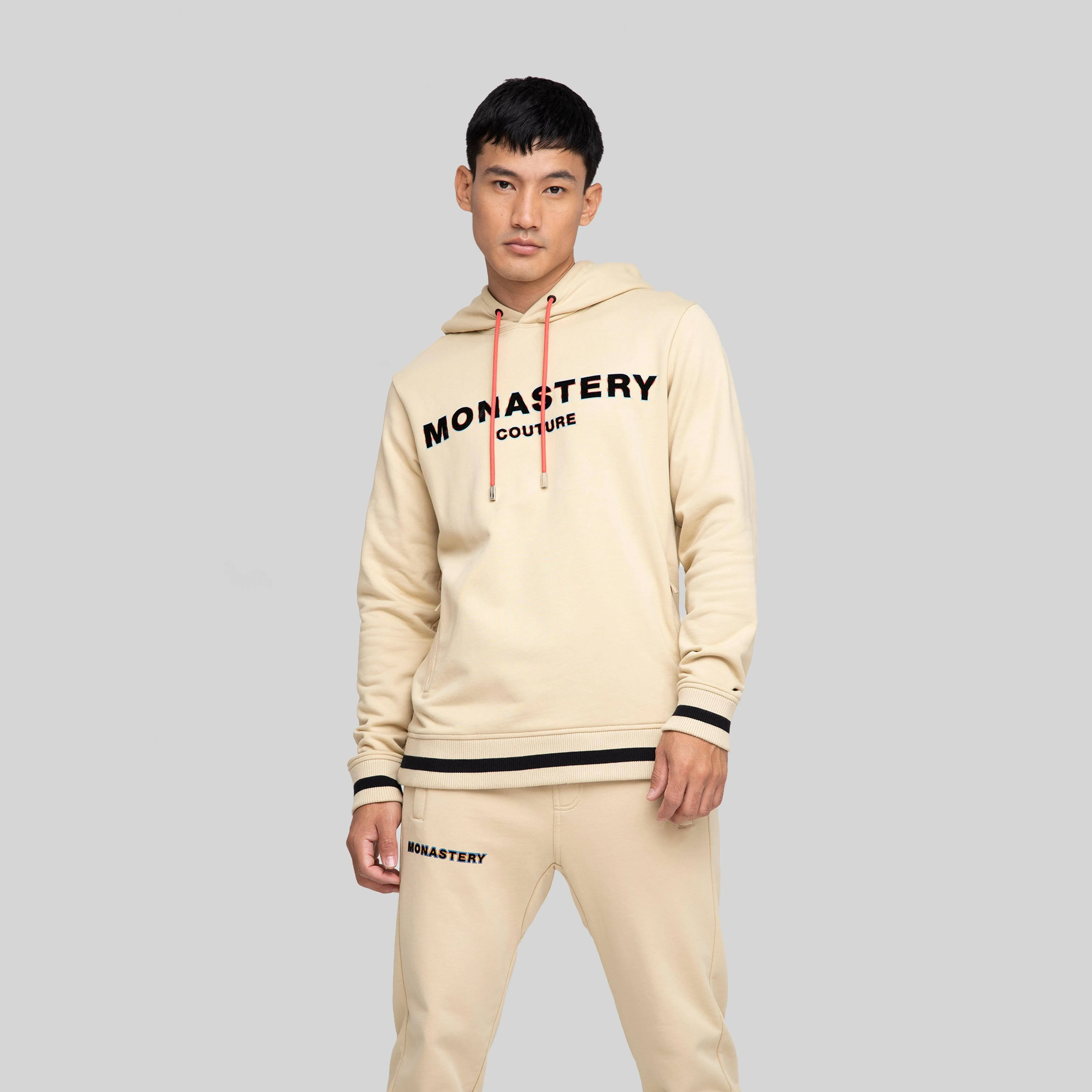 Our Jogger Phoenix, presents the text "Monastery Couture" stamped on flock. In addition, it features cord with counterbitter metal struts, and a straight boot with tobilera in rib for a distinctive touch. The textile base is 100% composed of Peruvian cotton, ensuring an exceptional quality and an unparalleled sense of comfort. This Jogger is made up into a regular silhouette, designed to enhance the male figure