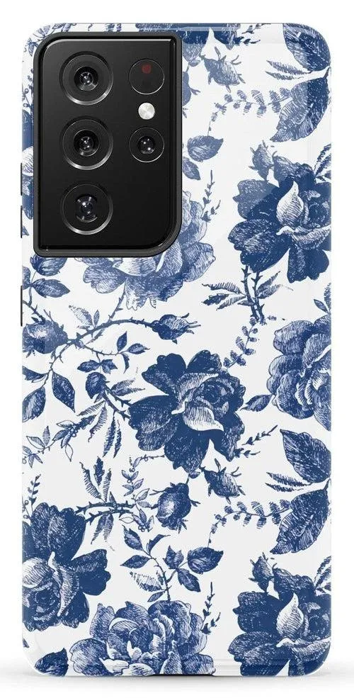 Rose to Fame | Blue & White Rose Floral Samsung Case