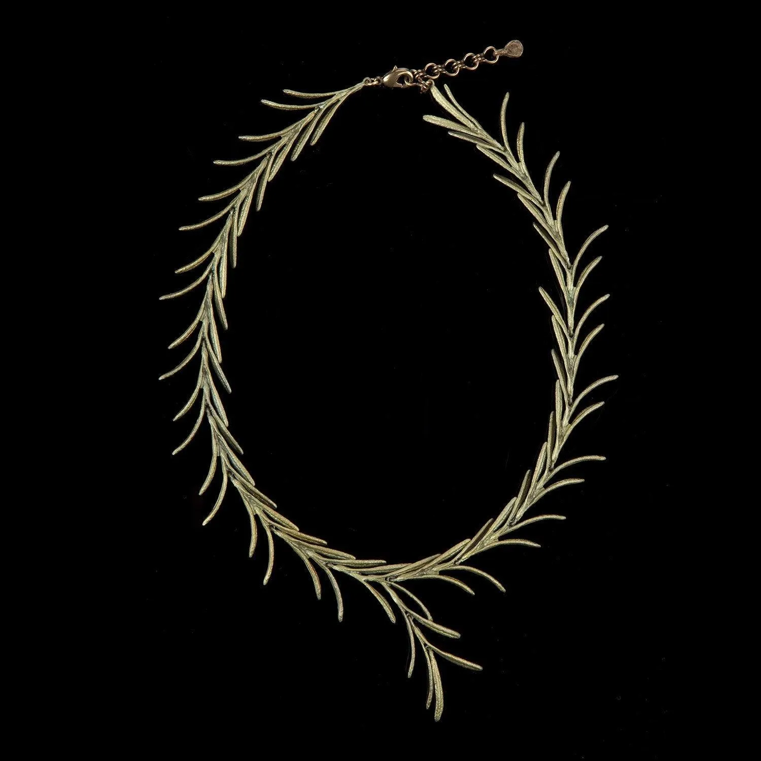 Our Rosemary necklace is a captivating masterpiece that combines the essence of nature with the elegance of jewellery. Crafted in bronze with our signature green hand patination, this exquisite piece is cast from actual rosemary leaves. Its intricate design gracefully articulates and moulds to the wearer, offering a unique and elegant connection to the beauty of nature.