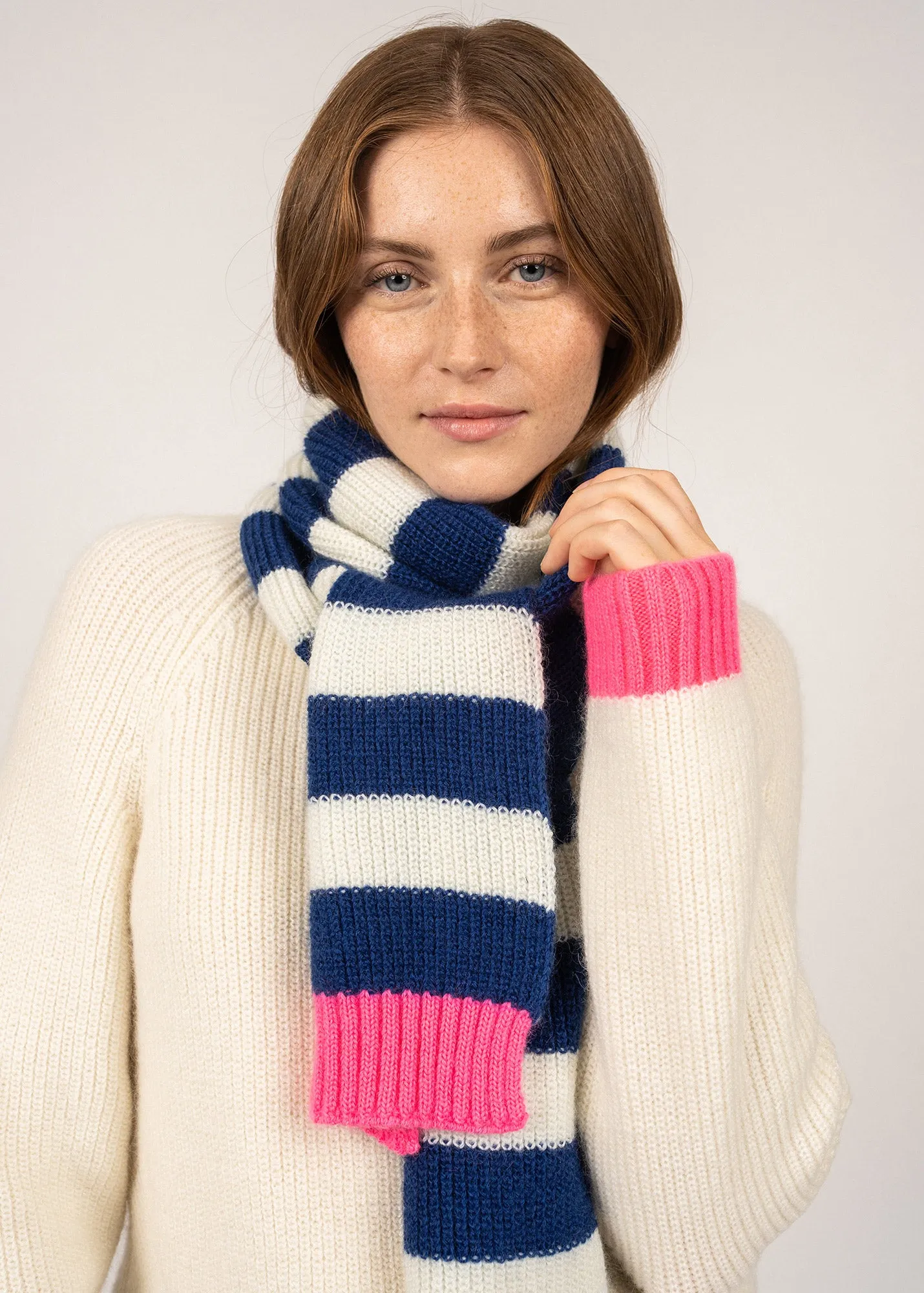 The SARRANS scarf perfectly complements the beanie and the sweater. Knitted in our ateliers in Saint James, Normandy, in a blend of soft mohair and synthetic materials, this striped scarf offers a soft, fluffy feel that will add a dash of elegance and warmth to your outfit.