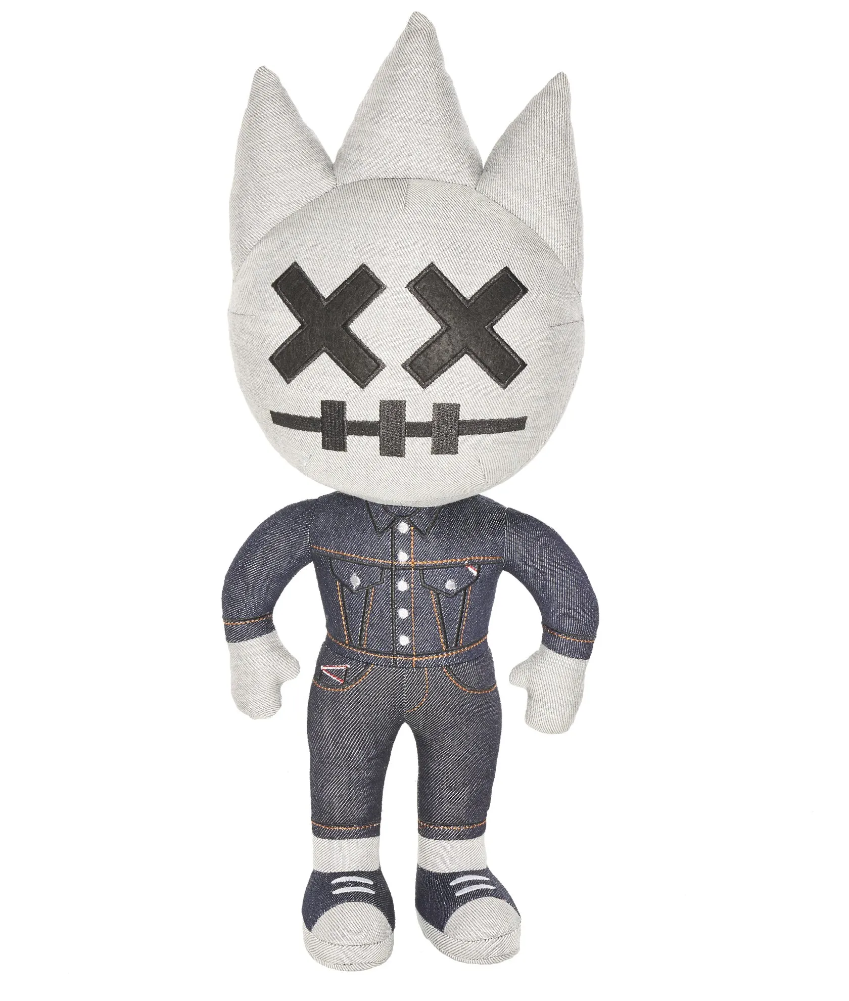 19” Handmade denim Shimuchan made from high quality environmental Cult denim fabric, with eco friendly PP cotton fill material. 100% Handcrafted,with our classic denim jacket and 5 pocket jean characteristics and selvedge details , durable, and unique.