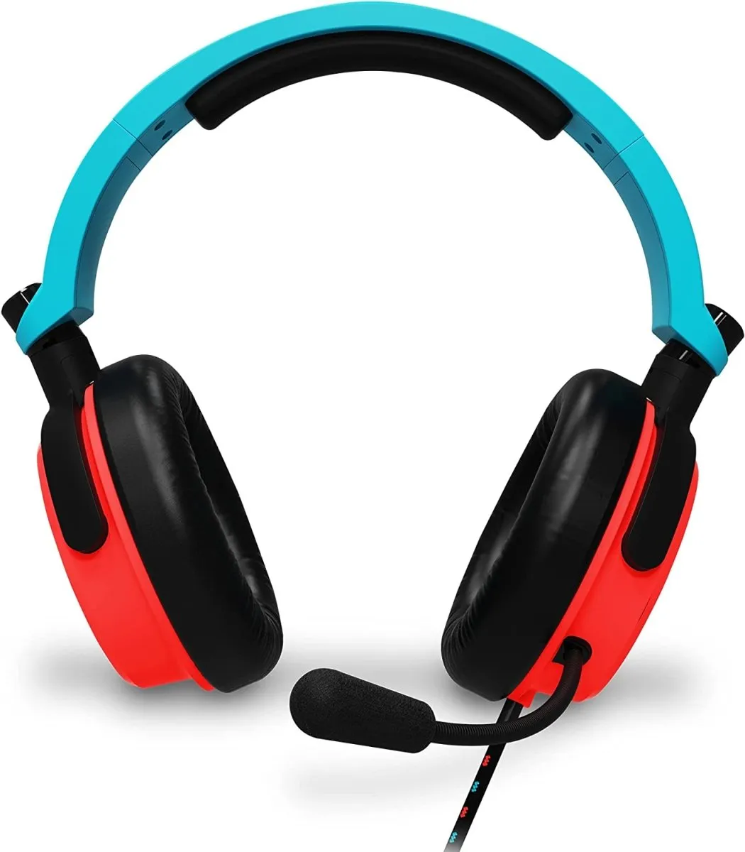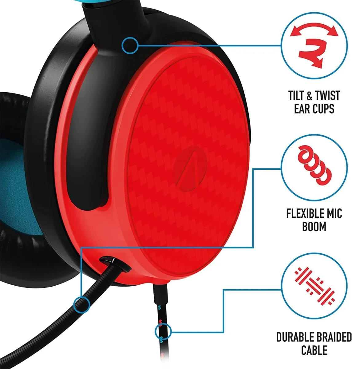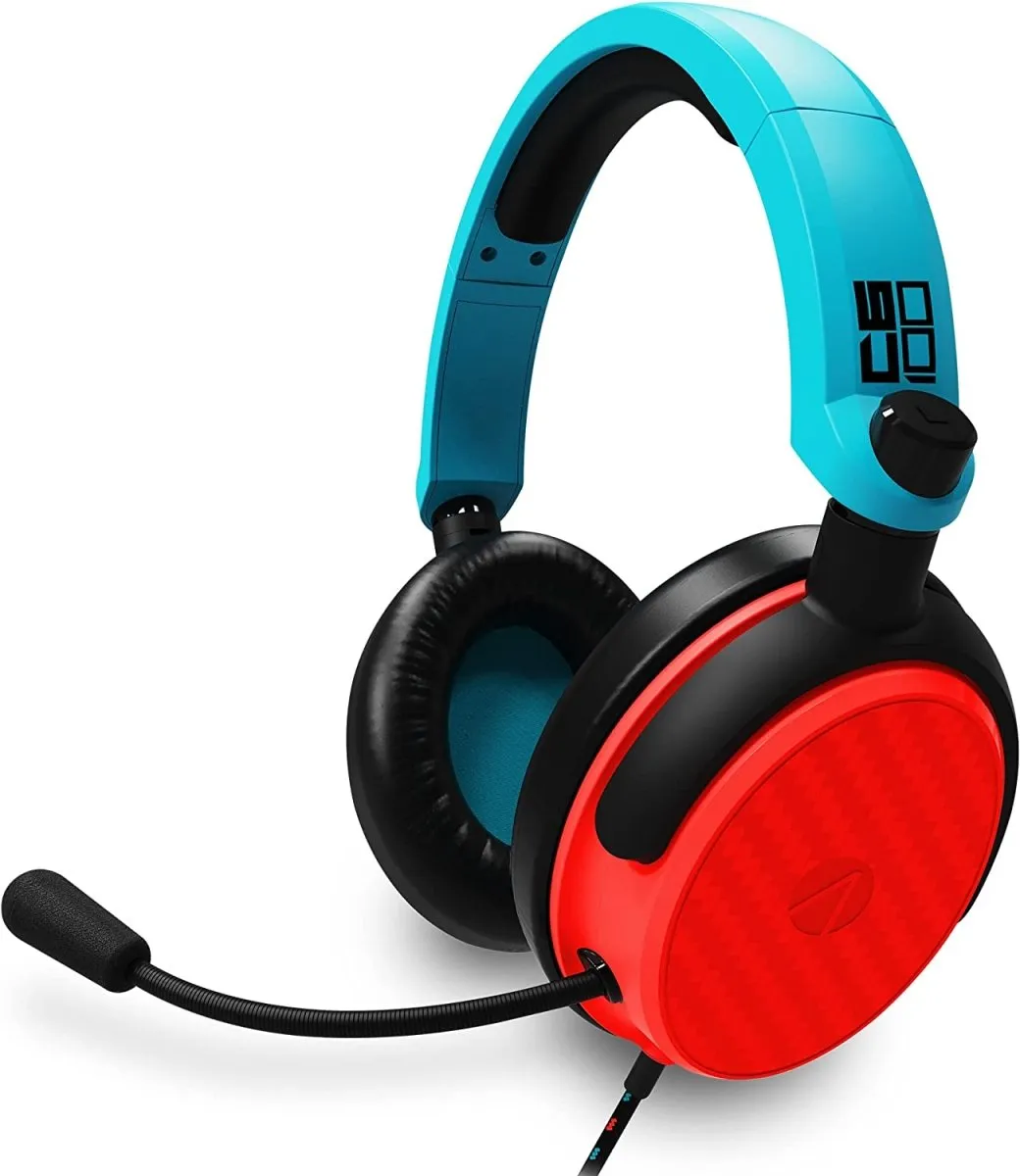 The C6-100 RED/BLUE for Nintendo Switch is designed to enhance your gaming experience regardless of your platform. With 40mm speaker drivers, flexible microphone with pop filter, soft foam damping, tilt and rotate ear cups, durable braided cable and game/chat volume control with mute. With matte and glossy accents with carbon fiber structure and faux leather ear pads and headbands.