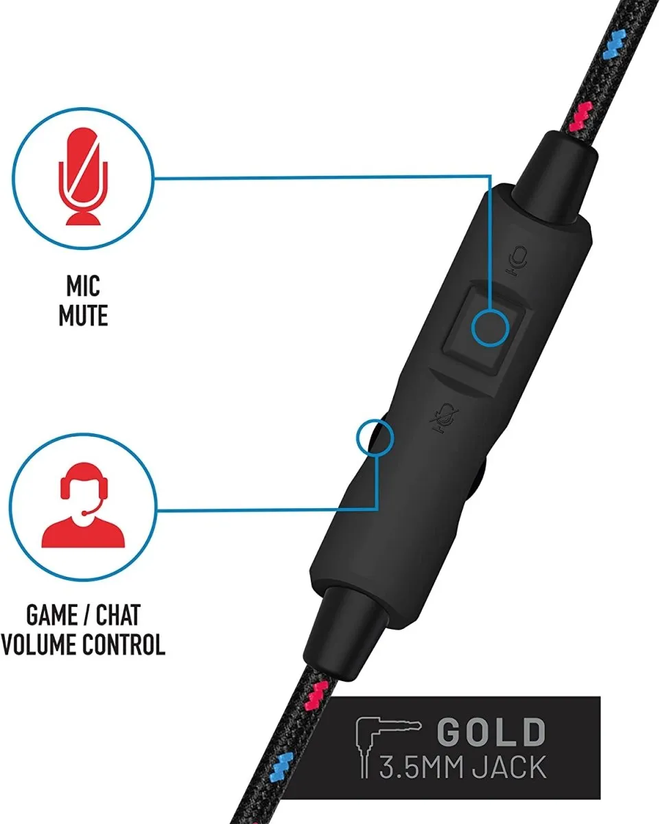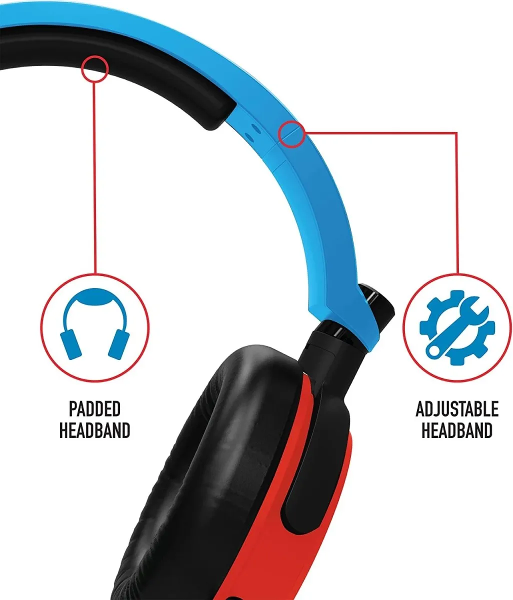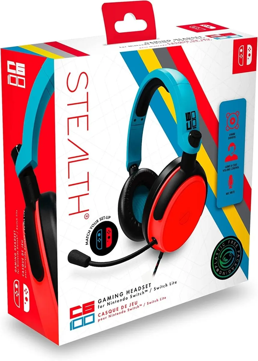 The C6-100 RED/BLUE for Nintendo Switch is designed to enhance your gaming experience regardless of your platform. With 40mm speaker drivers, flexible microphone with pop filter, soft foam damping, tilt and rotate ear cups, durable braided cable and game/chat volume control with mute. With matte and glossy accents with carbon fiber structure and faux leather ear pads and headbands.