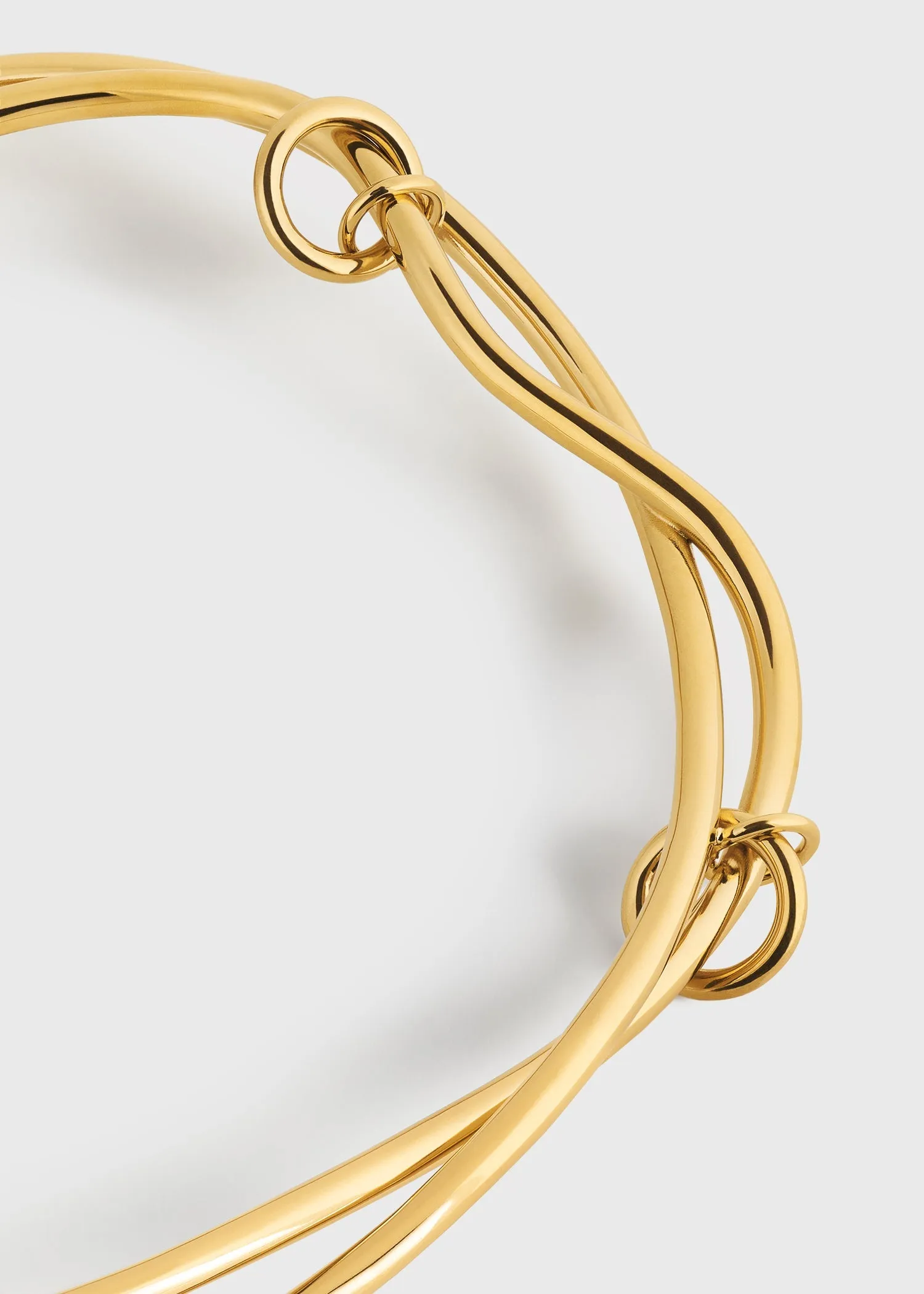TOTEME collar crafted in Italy with a sculptural swirling pattern that brings to mind intertwining vines. Made from polished gold-plated brass, it has multiple rings that create a charming clinking sound as you move.