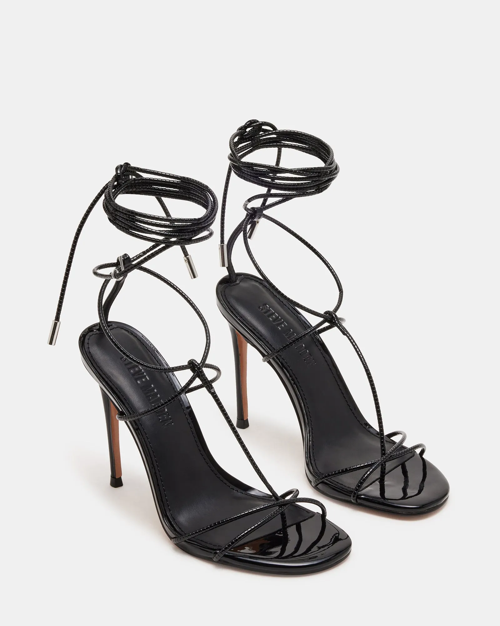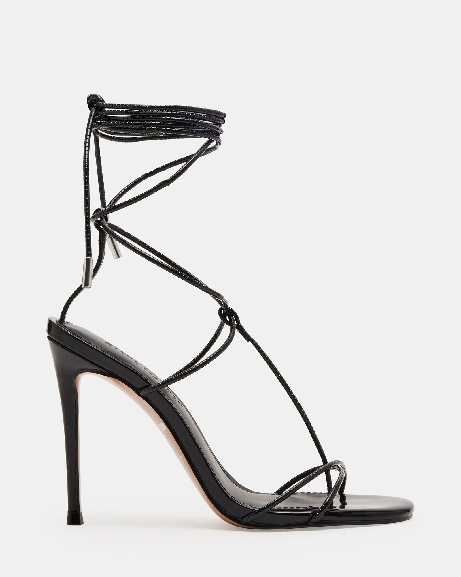 Indulge in pure sophistication with TEMPTATION. The sleek and sultry stiletto paired with strappy leg ties exudes confidence and elegance. With these features, you'll be sure to turn heads and elevate any outfit.