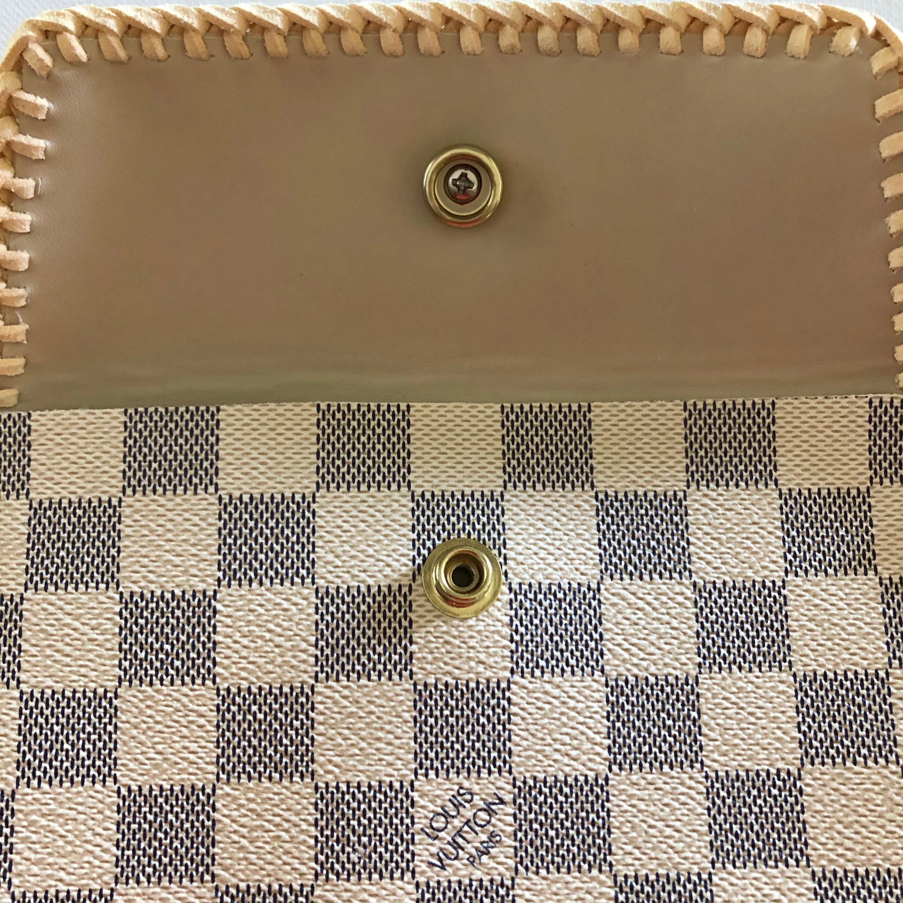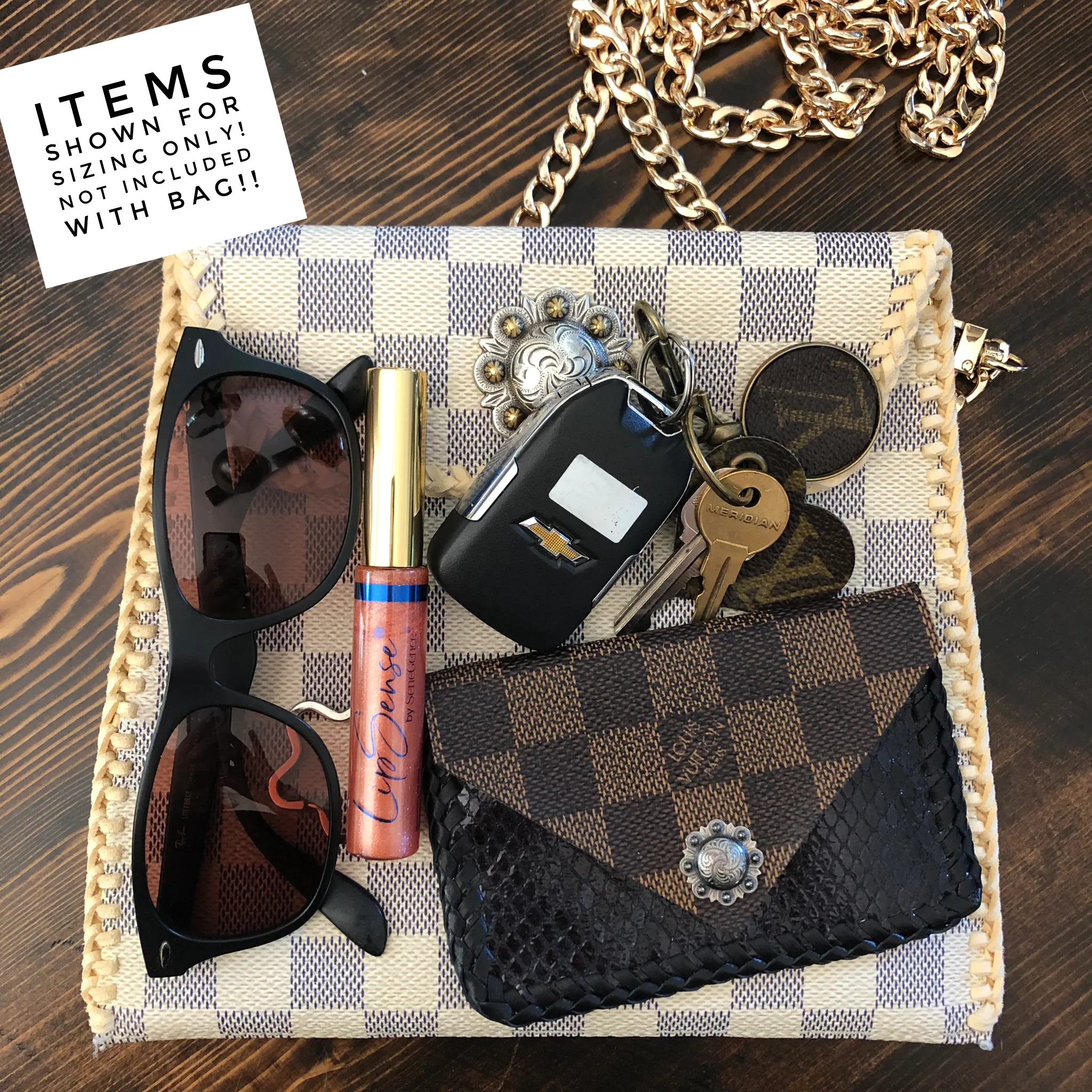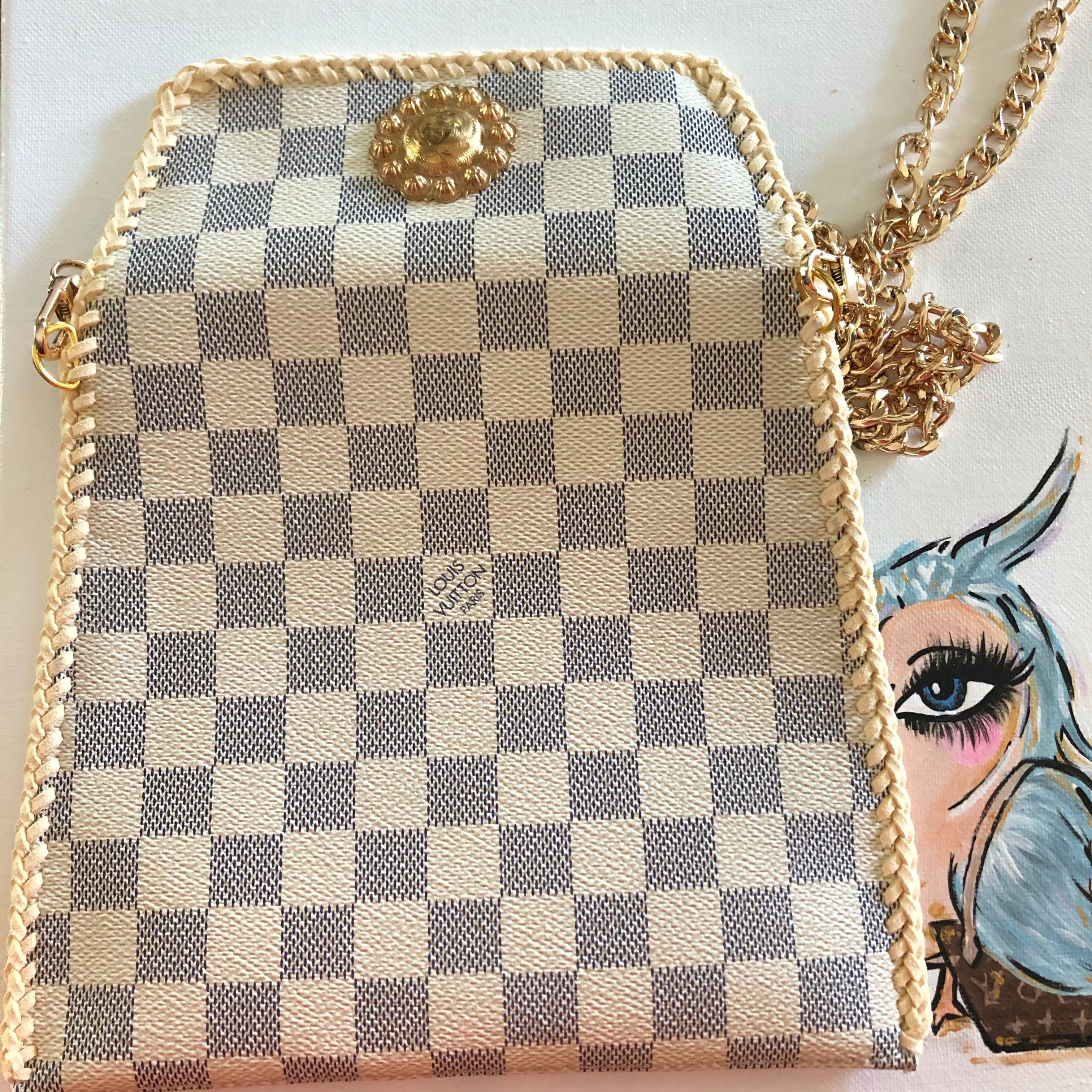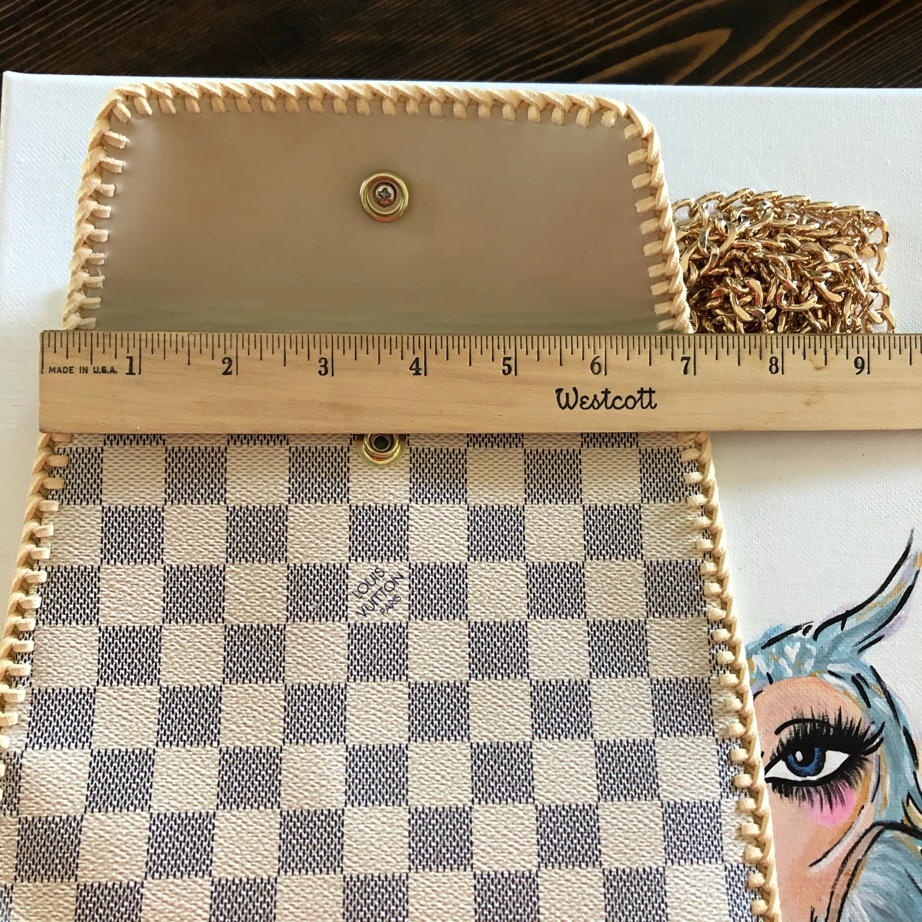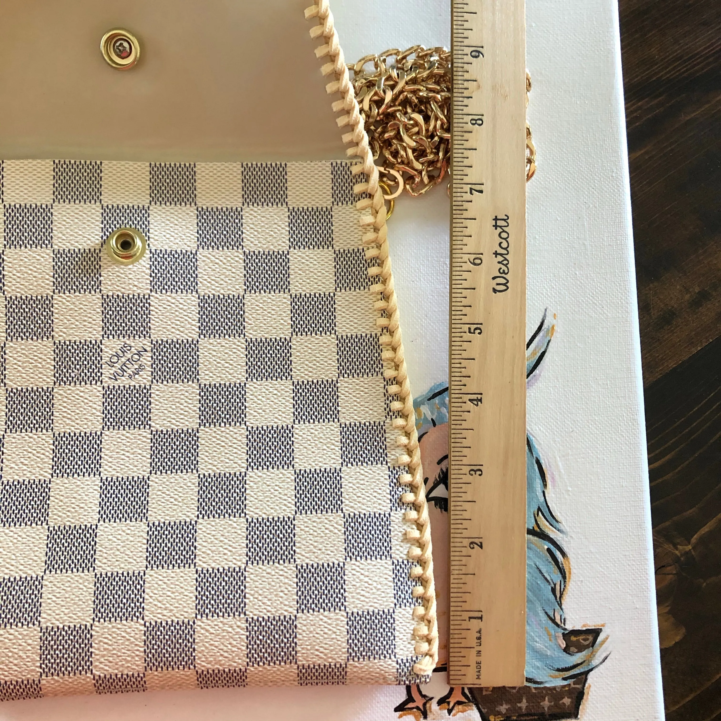 Here's a slightly taller Falcon, in the coveted Damier Azur print. This gorgeous crossbody bag will quickly become your favorite! It’ll fit your cell phone, keys, a small wallet, glasses and a lipstick!