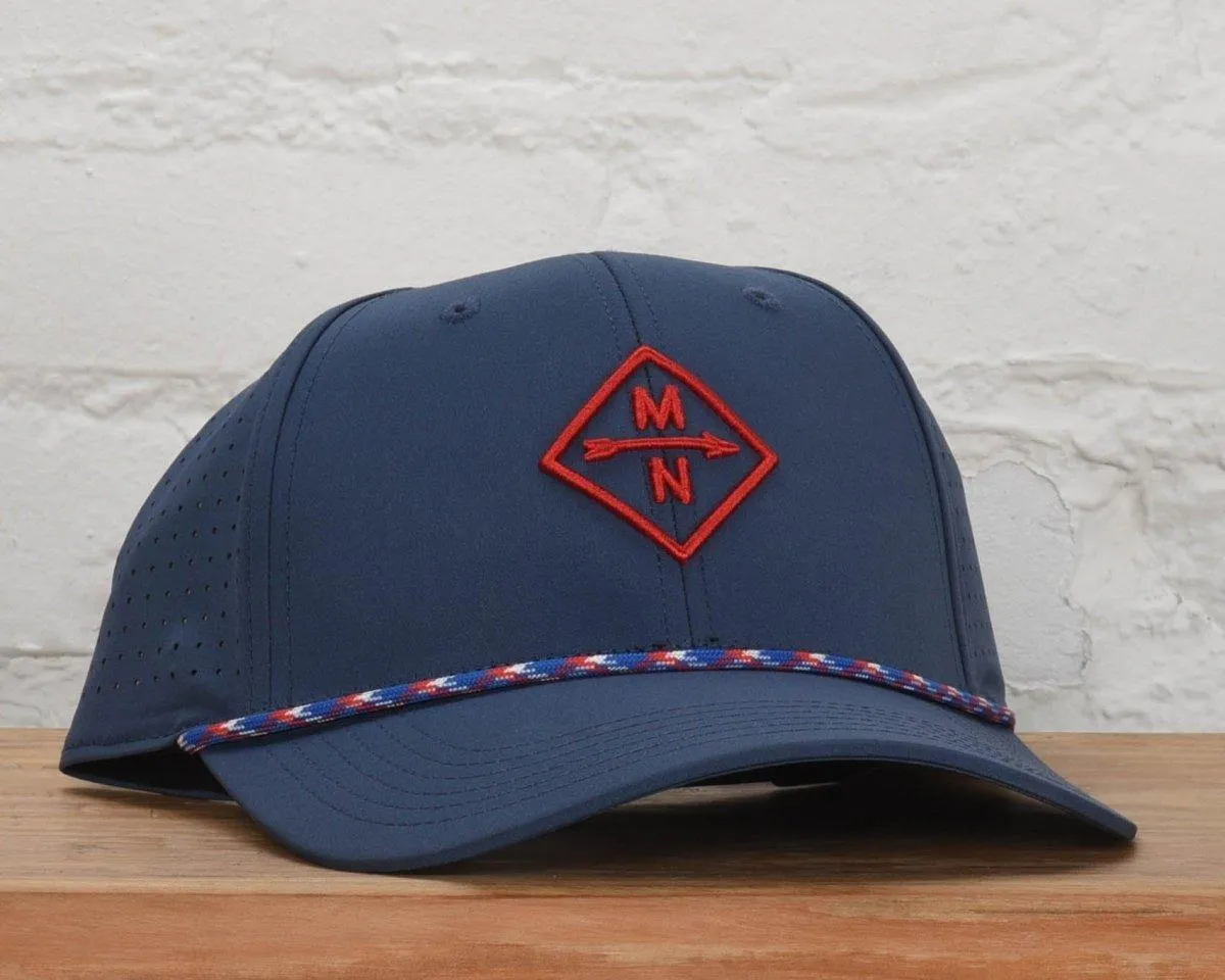 Get ready to make a statement with our Tidal Wave Dri-fit hat. It's blue and has a perforated fabric back, this hat is perfect for any occasion. But what really sets it apart is the red MN embroidered patch and funky rope accessory. So go ahead, stand out from the crowd and add a little fun to your wardrobe.