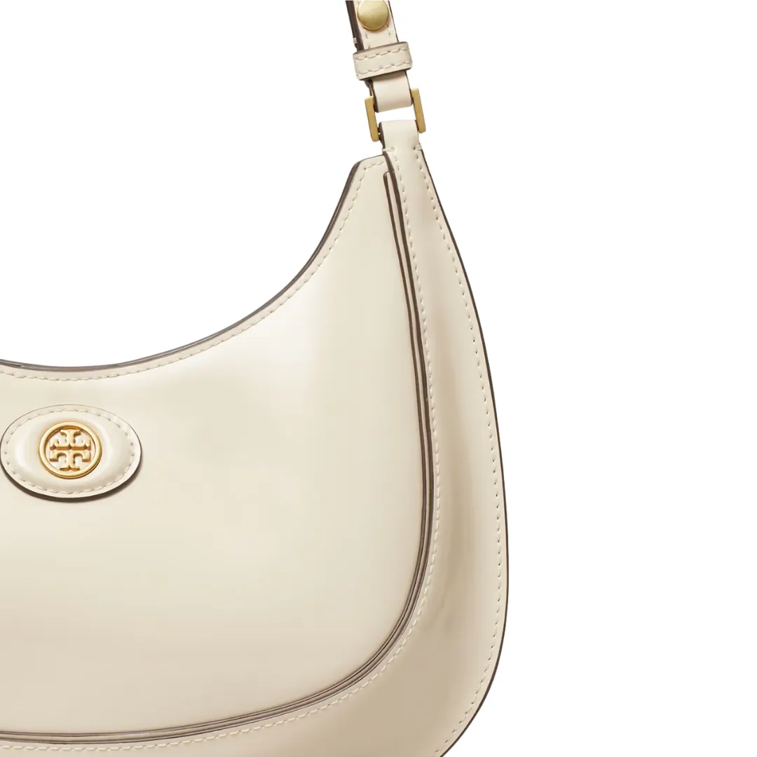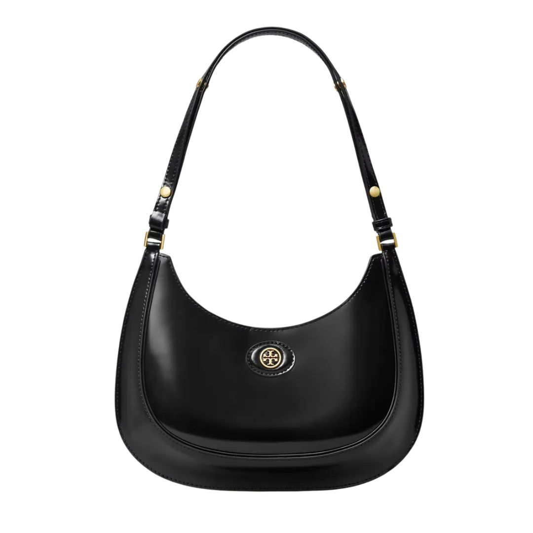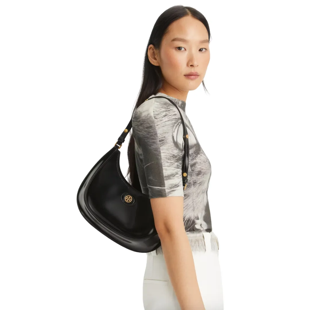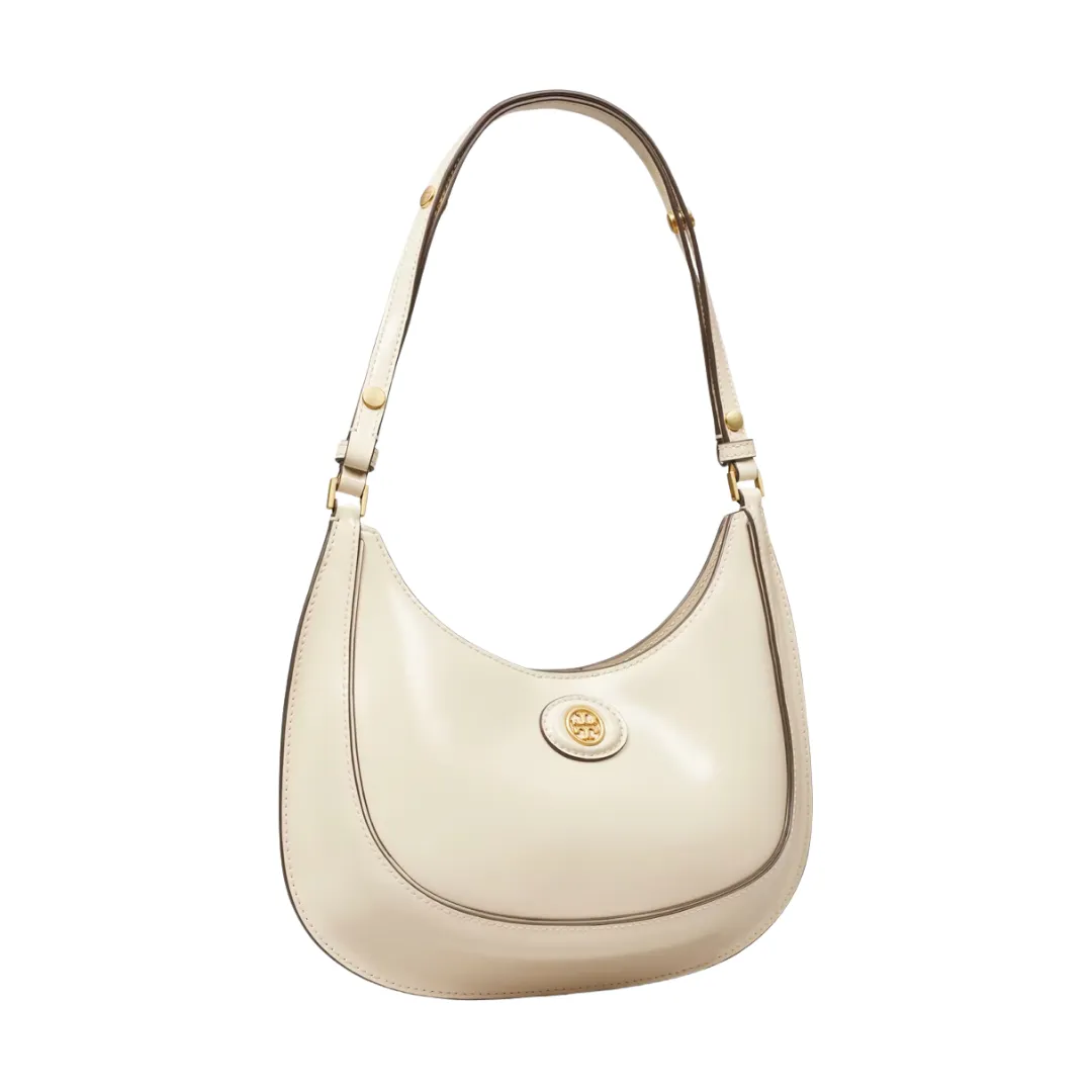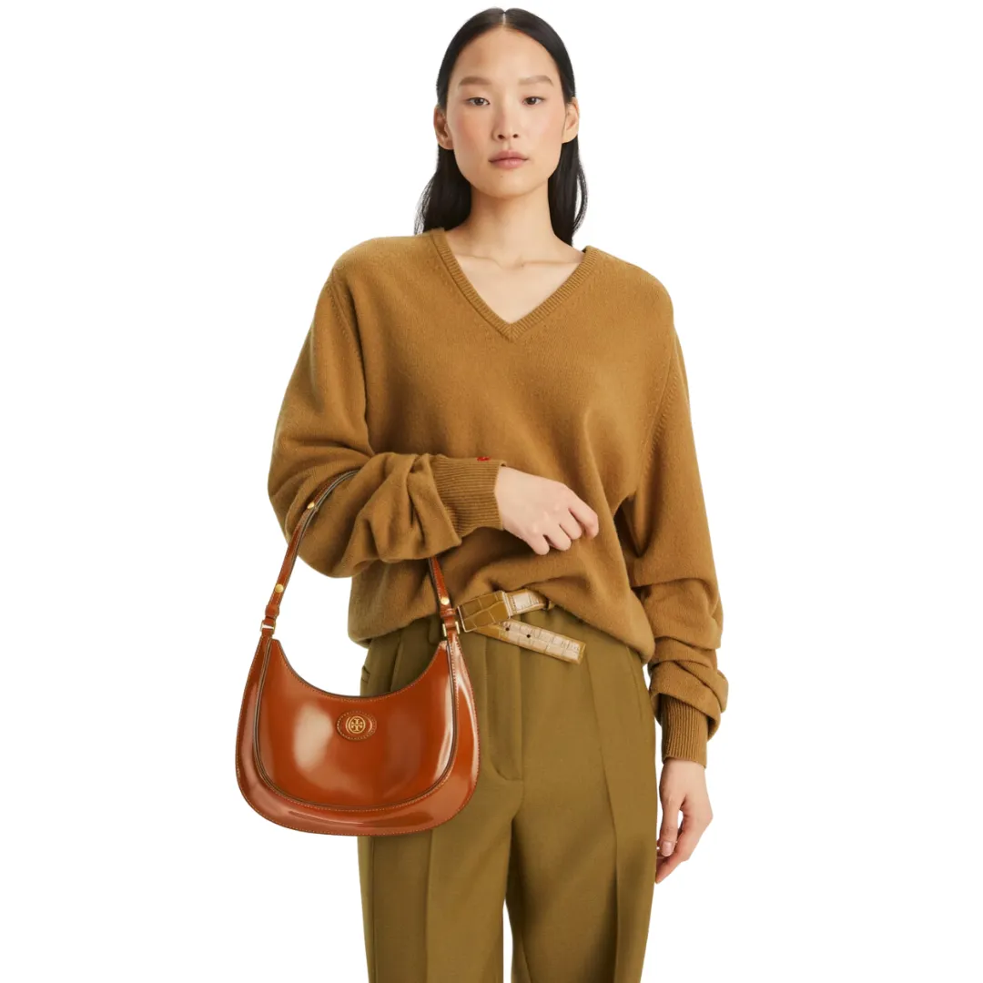 A collection named for Tory's parents, Buddy and Reva Robinson. Inspired by their love of travel, the timeless and versatile silhouettes are designed for everyday use. The Robinson Convertible Shoulder Bag is made of beautiful polished leather with smooth rounded edges.