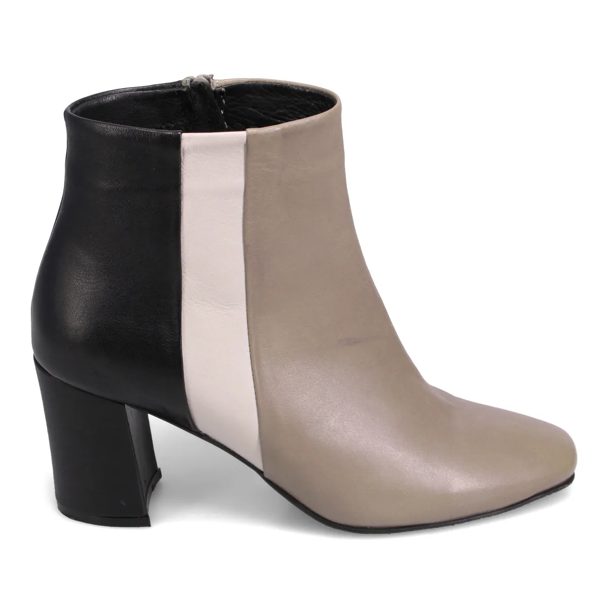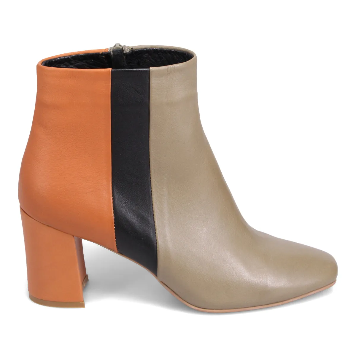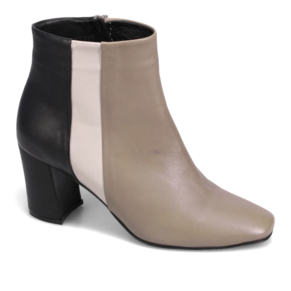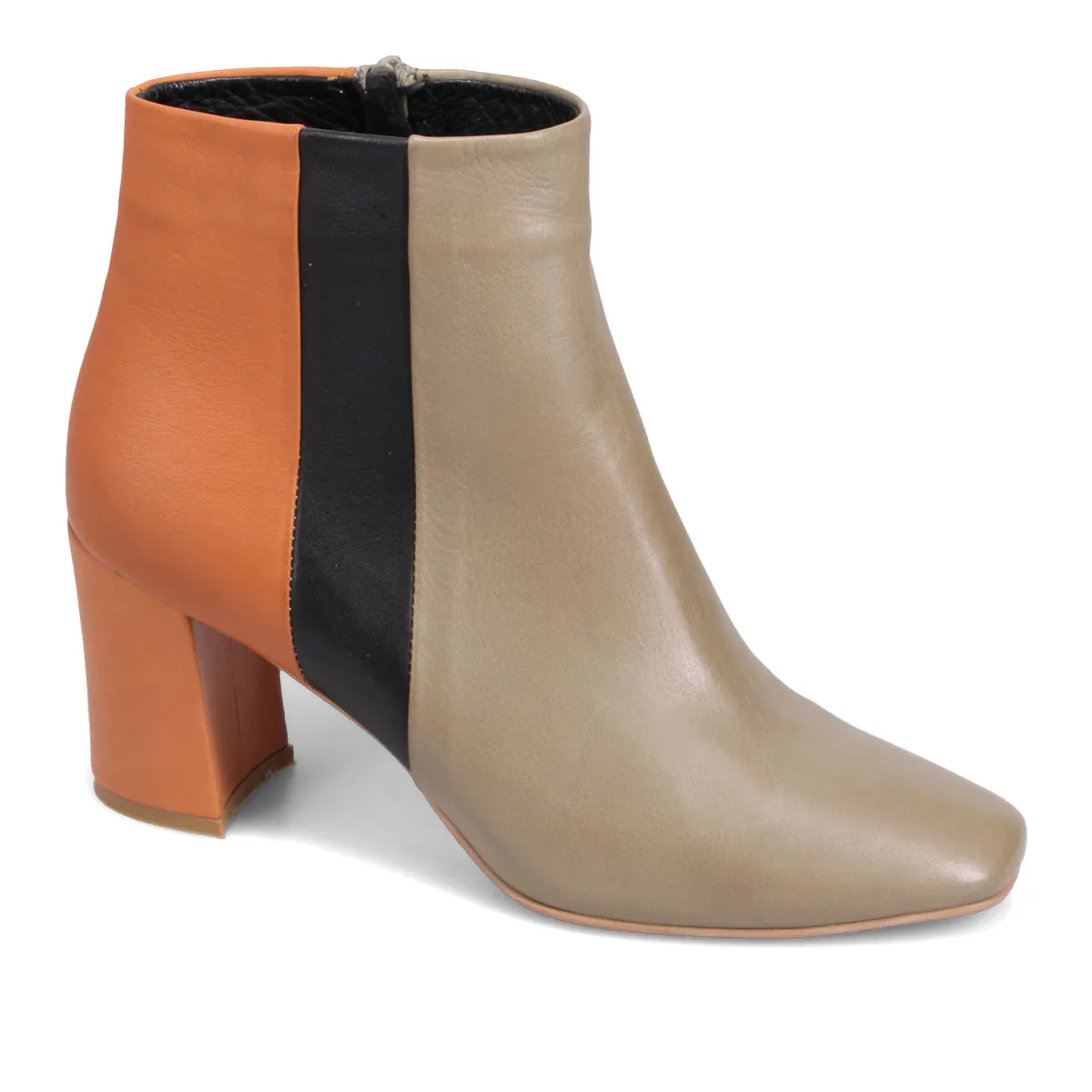 Elevate your style with Valeria. A striking color-blocked ankle boot that is perfect for making a bold fashion statement. Featuring a harmonious blend of colours, these boots bring a contemporary twist to a classic silhouette. The high-quality leather construction ensures durability and a sleek finish, while the sturdy block heel provides both height and stability