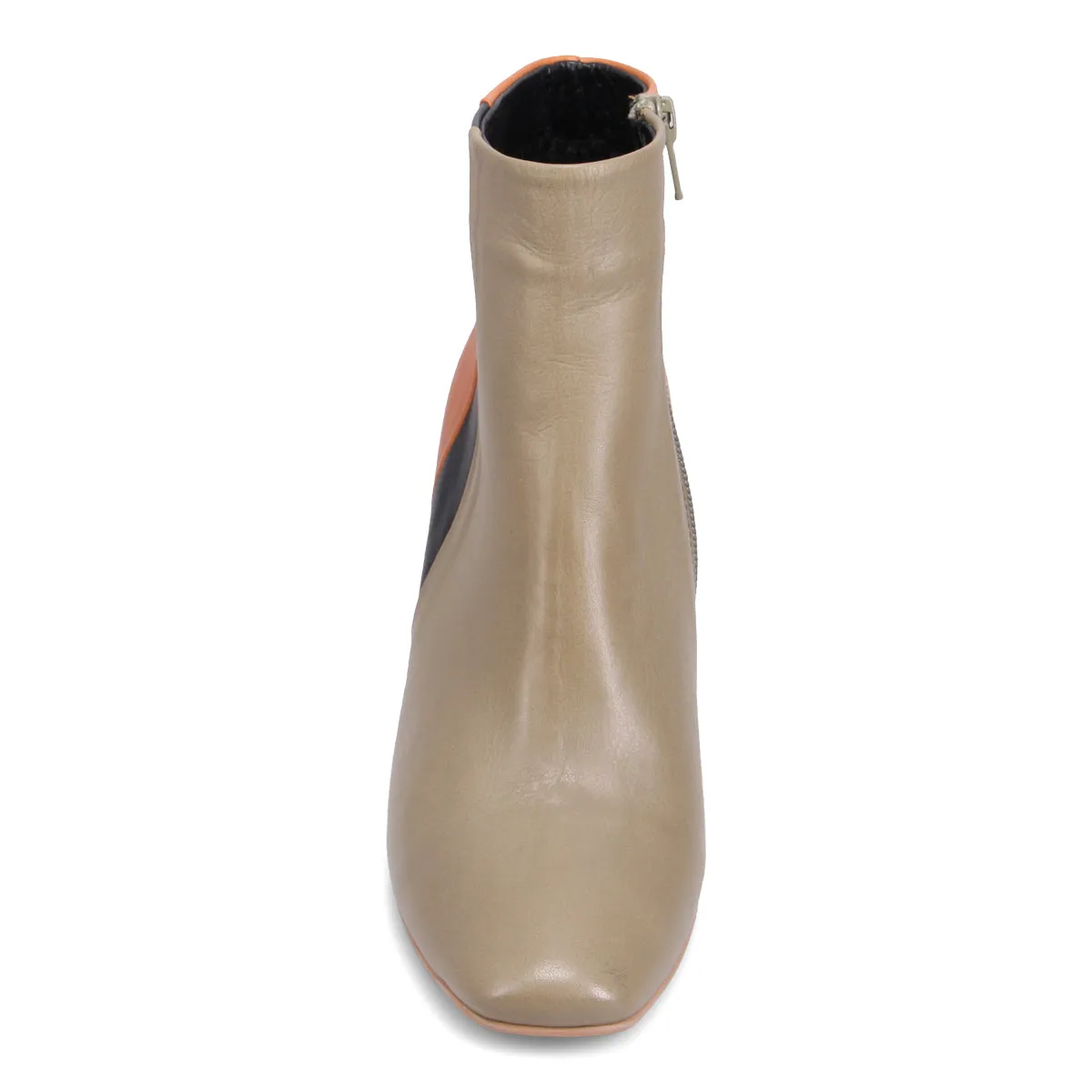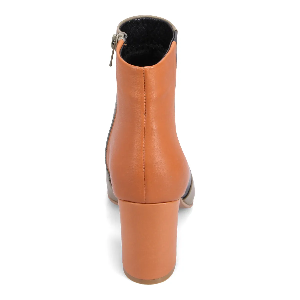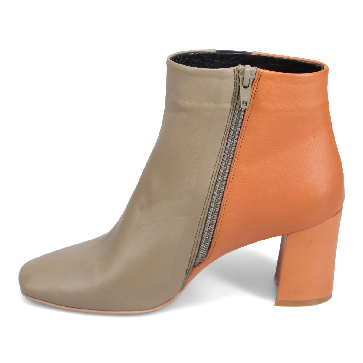 Elevate your style with Valeria. A striking color-blocked ankle boot that is perfect for making a bold fashion statement. Featuring a harmonious blend of colours, these boots bring a contemporary twist to a classic silhouette. The high-quality leather construction ensures durability and a sleek finish, while the sturdy block heel provides both height and stability