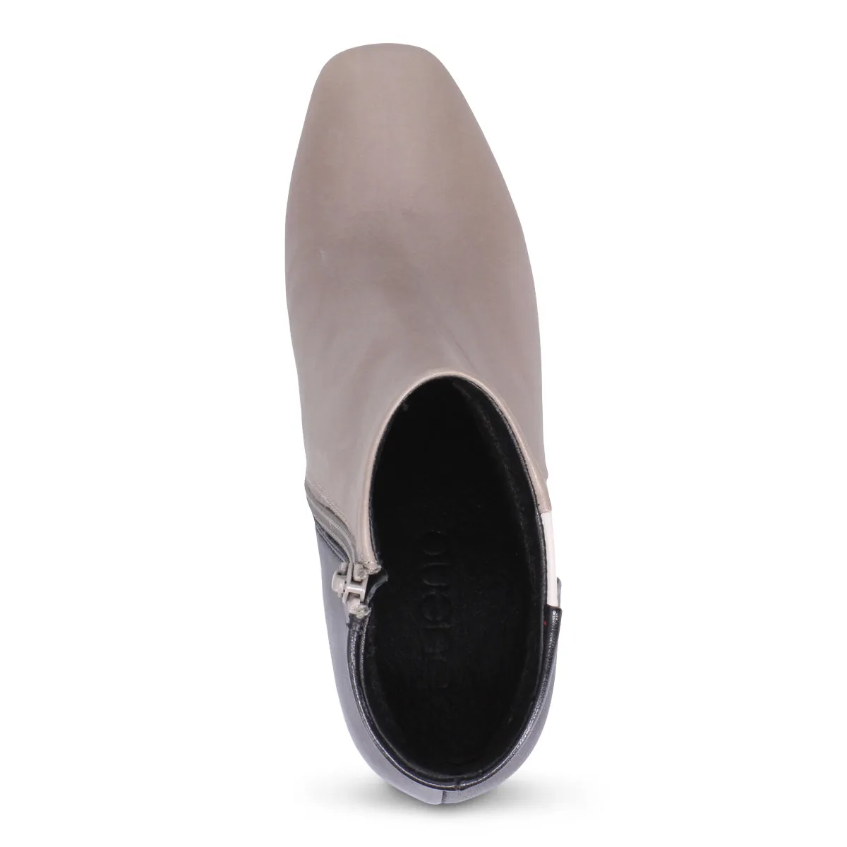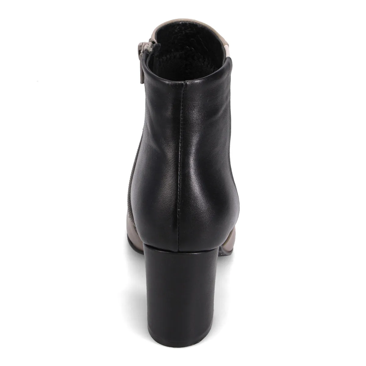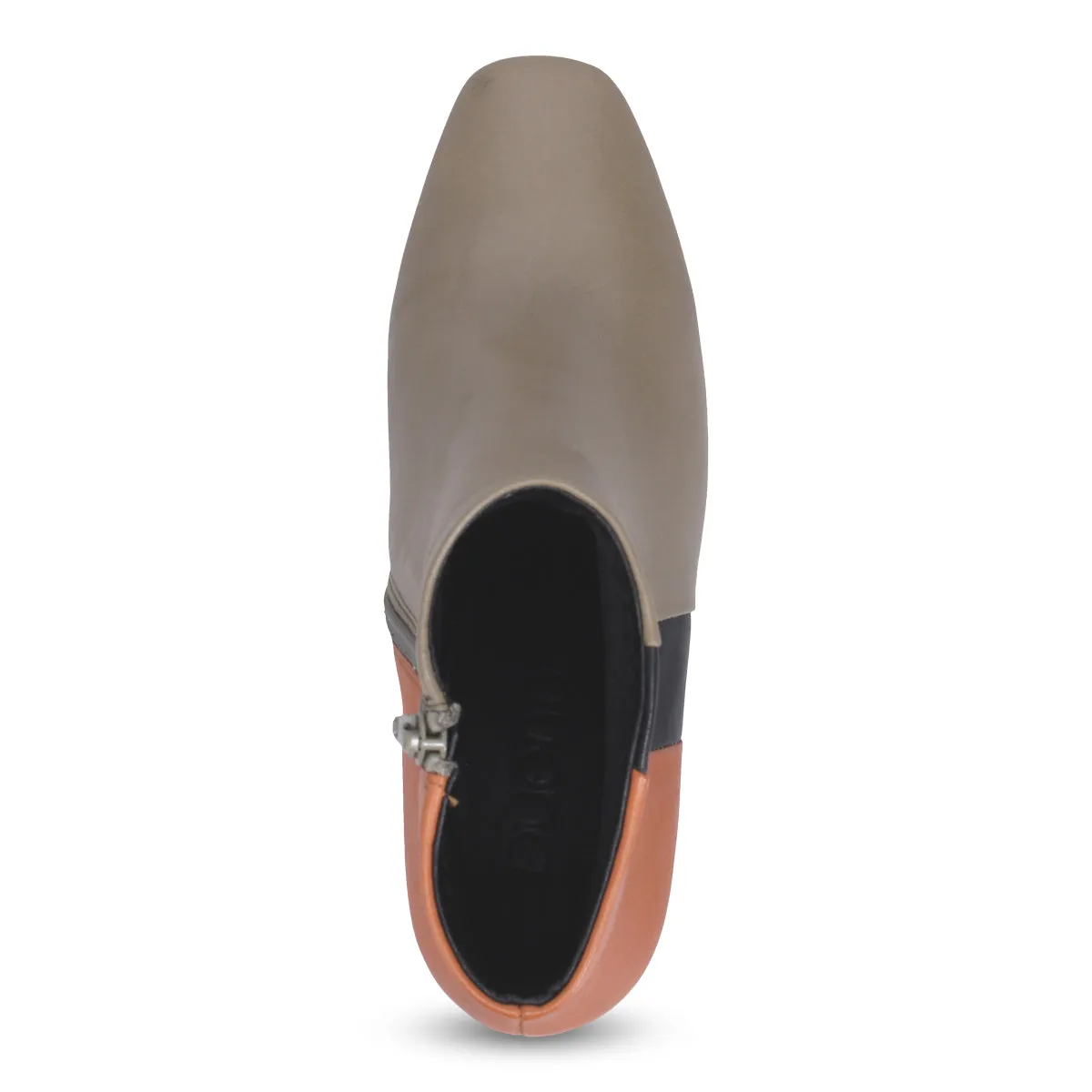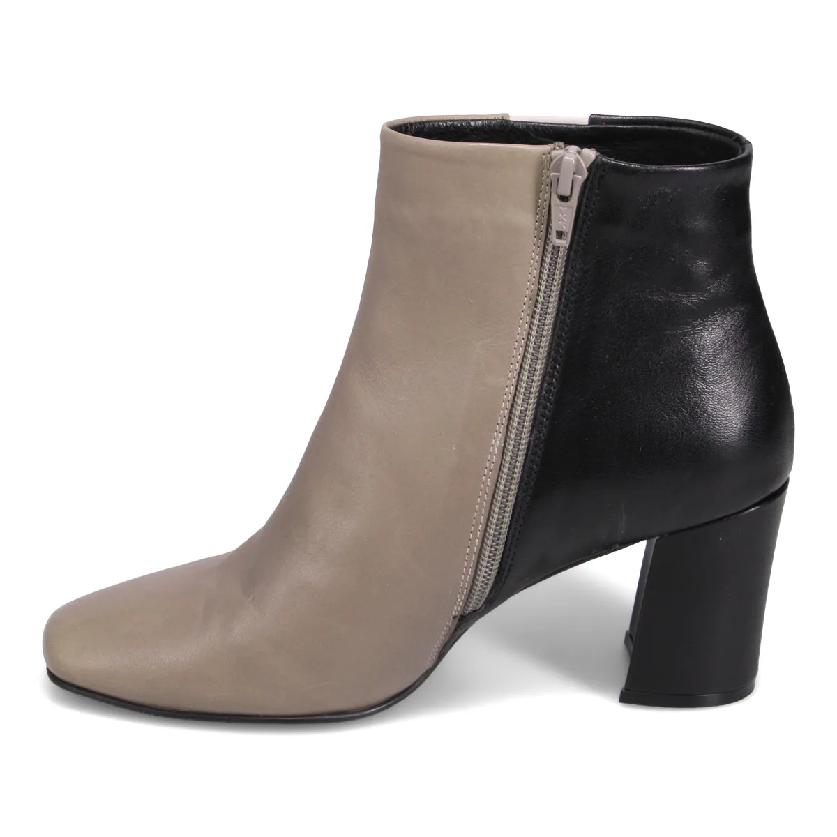 Elevate your style with Valeria. A striking color-blocked ankle boot that is perfect for making a bold fashion statement. Featuring a harmonious blend of colours, these boots bring a contemporary twist to a classic silhouette. The high-quality leather construction ensures durability and a sleek finish, while the sturdy block heel provides both height and stability